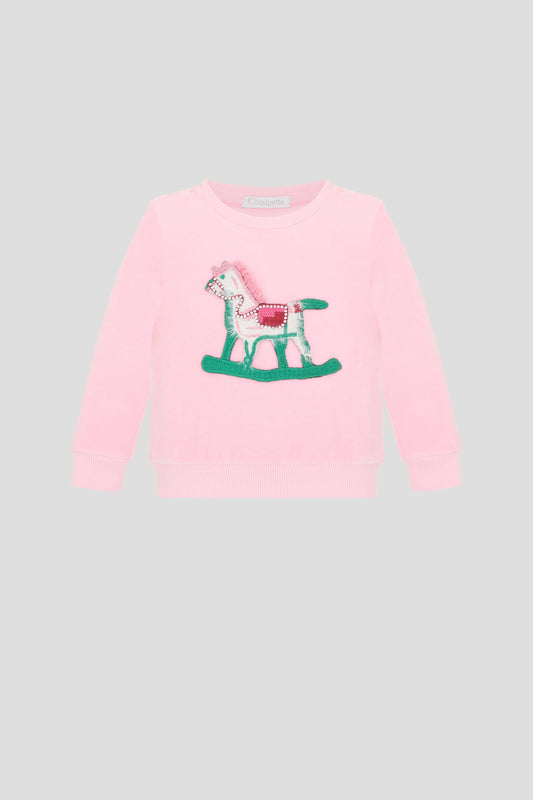 Applique Velour Sweatshirt, red and pink