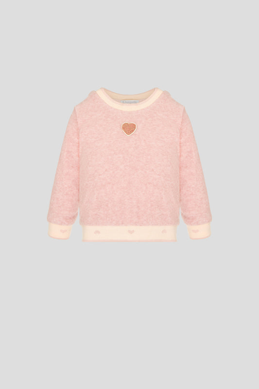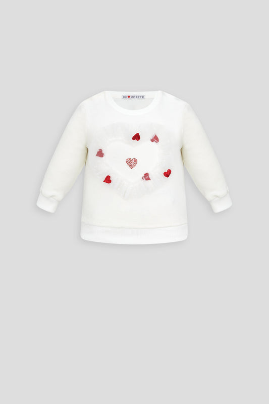 Velour Decorated Sweatshirt with Heart Applique