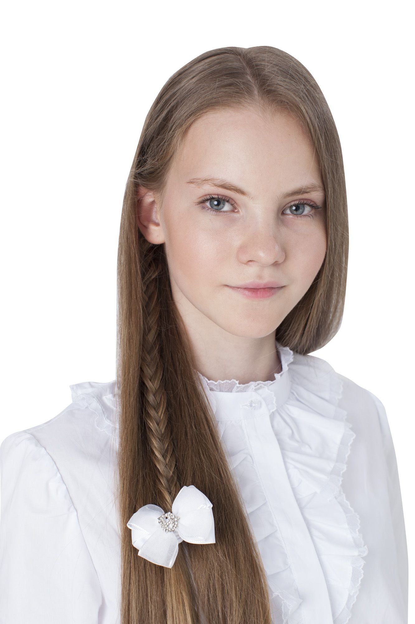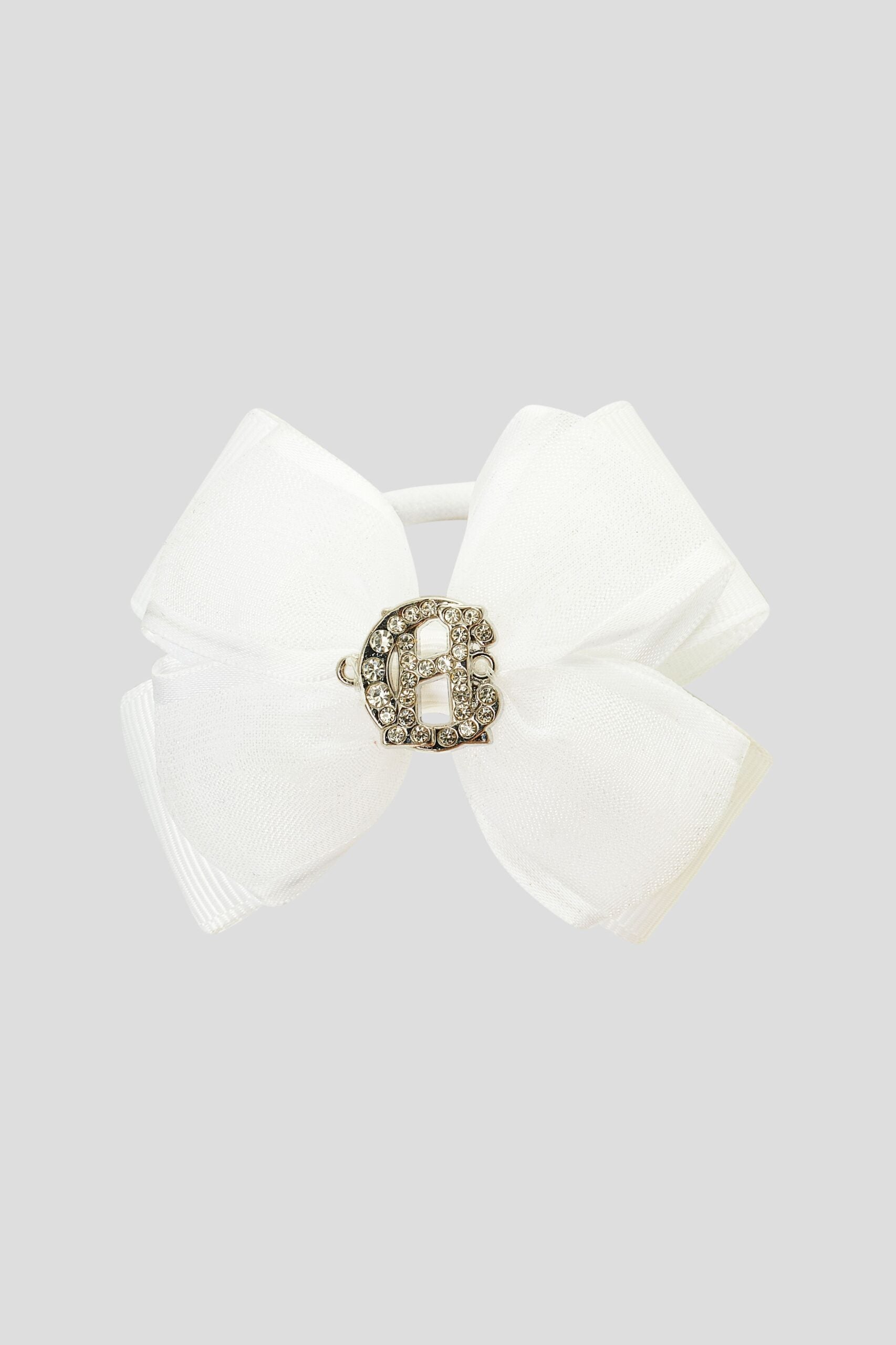 A bow on an elastic band with rhinestones will help complete any look. The small size of this model allows you not to draw unnecessary attention to your hair. But also to look well-groomed and stylish. The accessory is made of high-quality polyester and consists of several neat bows: a bow from a wide border and two organza bows on top of it. The central part of the model is the brand abbreviation, decorated with rhinestones. A white bow on an elastic band with rhinestones will easily decorate the hair of your young fashionista both on a holiday and on a weekday.