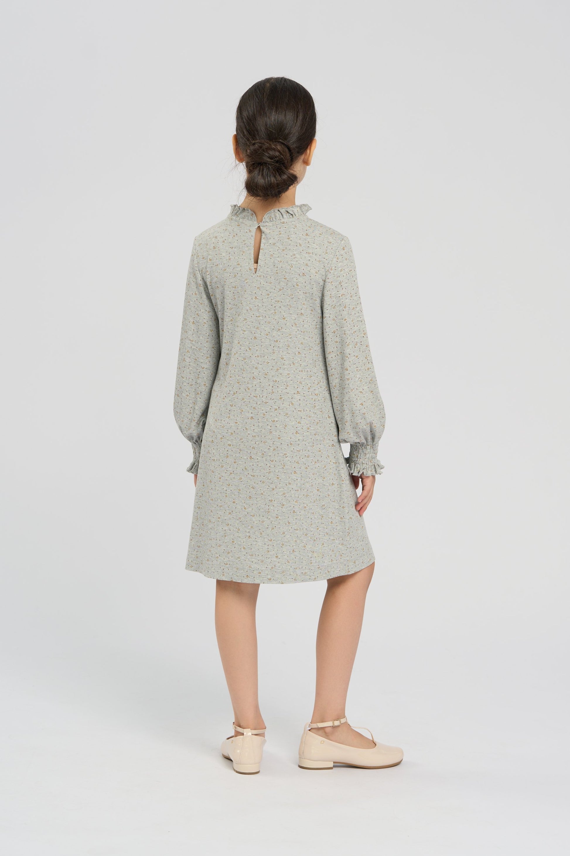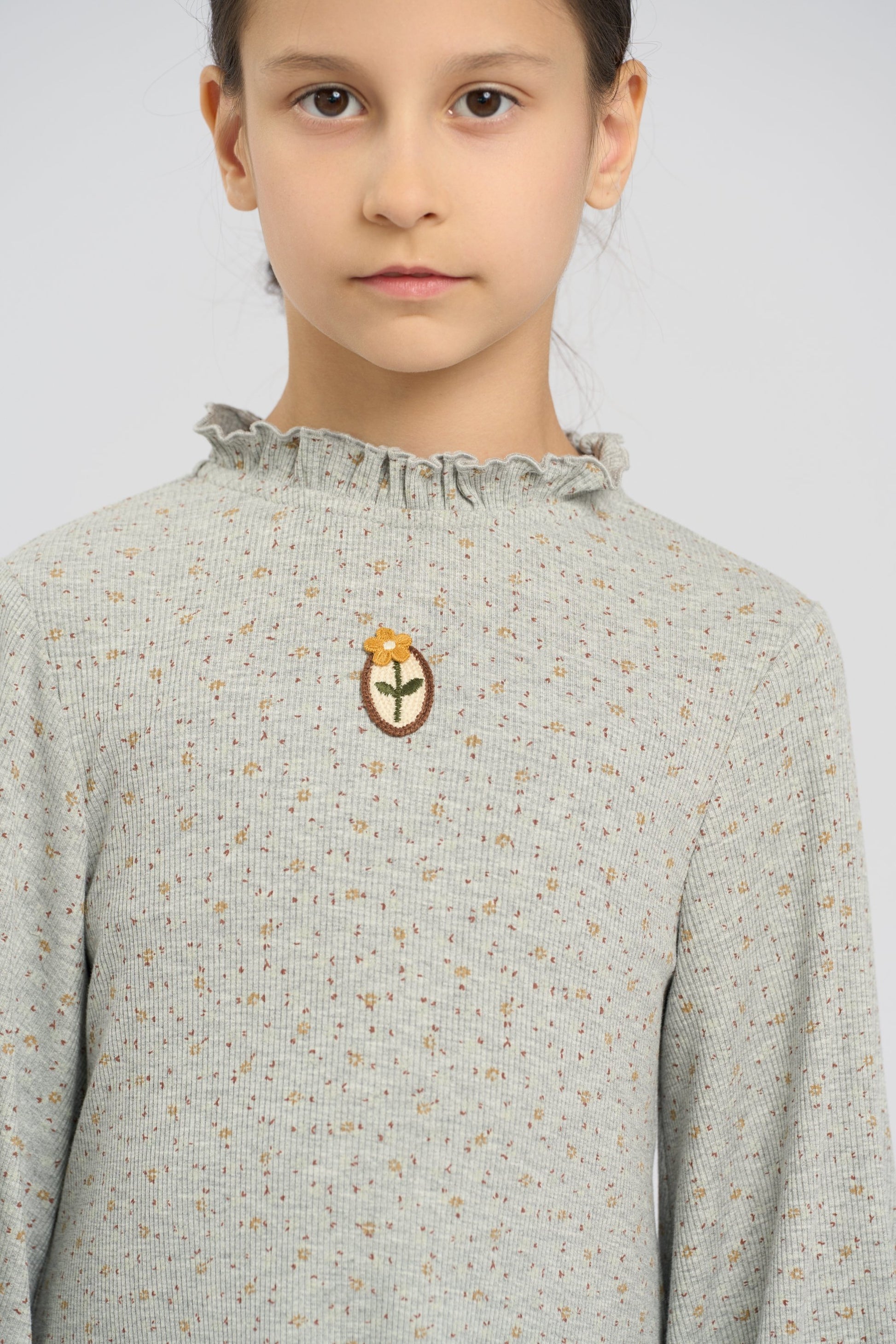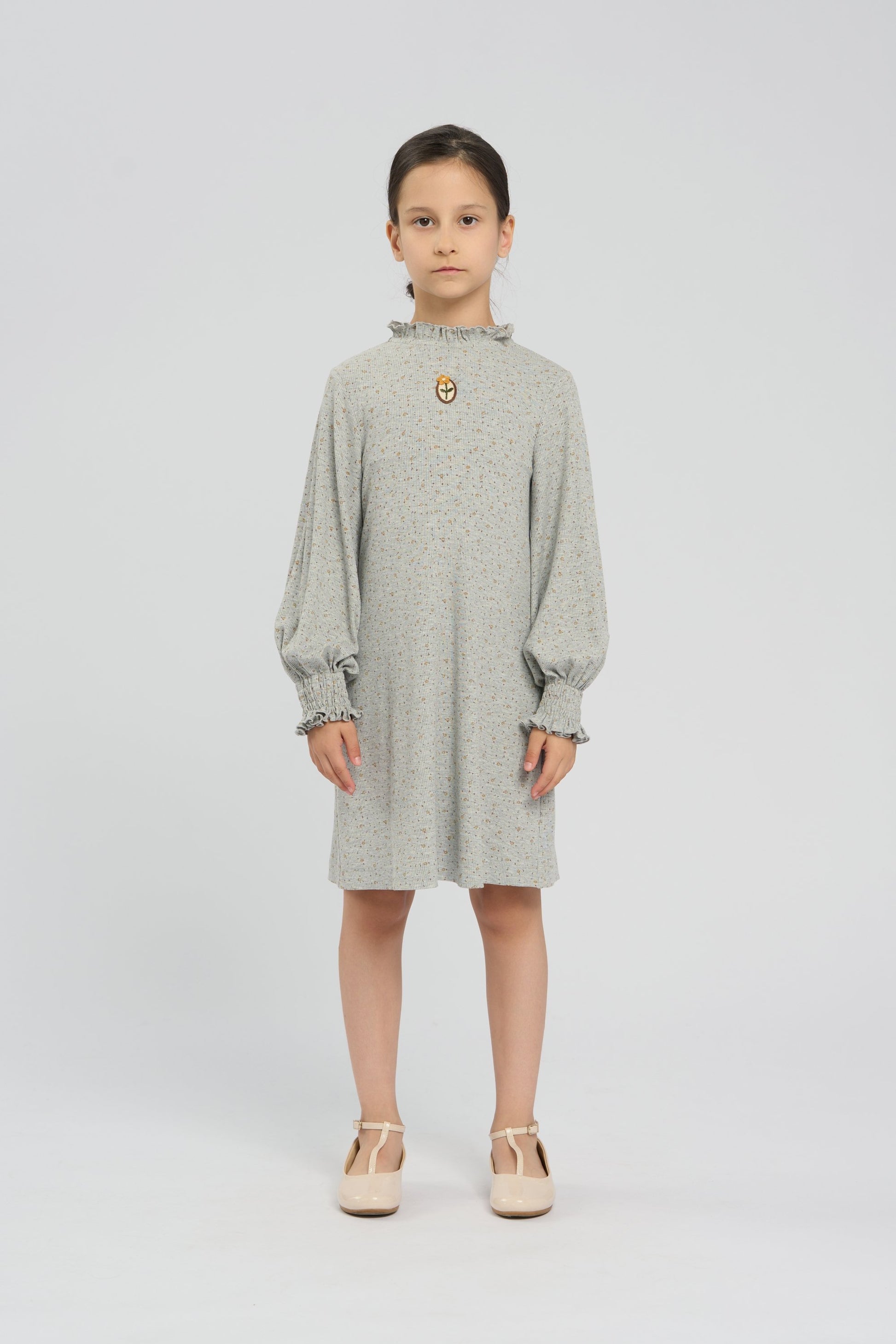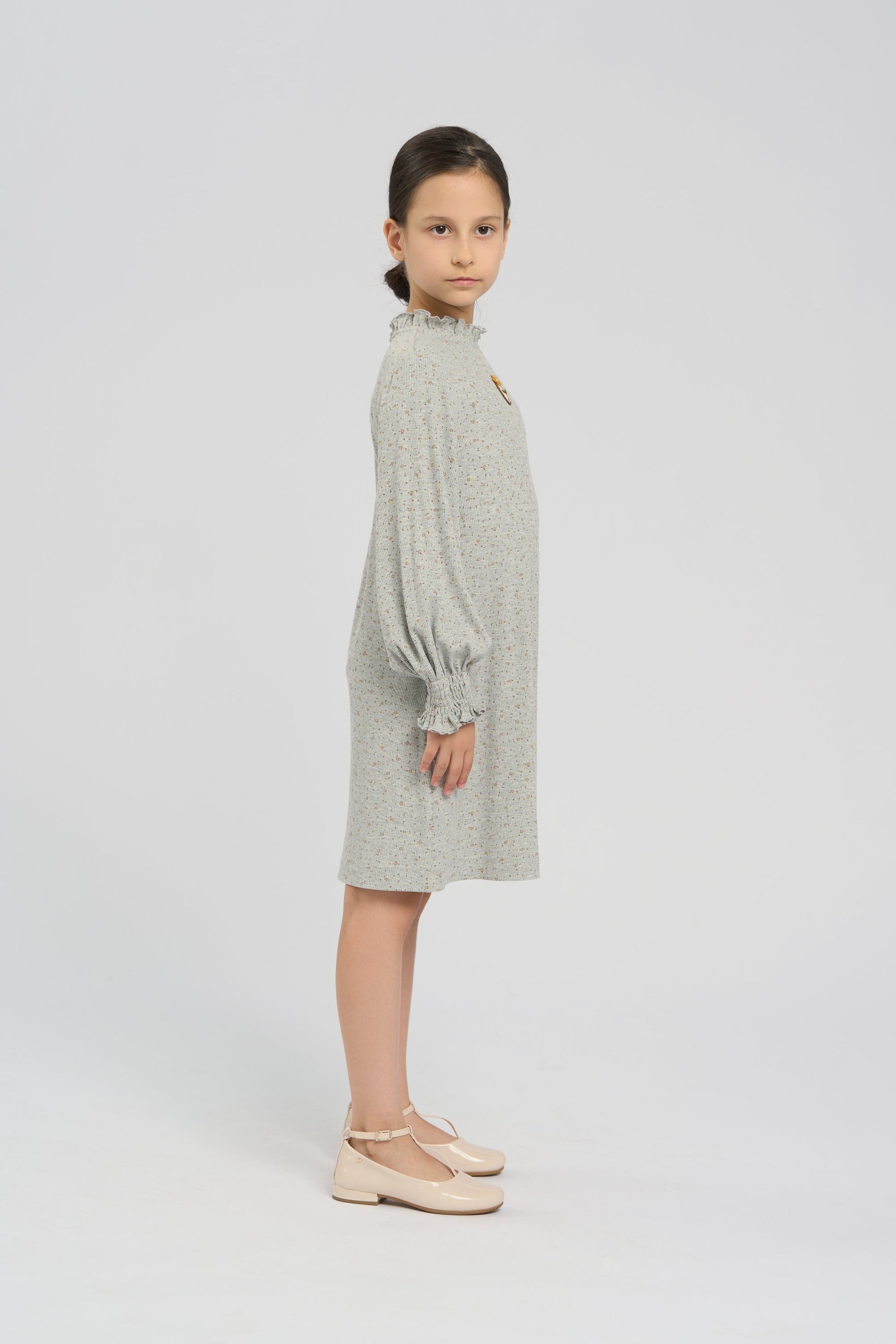 A knitted dress with a small flower pattern creates a charming image for a girl. The model has a comfortable, loose silhouette that does not restrict movement, which is important for an active child. Wide elastic cuffs guarantee a comfortable fit. The textured fabric creates a small relief on the surface of the dress, which additionally decorates the design. The collar with a narrow frill is fastened at the back with a neat button. A small flower embroidery located under the collar creates a pendant effect that every girl will love.