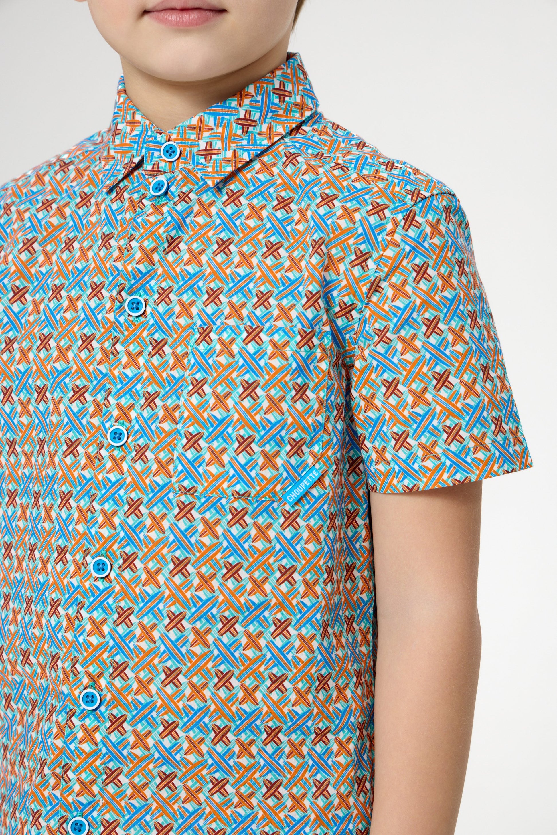 This multi-colored shirt and shorts set is perfect for any boy's wardrobe. Made with quality materials, it provides both comfort and style. Easily mix and match with other pieces for endless outfit options. A must-have for any growing boy!