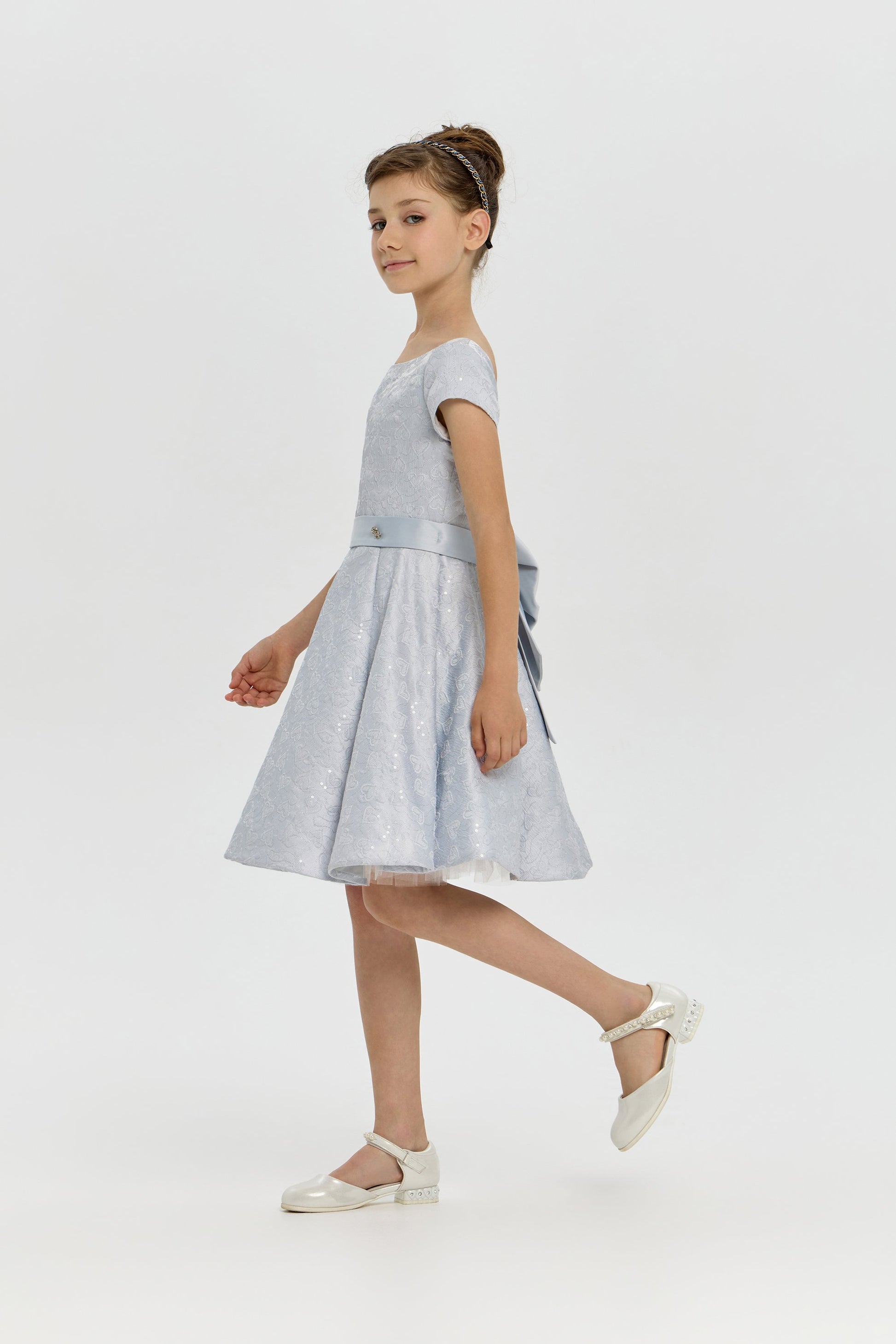 Introducing our Jacquard Sequins Decorated Dress, a light grey masterpiece for special occasions. This dress is adorned with delicate jacquard and shimmering sequins, elevating its elegance and making it the perfect choice for any sophisticated girl. Make a statement and turn heads with this luxurious dress.