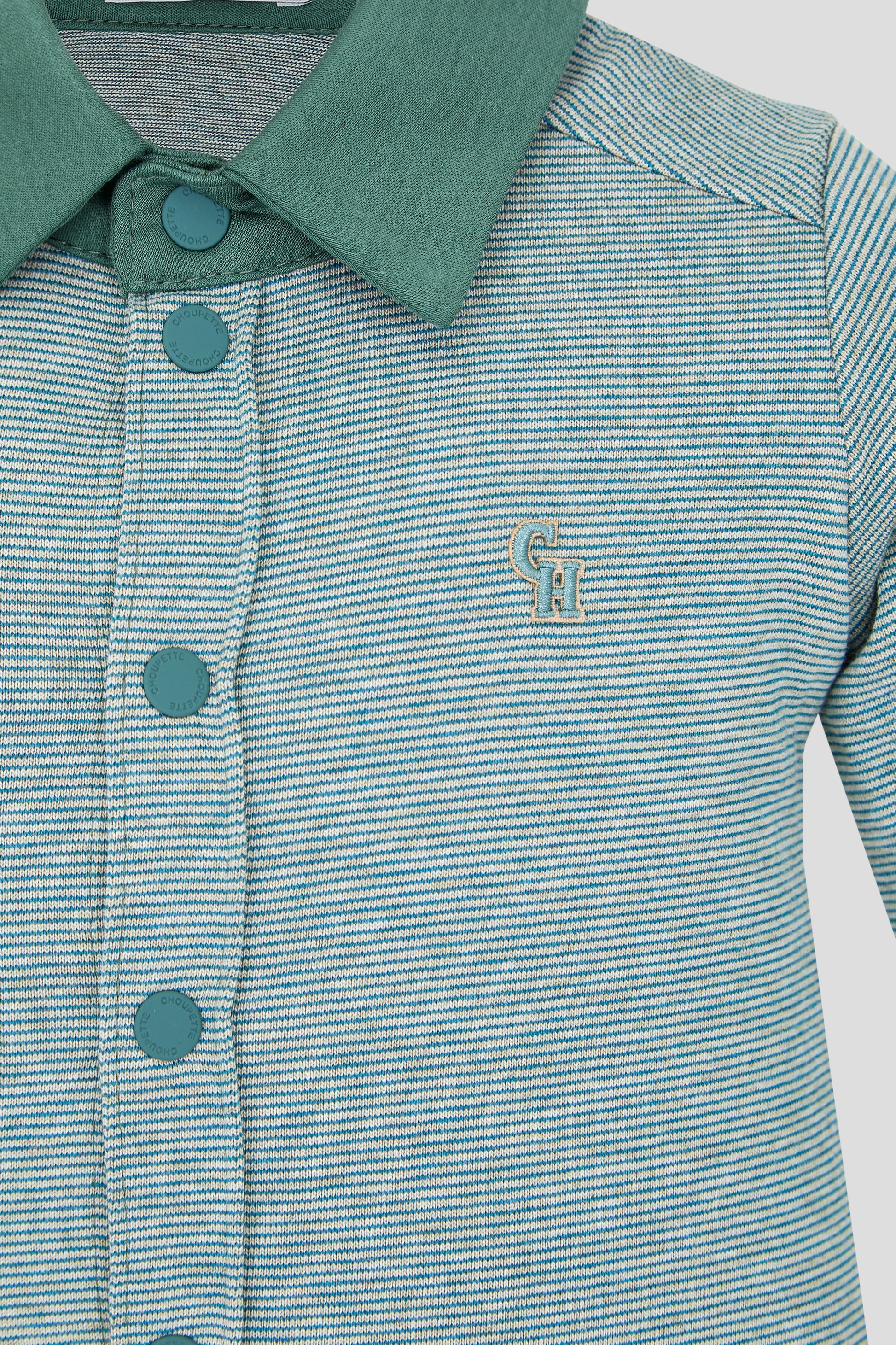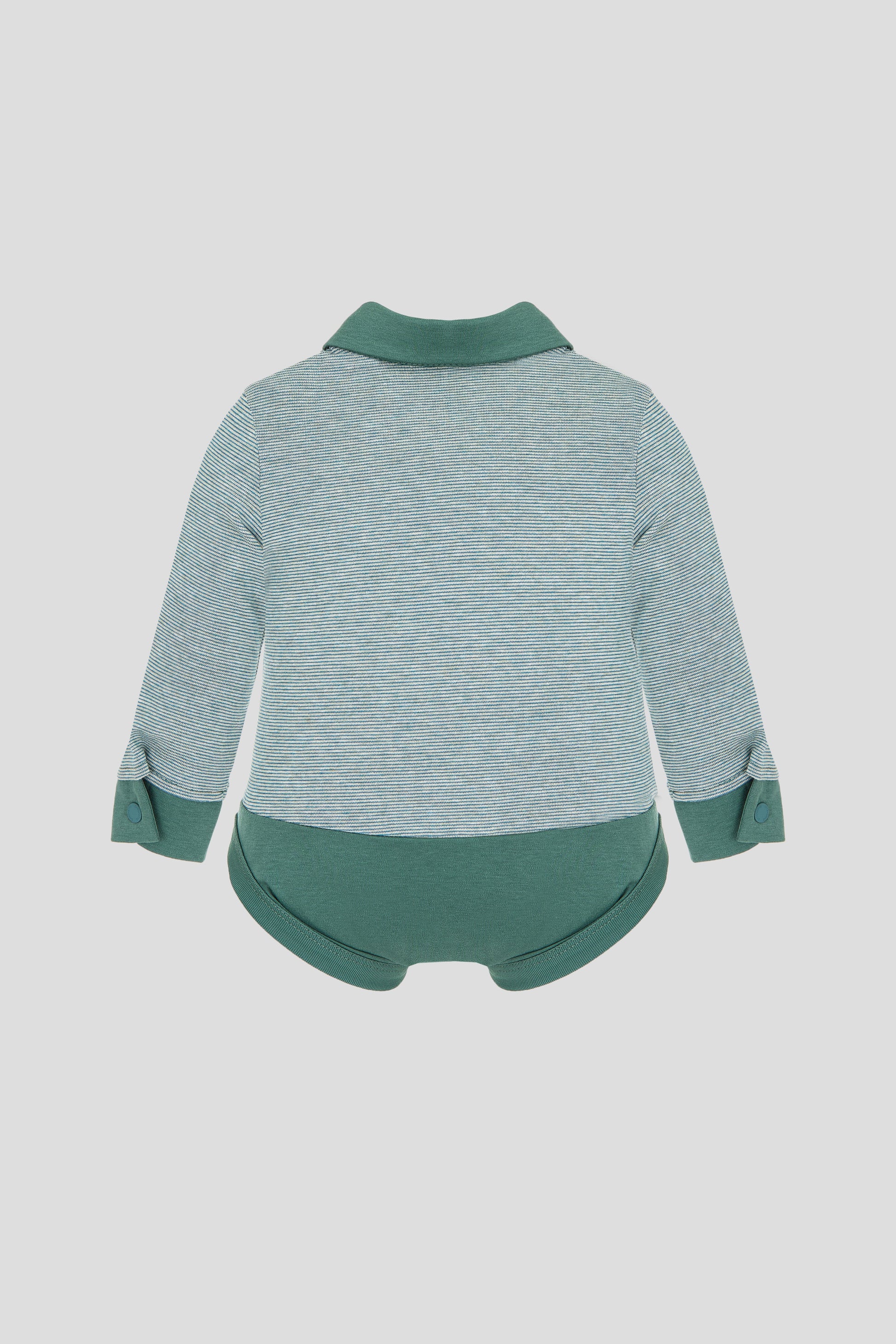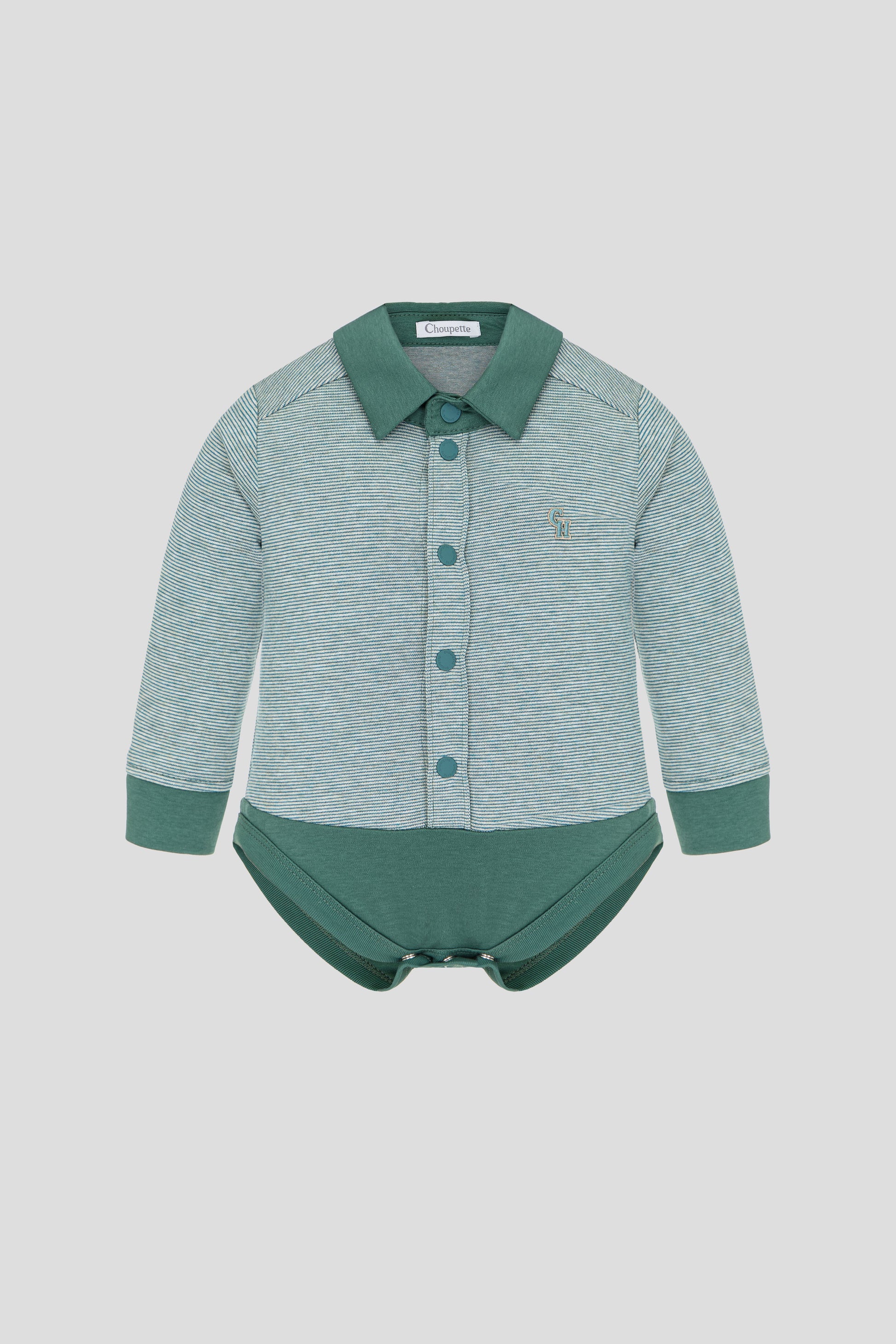 Crafted from soft, natural cotton, this Classic Green Shirt-Bodysuit combines comfort and elegance for your baby boy. Its gentle fabric ensures breathability and delicate care for sensitive skin, while the timeless green hue offers a polished, refined look. Designed for easy dressing, it seamlessly blends style with practicality for everyday wear.