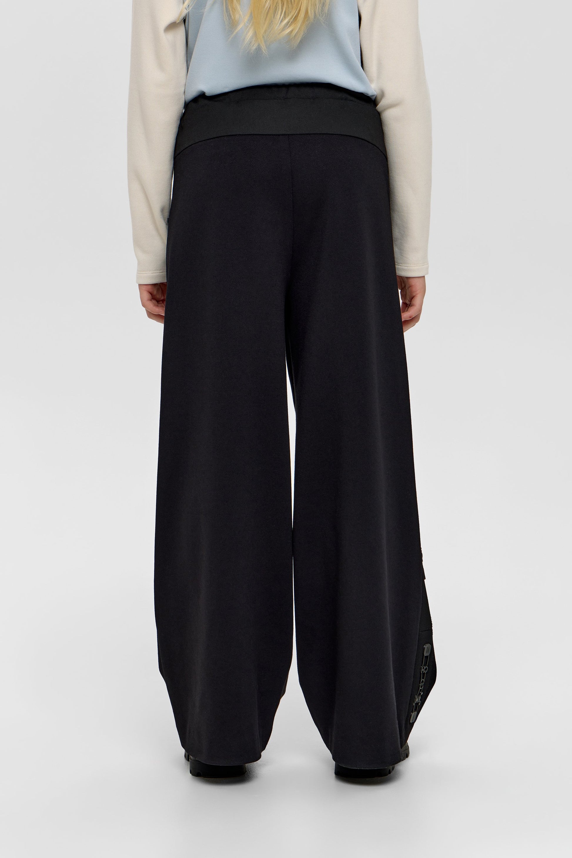 These black flared trousers for girls combine sleek design with charming detail, featuring a delicate chain applique that adds a subtle touch of elegance. Comfortable and stylish, they effortlessly elevate any outfit with a refined, contemporary flair.