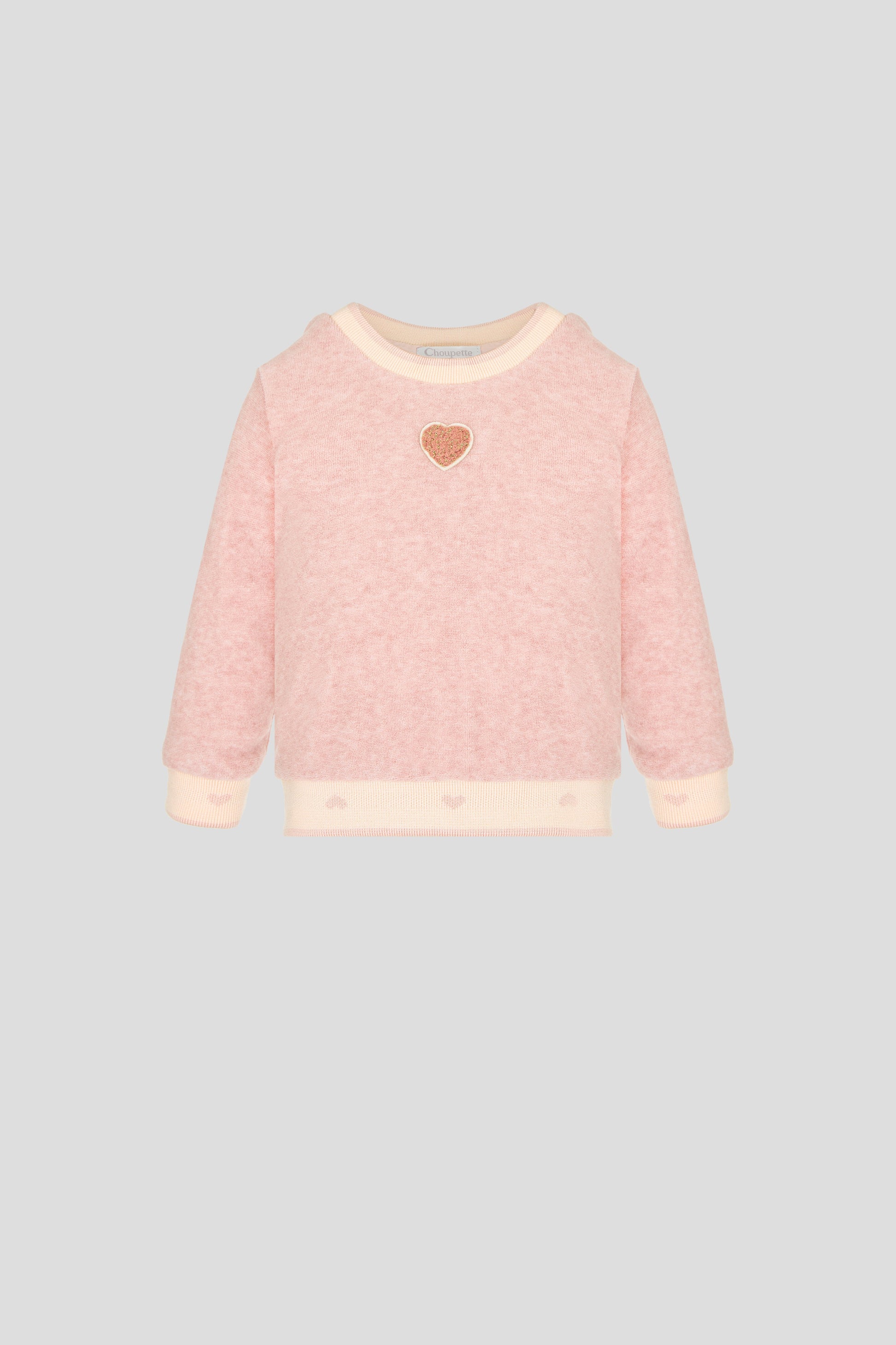 Luxurious velour sweatshirt adorned with a delicate heart applique, offering both comfort and elegance.