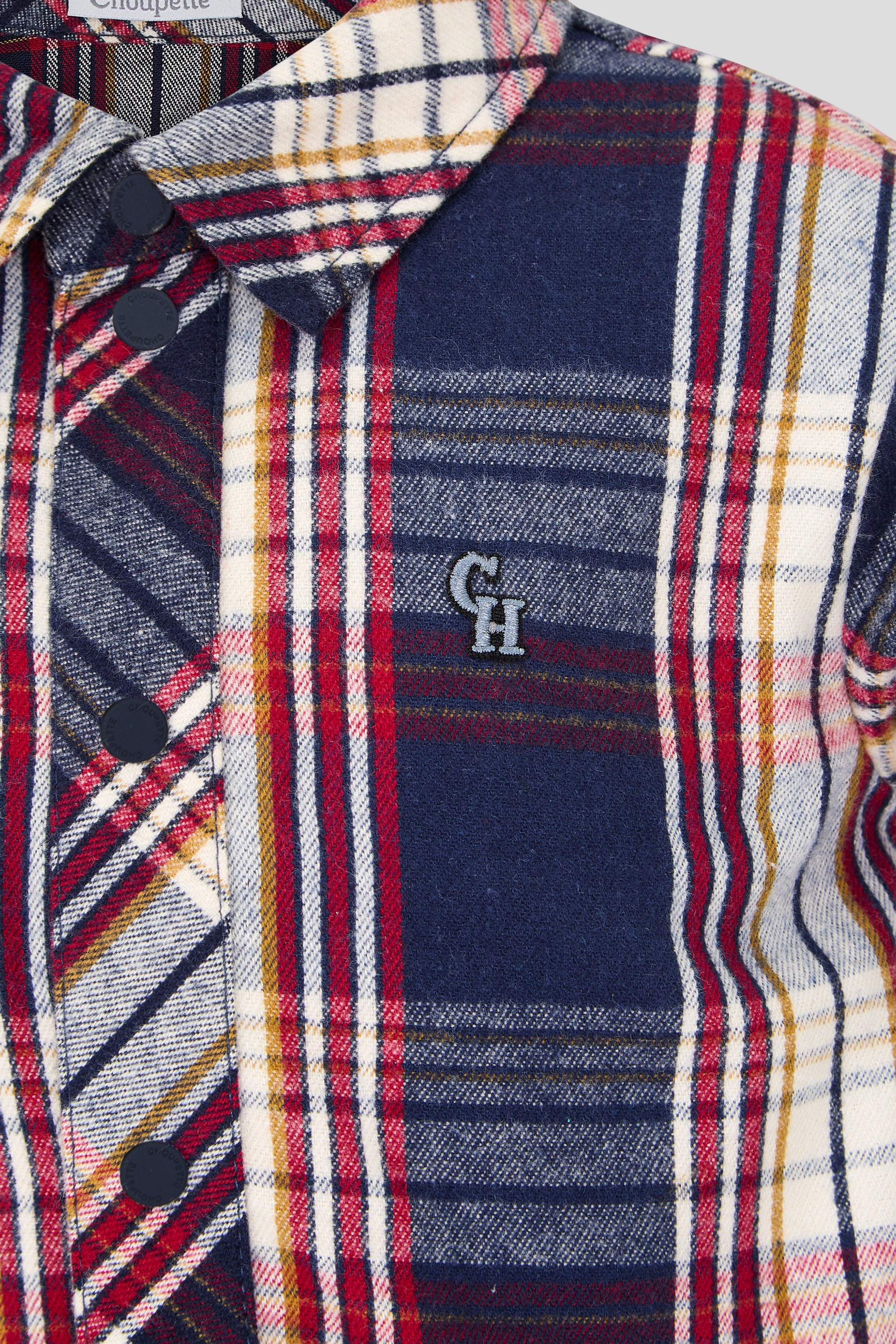 This Check Warm Shirt, crafted from soft cotton, provides gentle warmth and comfort ideal for your baby boy. Featuring a classic check pattern, it combines timeless style with cozy functionality. Perfect for keeping your little one snug and elegantly dressed during cooler days, this shirt is a refined choice for everyday wear.