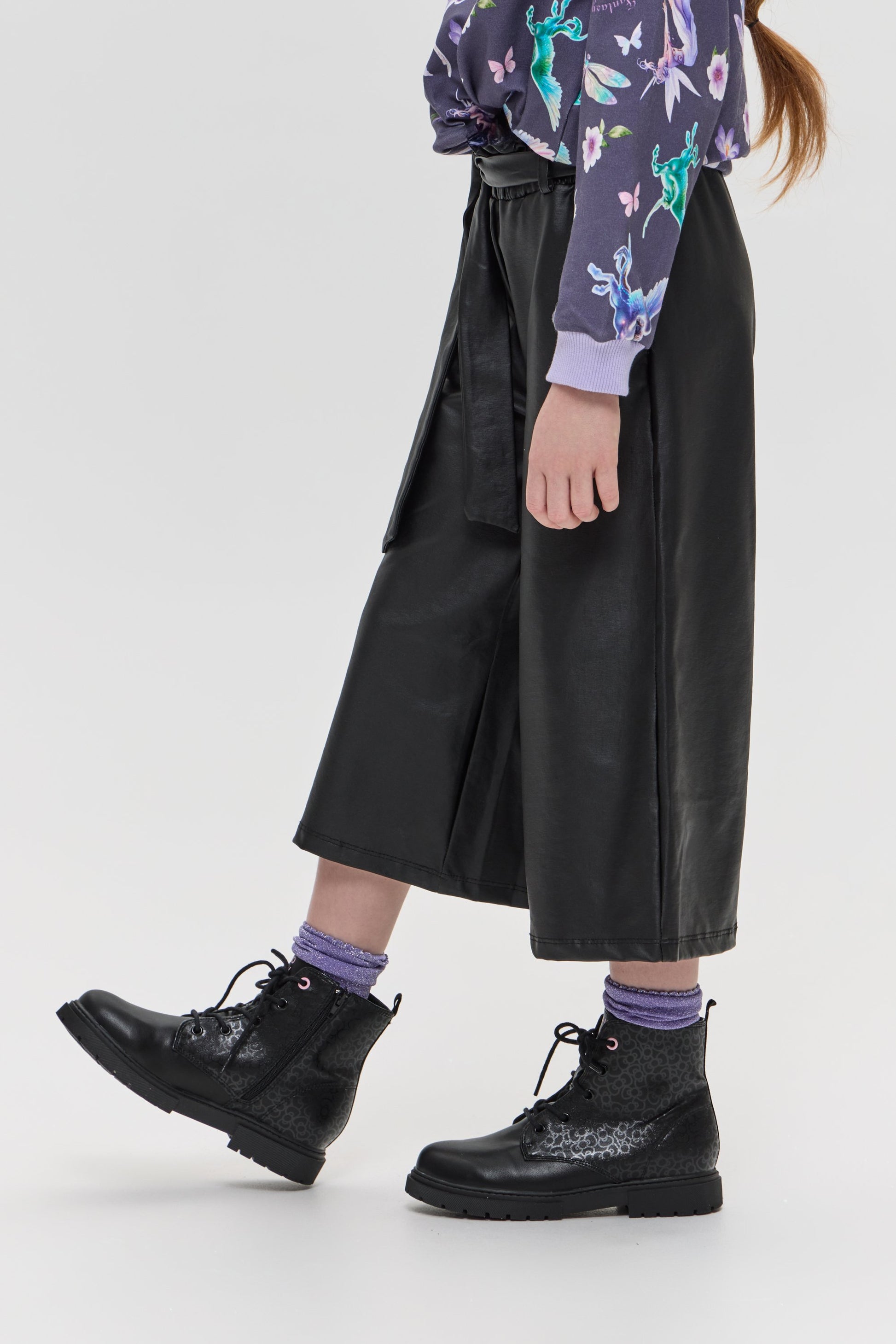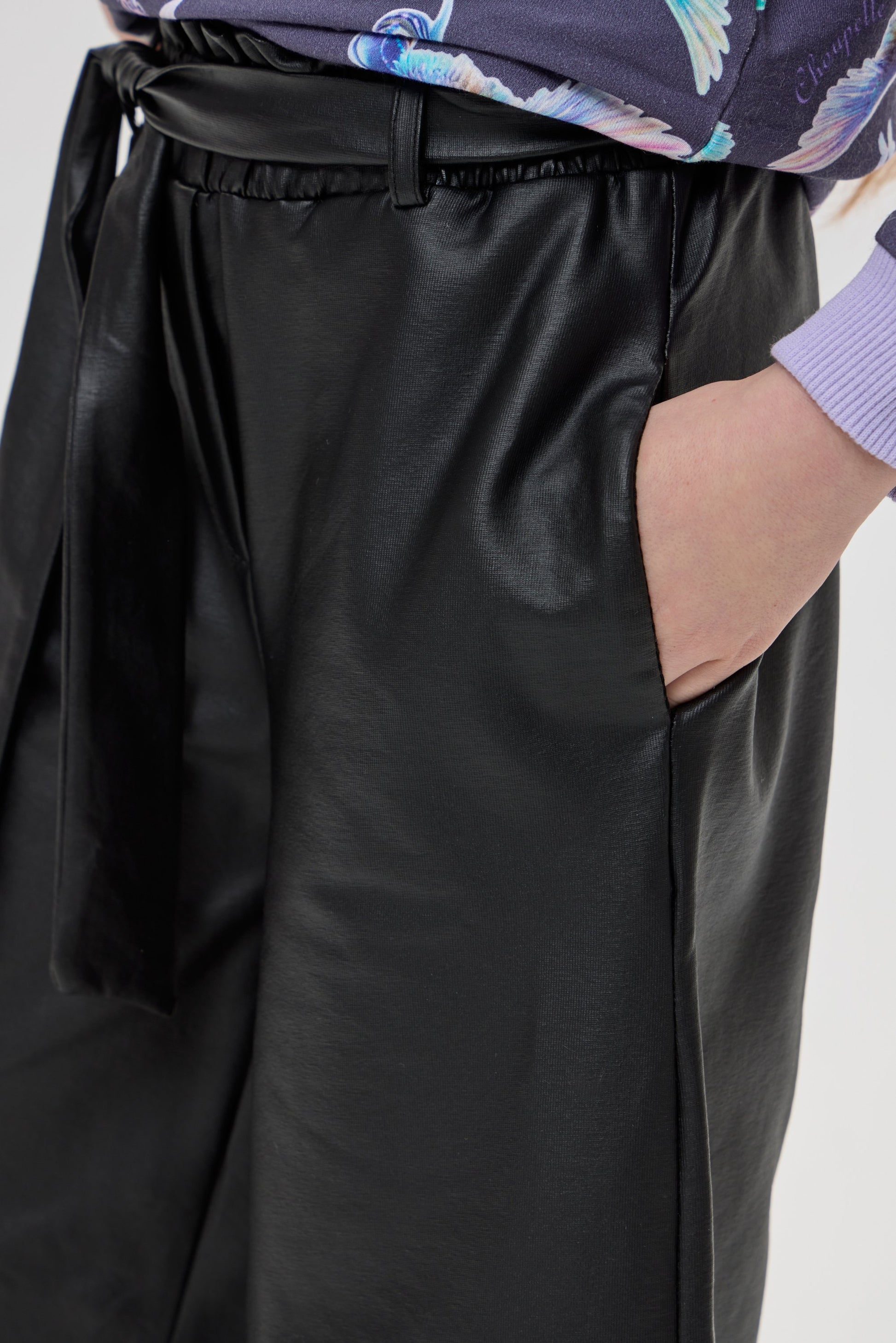 As a product expert in the fashion industry, I present to you our Leather Imitation Culottes. These culottes offer a sleek and stylish look with a comfortable fit. Made with high-quality leather imitation material, they provide a modern update to any wardrobe. Perfect for any occasion, these culottes are a must-have for any fashion-savvy individual.