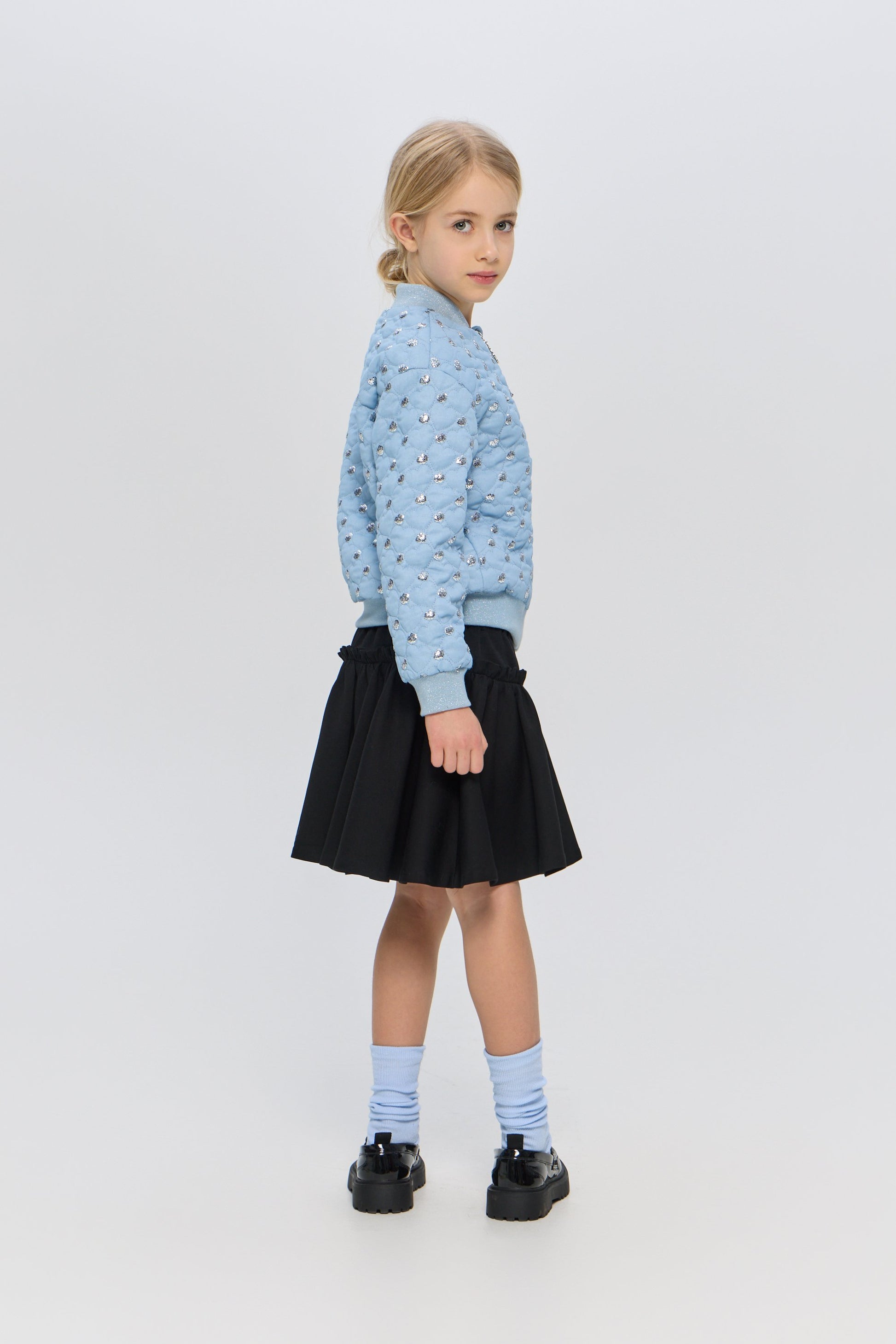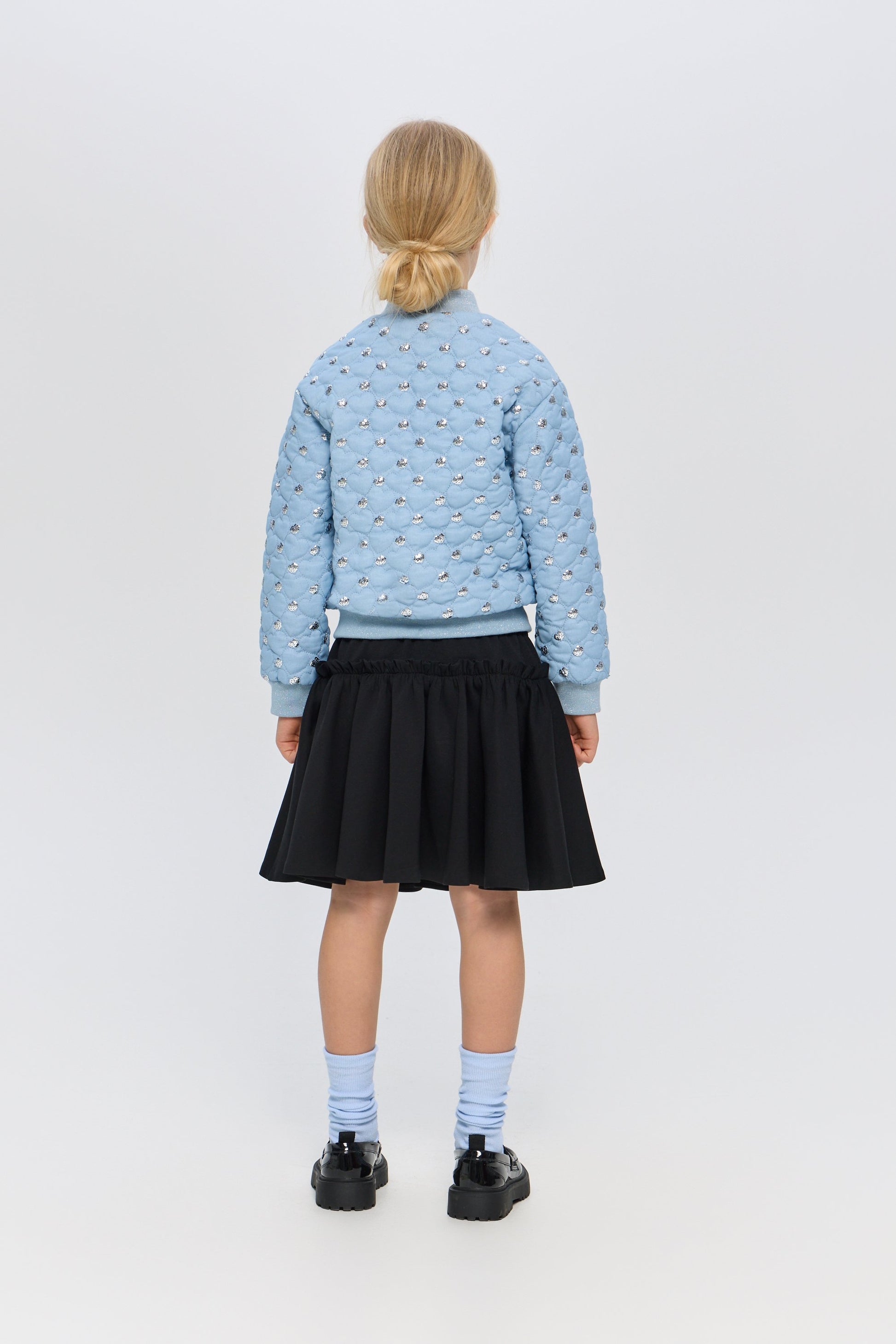 This blue denim Warmed Bomber Jacket for girls combines stylish design with cozy warmth. Quilted with delicate hearts and shimmering sequins, it offers a refined, playful touch. Crafted to provide comfort and insulation, this jacket is perfect for cooler days, ensuring your child stays both fashionable and snug.