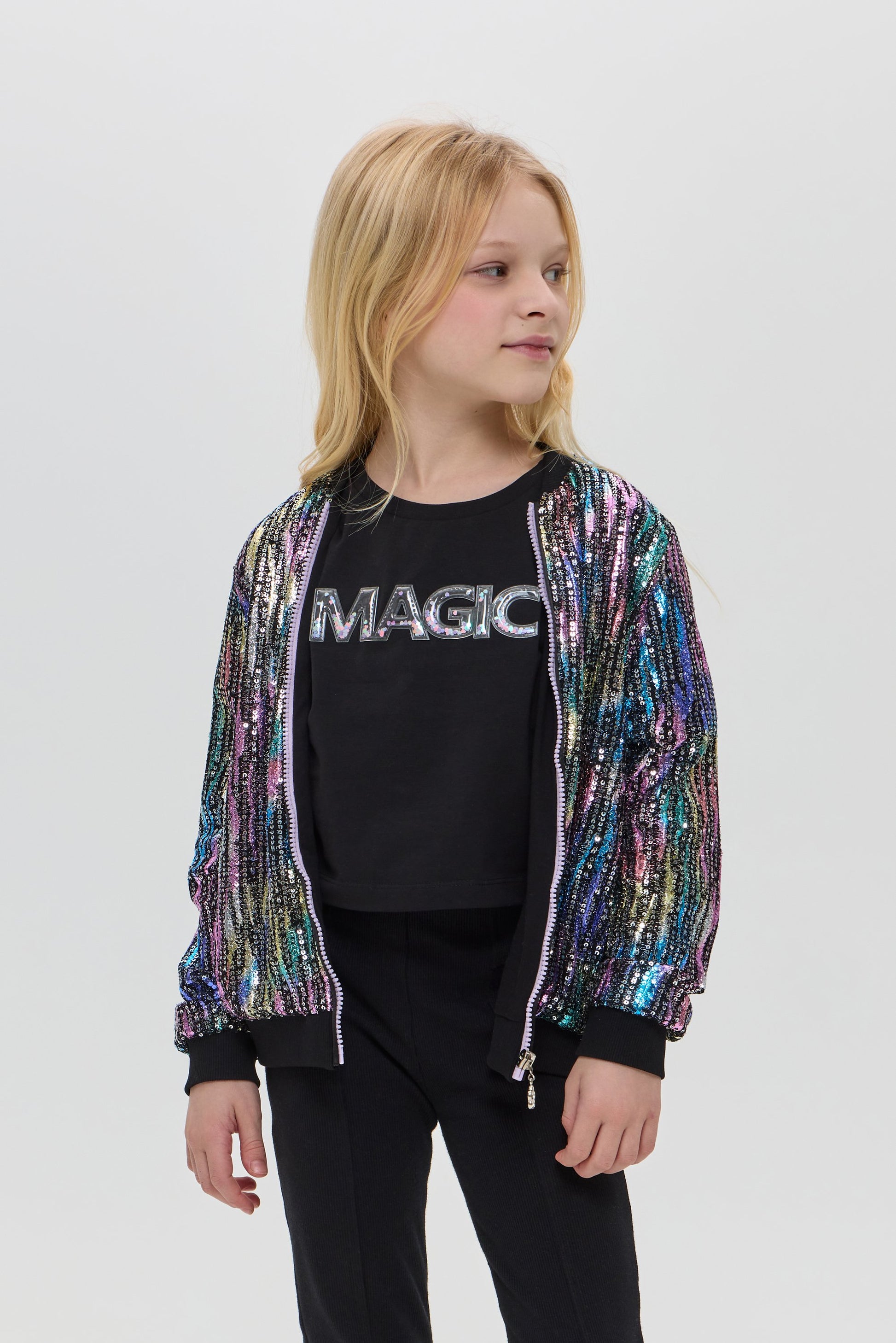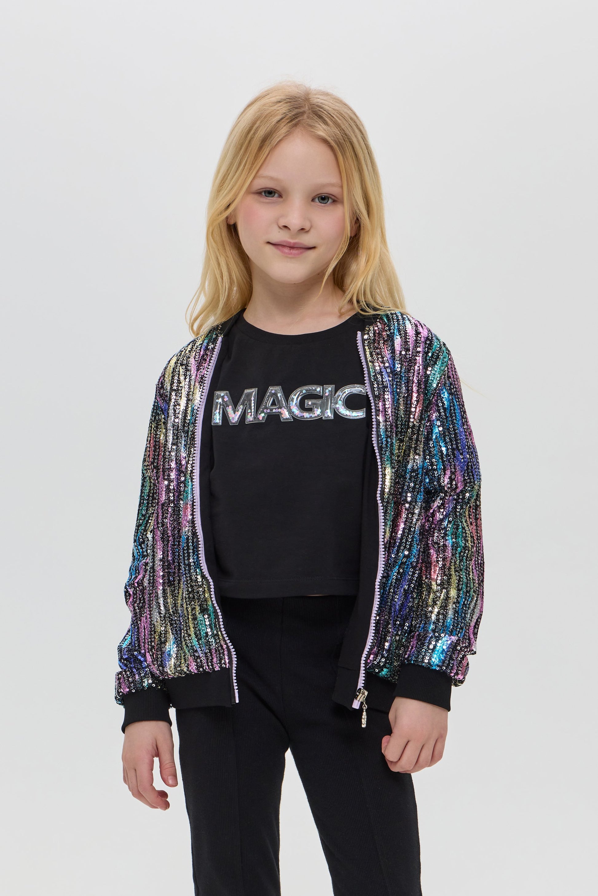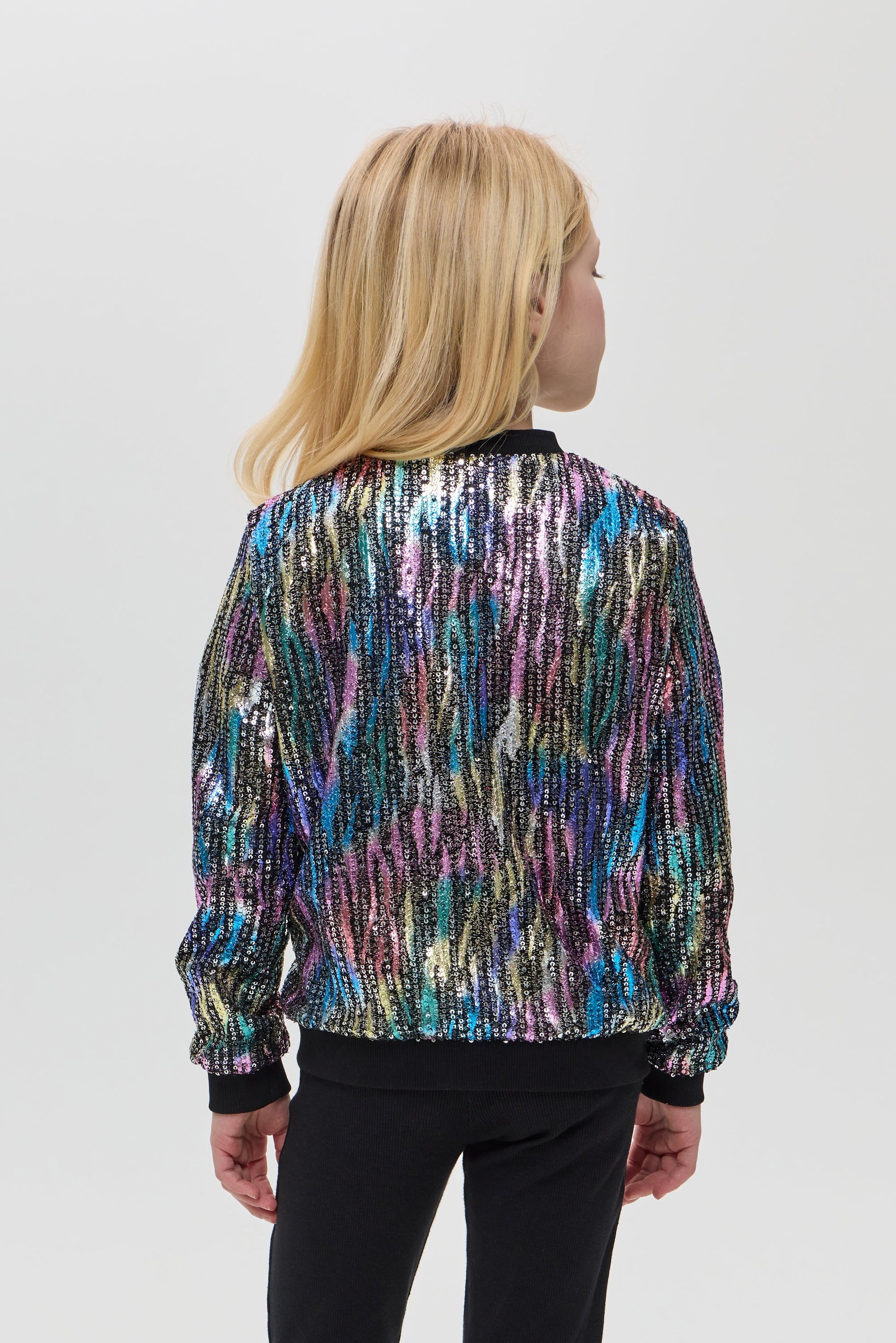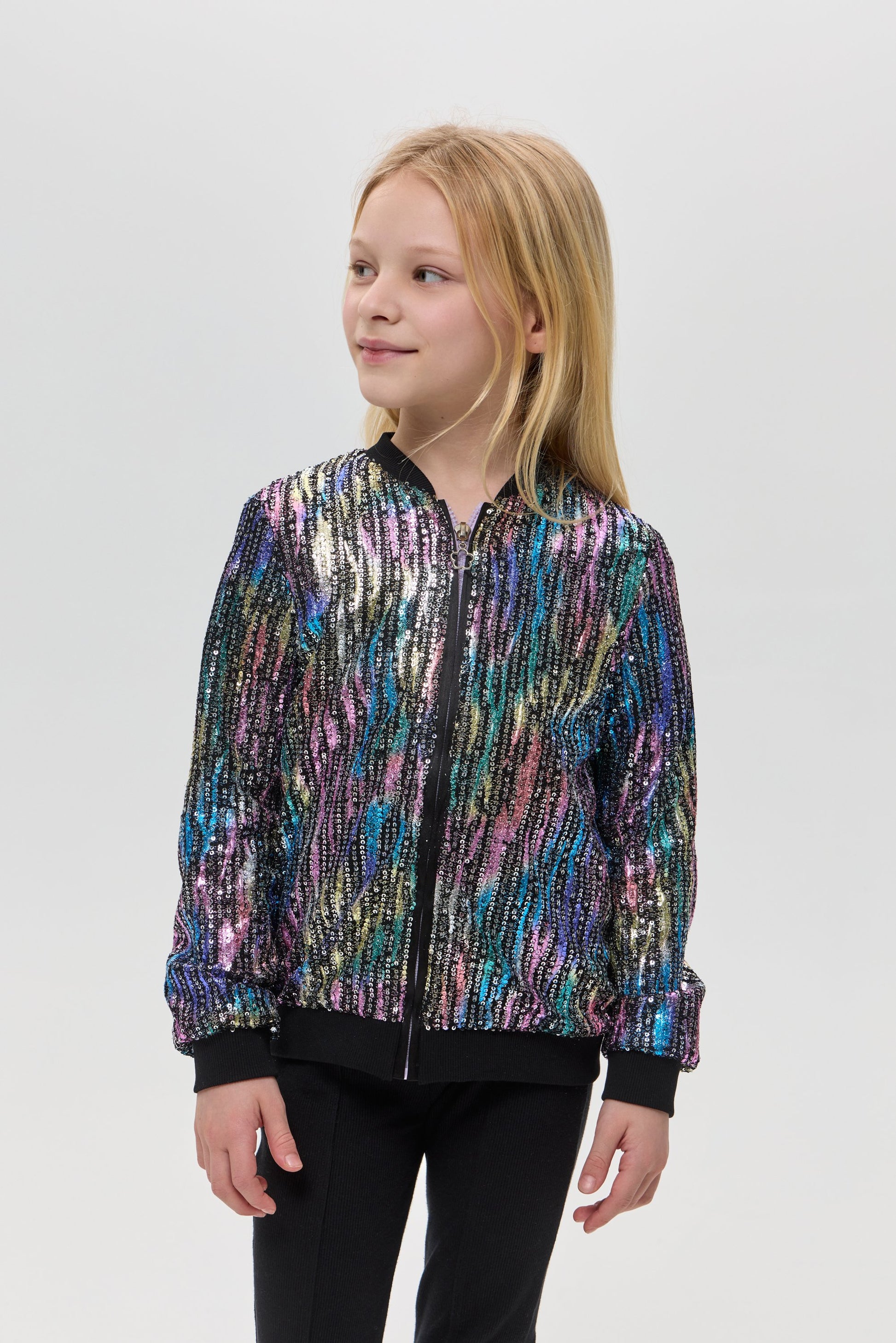 This stylish Sequins Bomber Jacket is perfect for adding a touch of sparkle to any outfit. The sequins add a touch of glamor while the bomber style keeps you on trend. Featuring a comfortable fit and durable material, this jacket is a must-have for any fashion-forward individual.