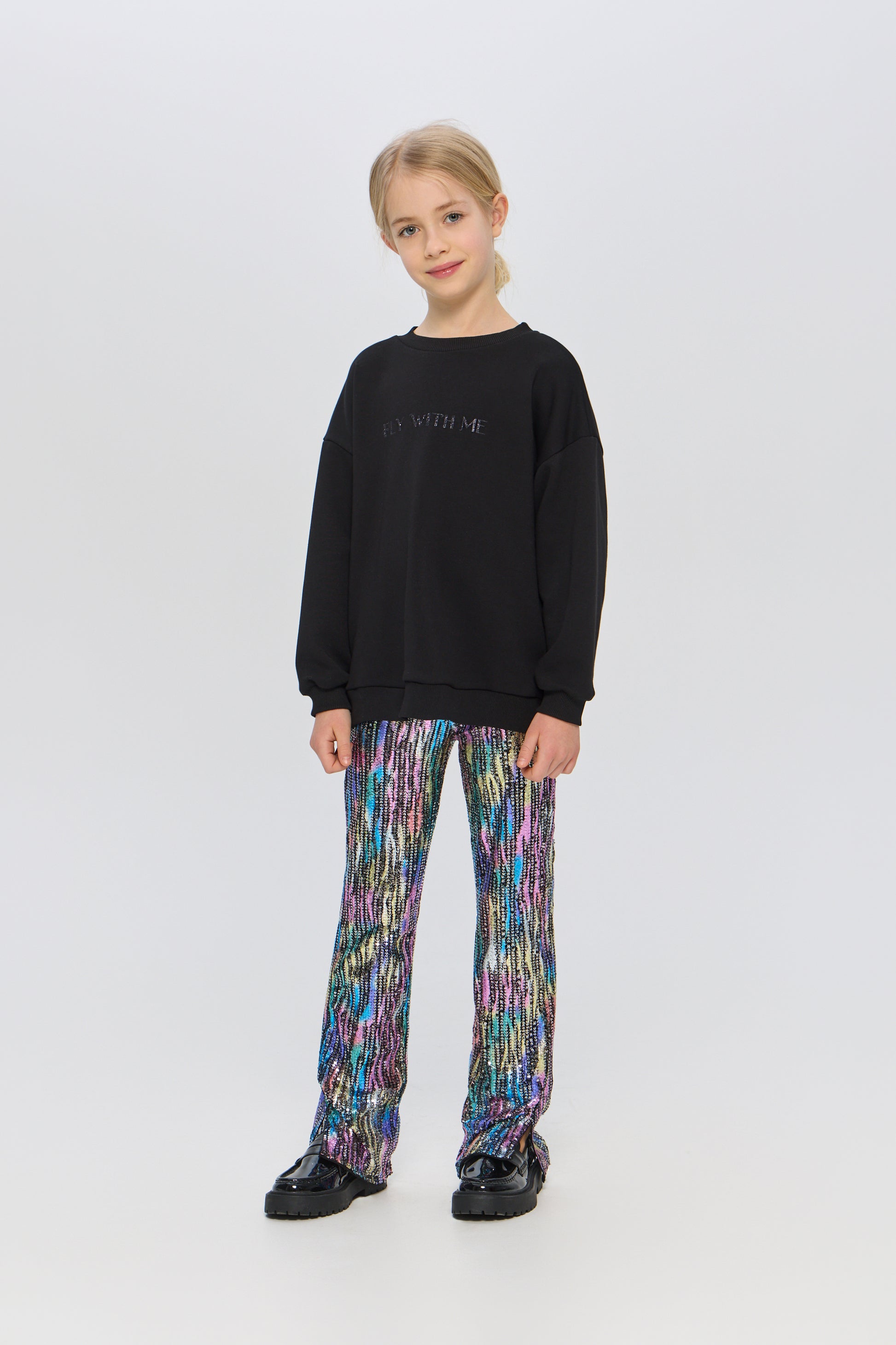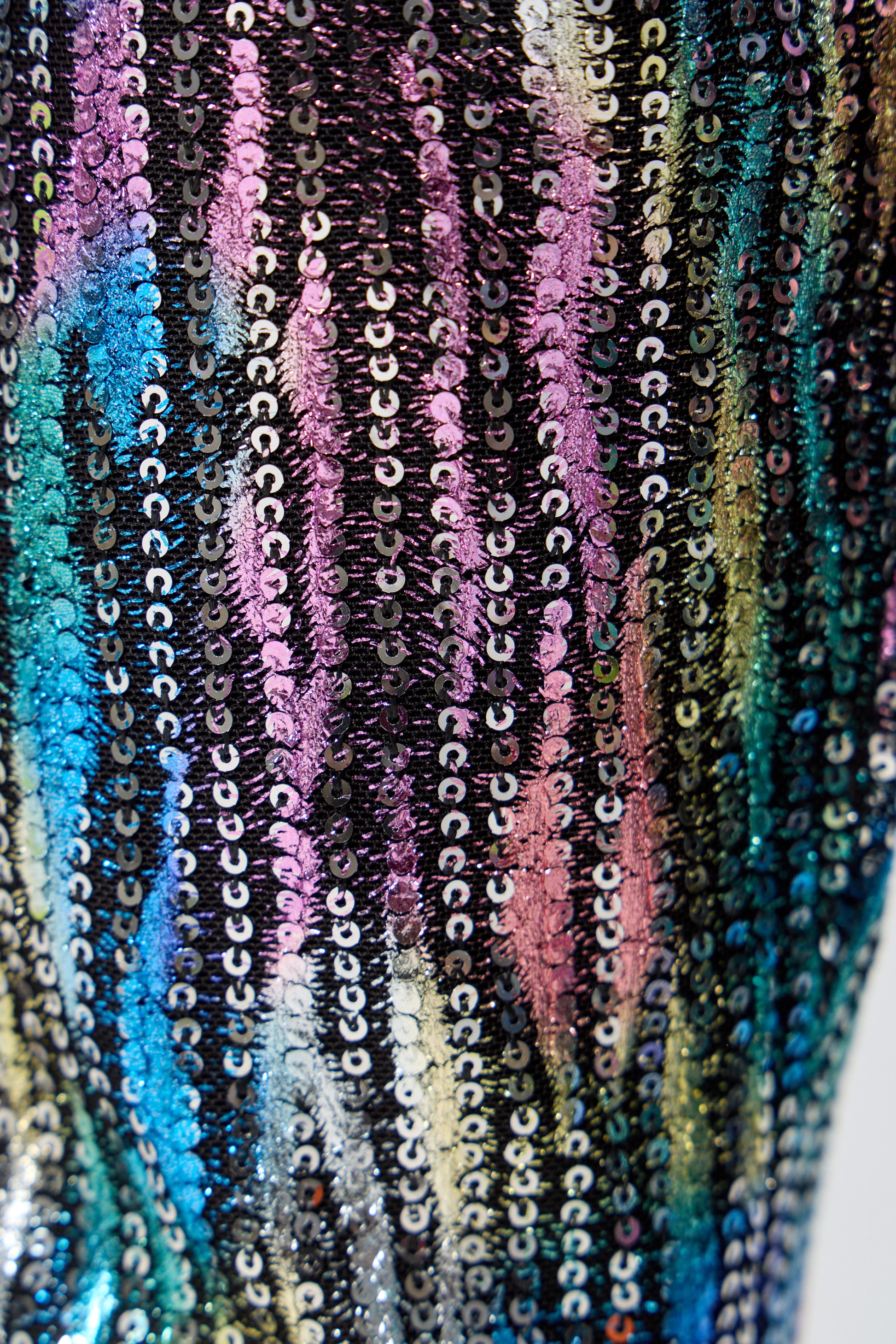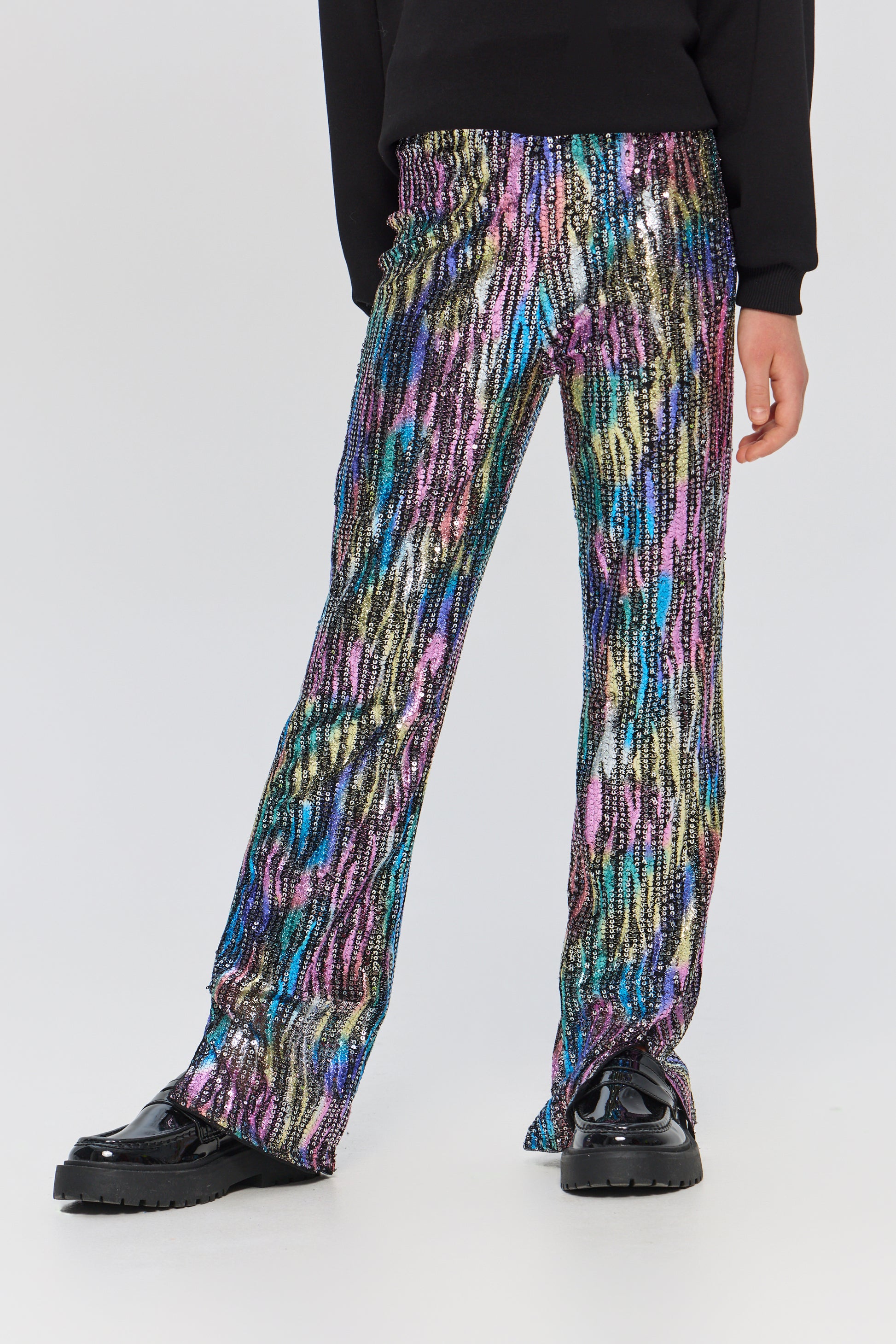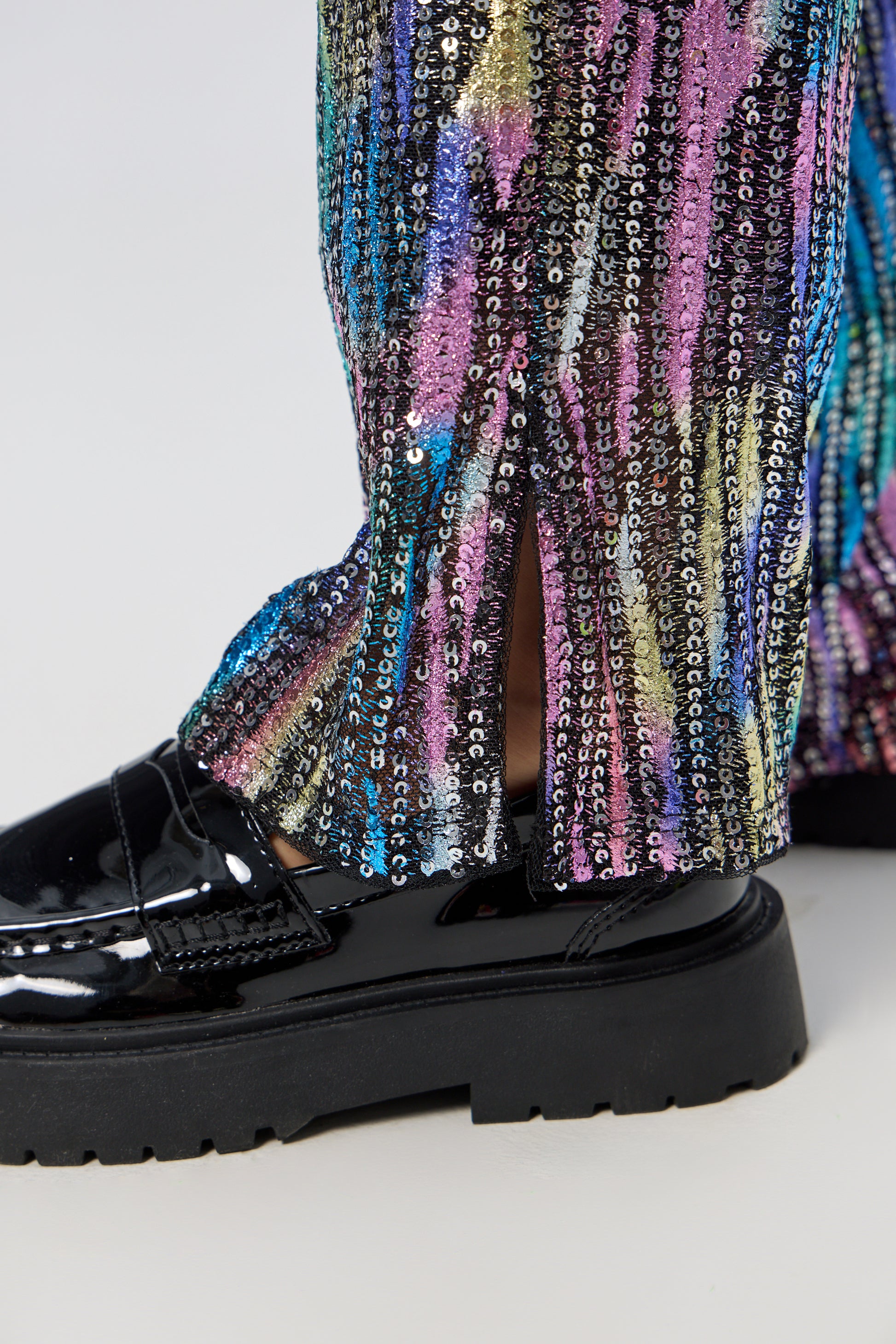 Shimmer and shine in these multicolored sequins trousers. Perfect for adding a touch of glam to any outfit. Whether you're hitting the dance floor or just want to stand out, these trousers are a fun and quirky addition to any wardrobe. (Disco ball not included.)