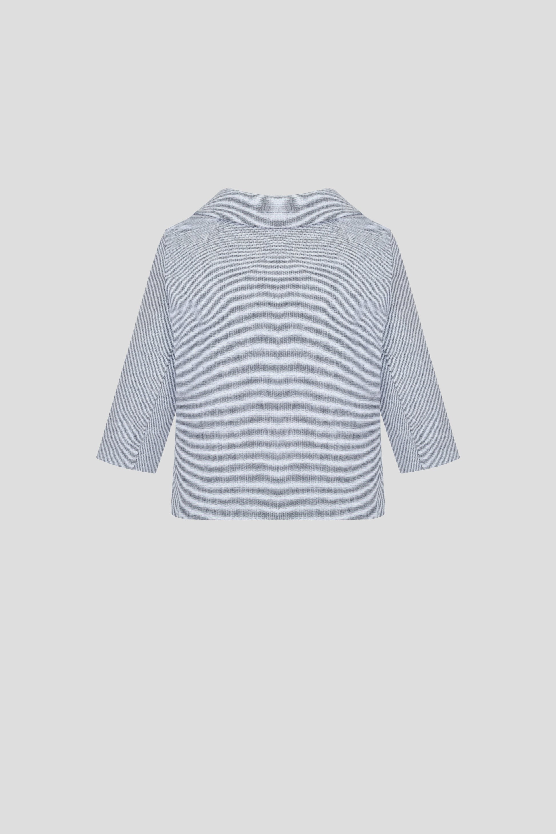 Upgrade your wardrobe with this elegant grey blazer. Featuring a classic cut and two-button design, this blazer exudes sophistication and versatility. Perfect for any occasion, this blazer is a stylish addition to any outfit. Elevate your look with this must-have piece.