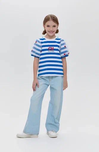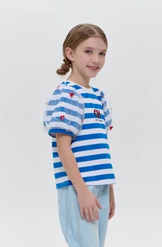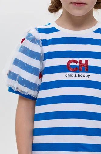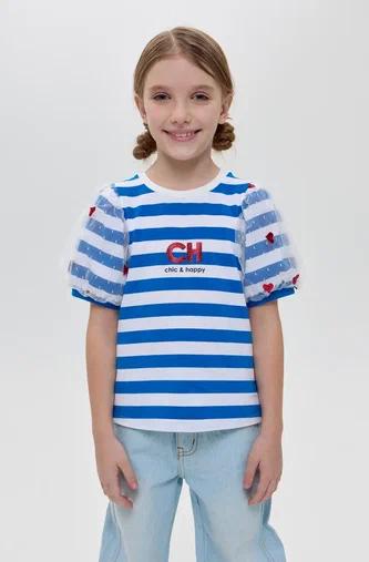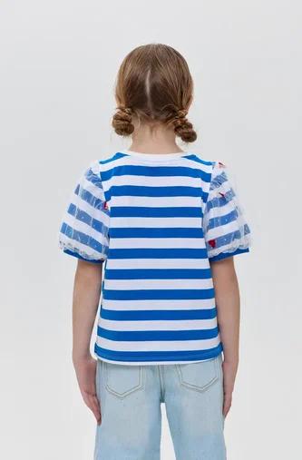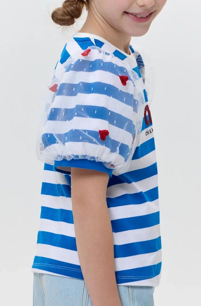 Flouncy Hearts Sleeves T-shirt, blue stripes