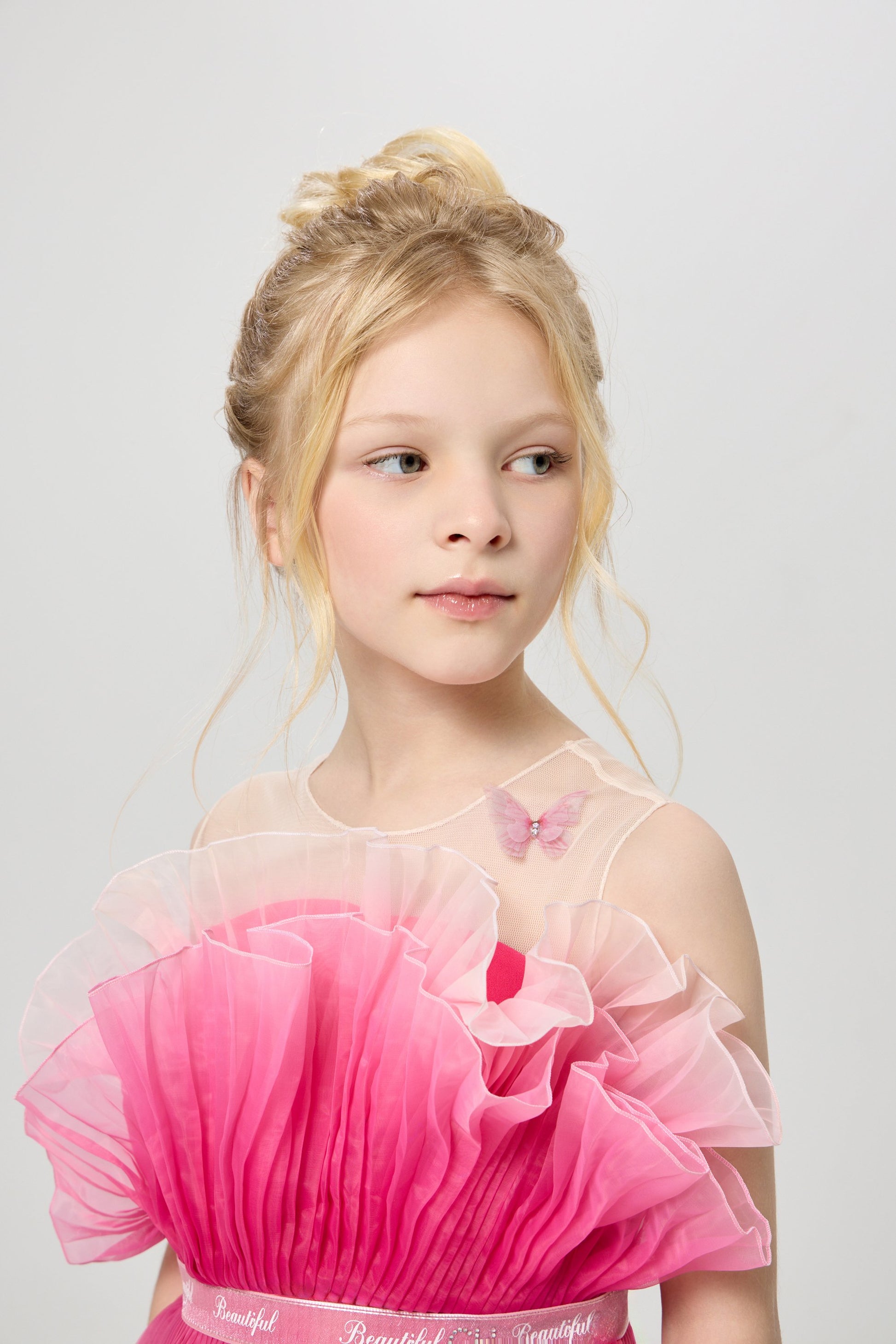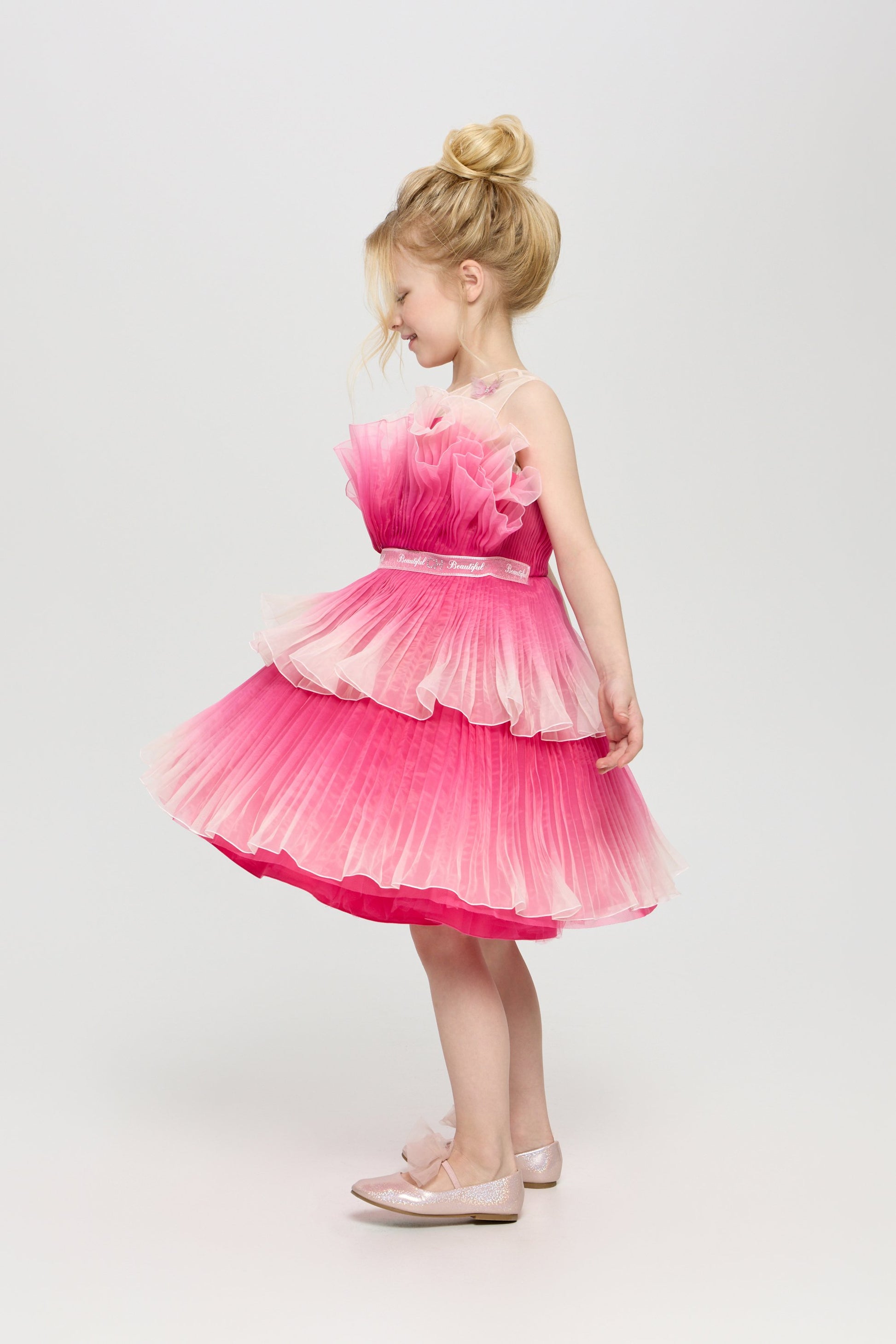 The Gradient dress is perfect for your little girl. The beautiful gradient pink color will make her stand out in any occasion. The delicate flower detailing adds a touch of elegance to the dress. Let your little one shine in this dress!
