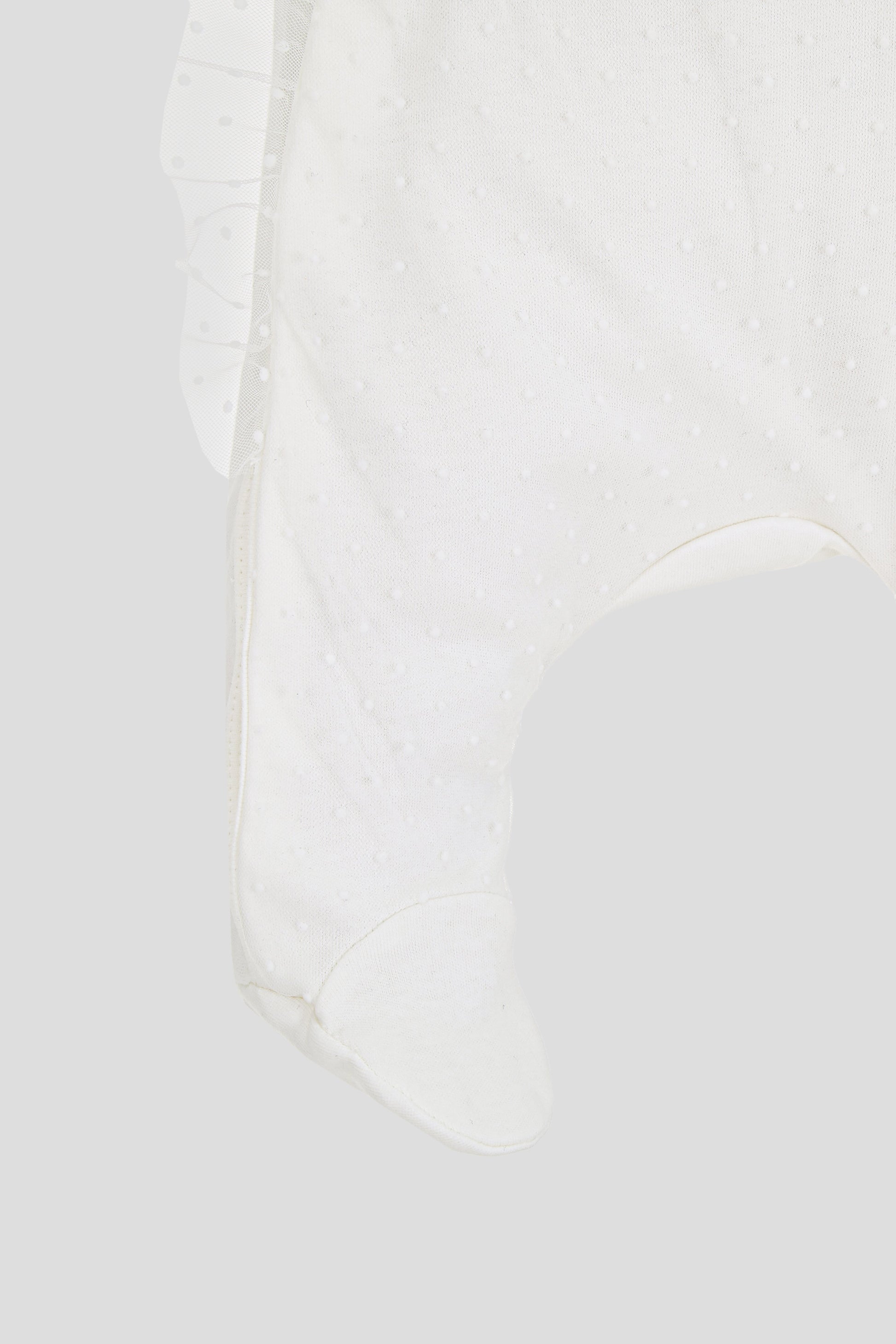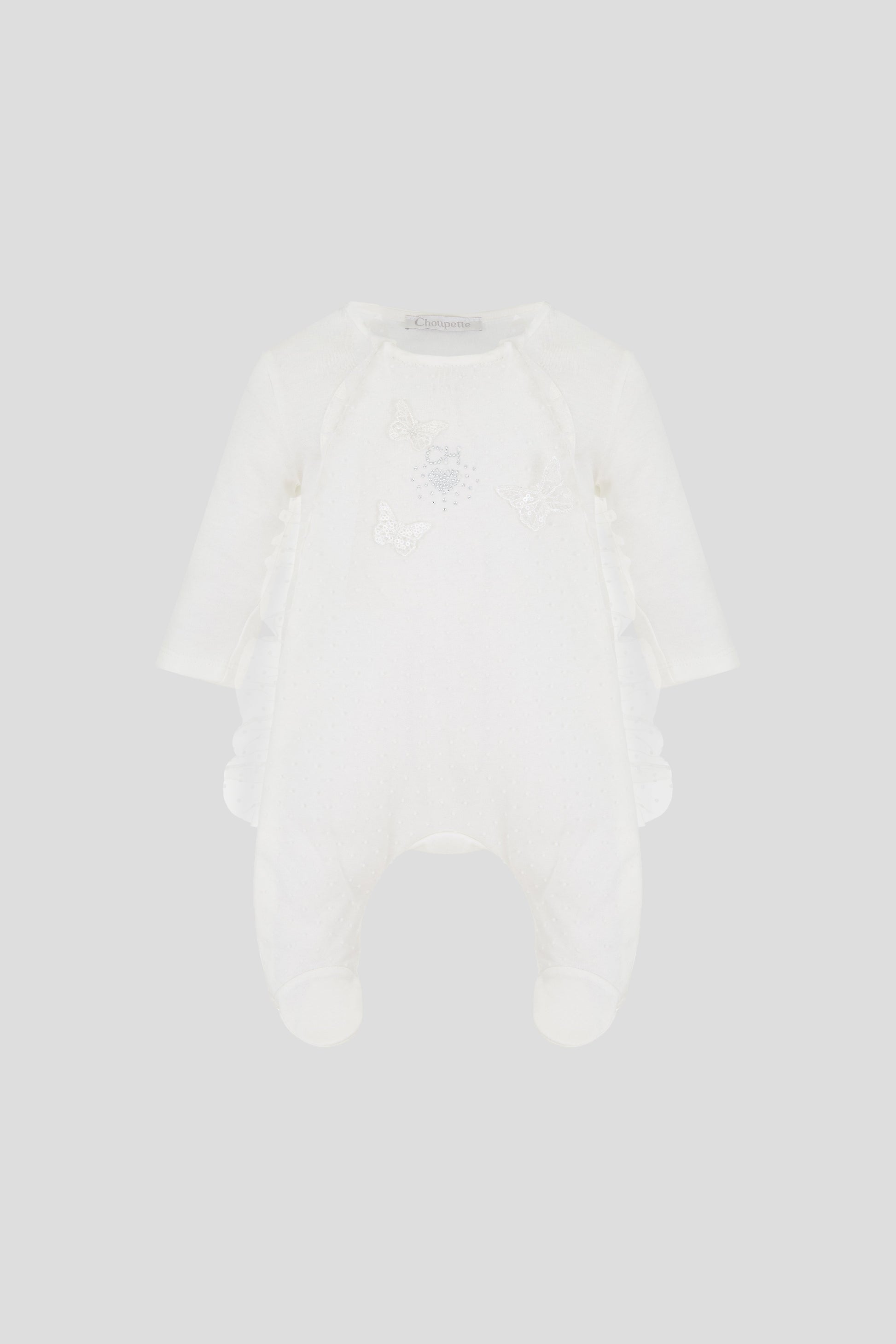 This charming ecru lace set features a delicate jumpsuit and matching bonnet adorned with whimsical butterfly details, perfect for your newborn’s first special moments. Soft and breathable, it ensures comfort while adding a touch of playful elegance to your little one’s wardrobe. Ideal for photoshoots or celebrations, this set brings sweetness and style in one adorable package.