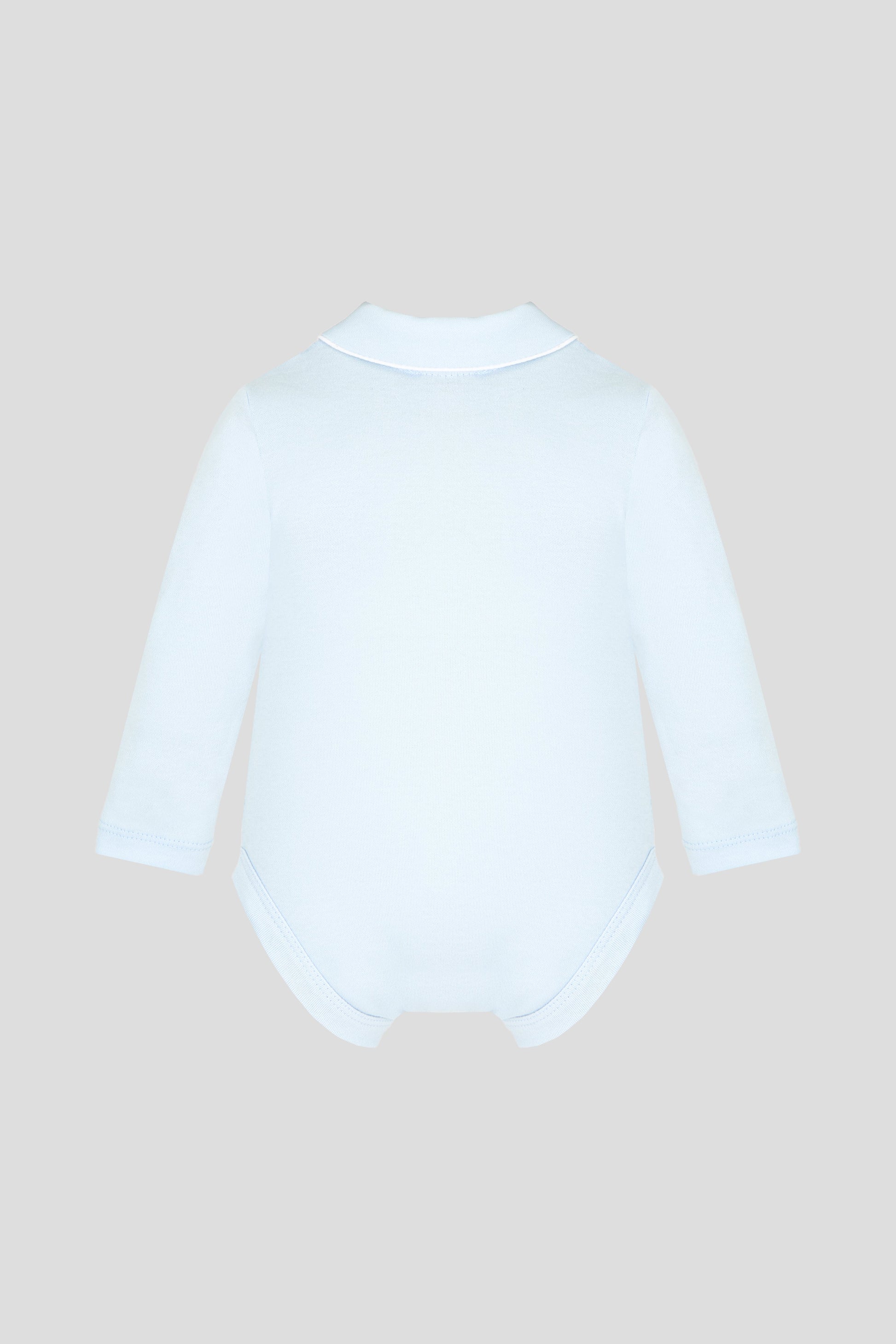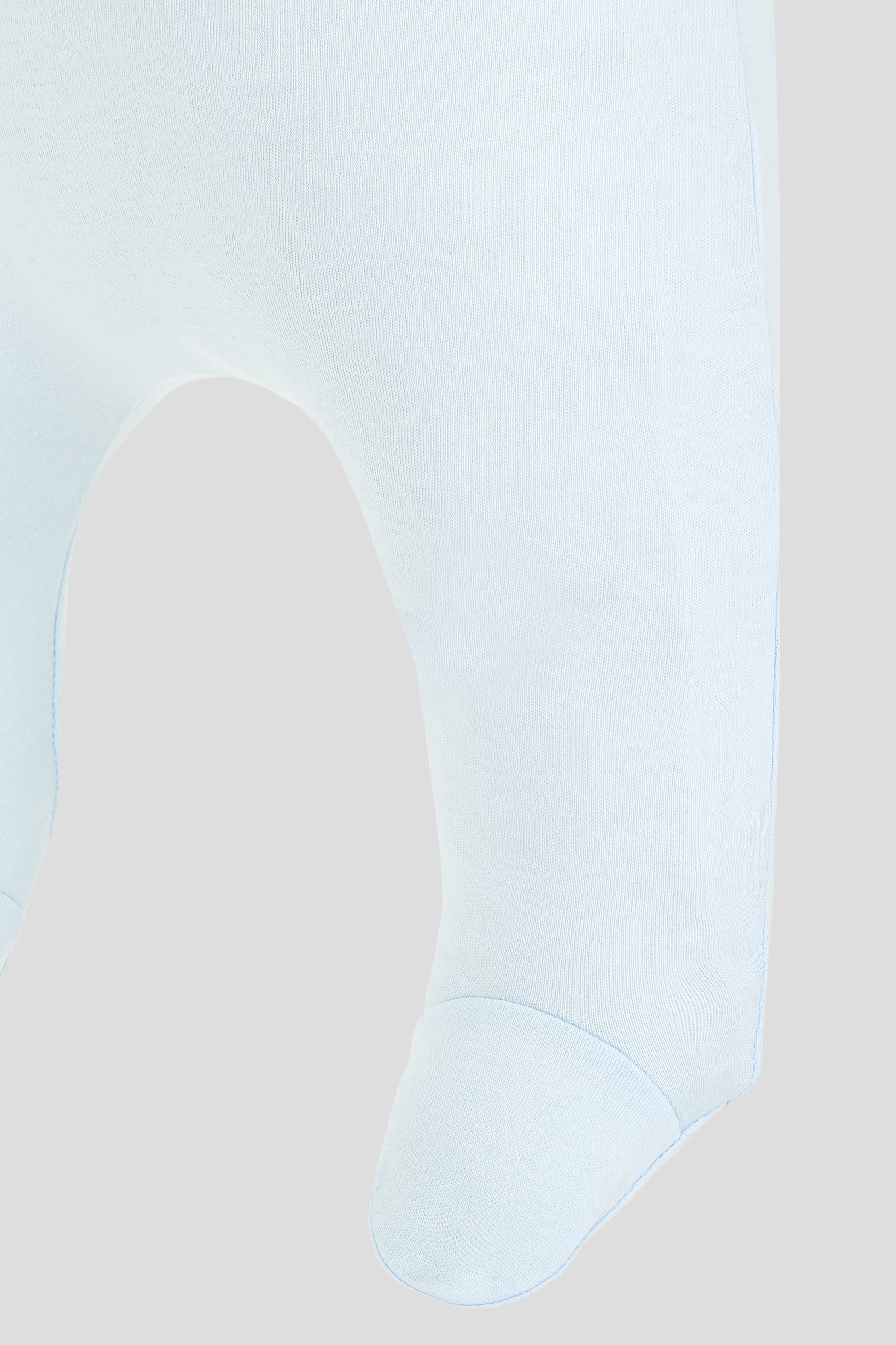 A set of a bodysuit and crawlers, including a cap, for a boy will become one of the child's favorite wardrobe items. The stylish color design in shades of blue is practical, and the long sleeves of the bodysuit prevent the baby from getting cold in a cool room or during a walk. The tie-up cap made of knit fabric is comfortable for the baby. Natural cotton is exceptionally pleasant for sensitive baby skin.
