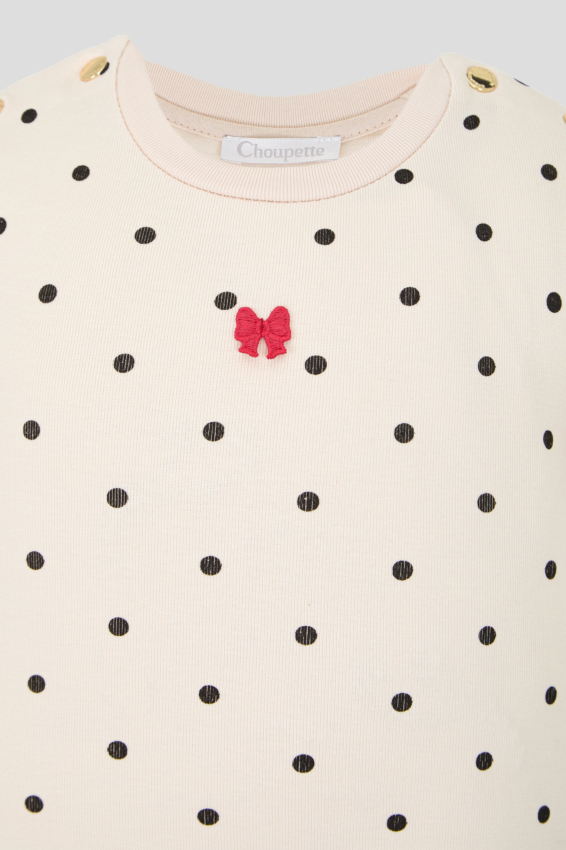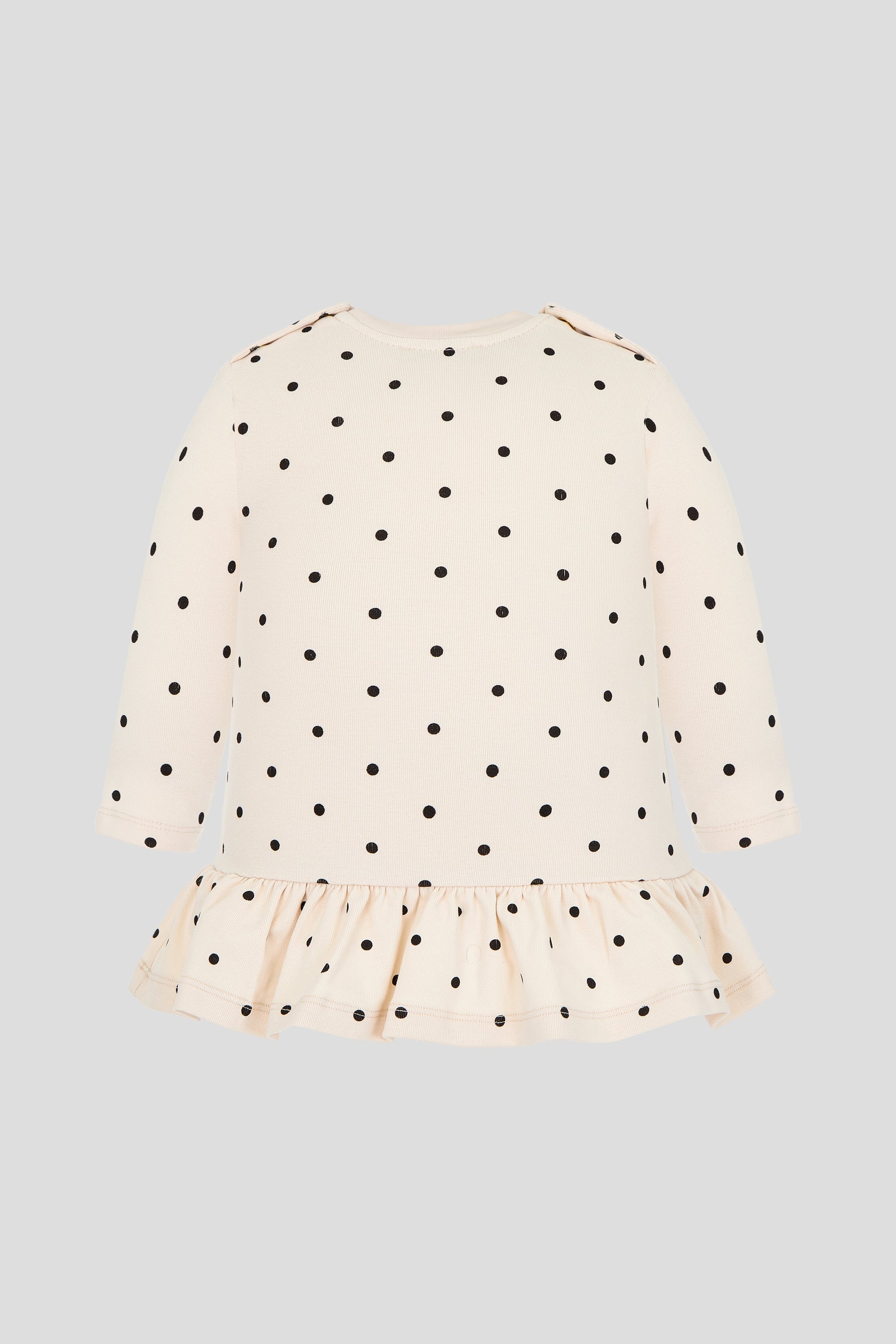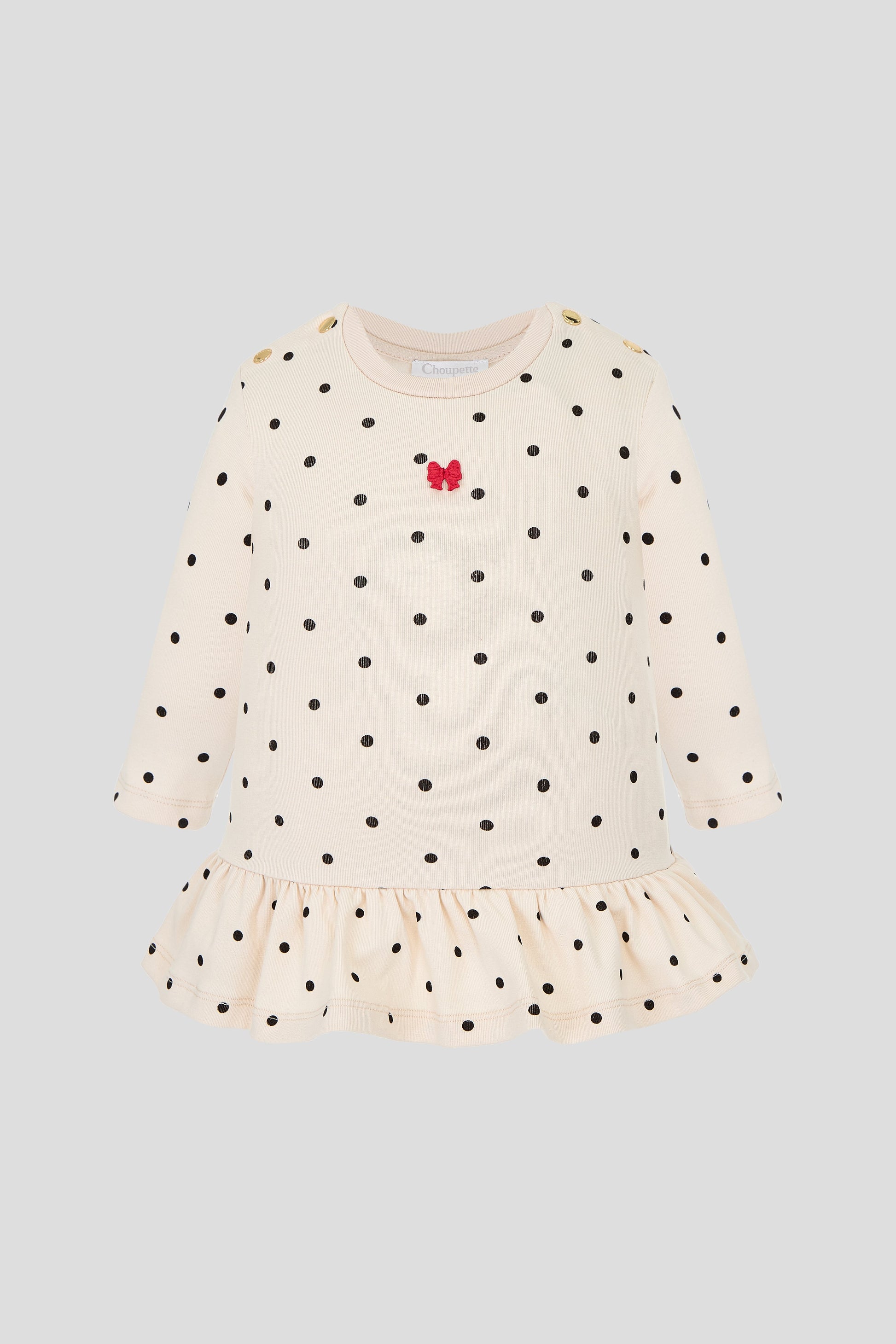 This stylish cut dress features a delicate dotted pattern on soft milky cotton fabric, designed specifically for baby girls. Its breathable material ensures comfort while offering a refined look that’s perfect for any occasion. The elegant design combines simplicity with charm, making it a timeless addition to your little one’s wardrobe.