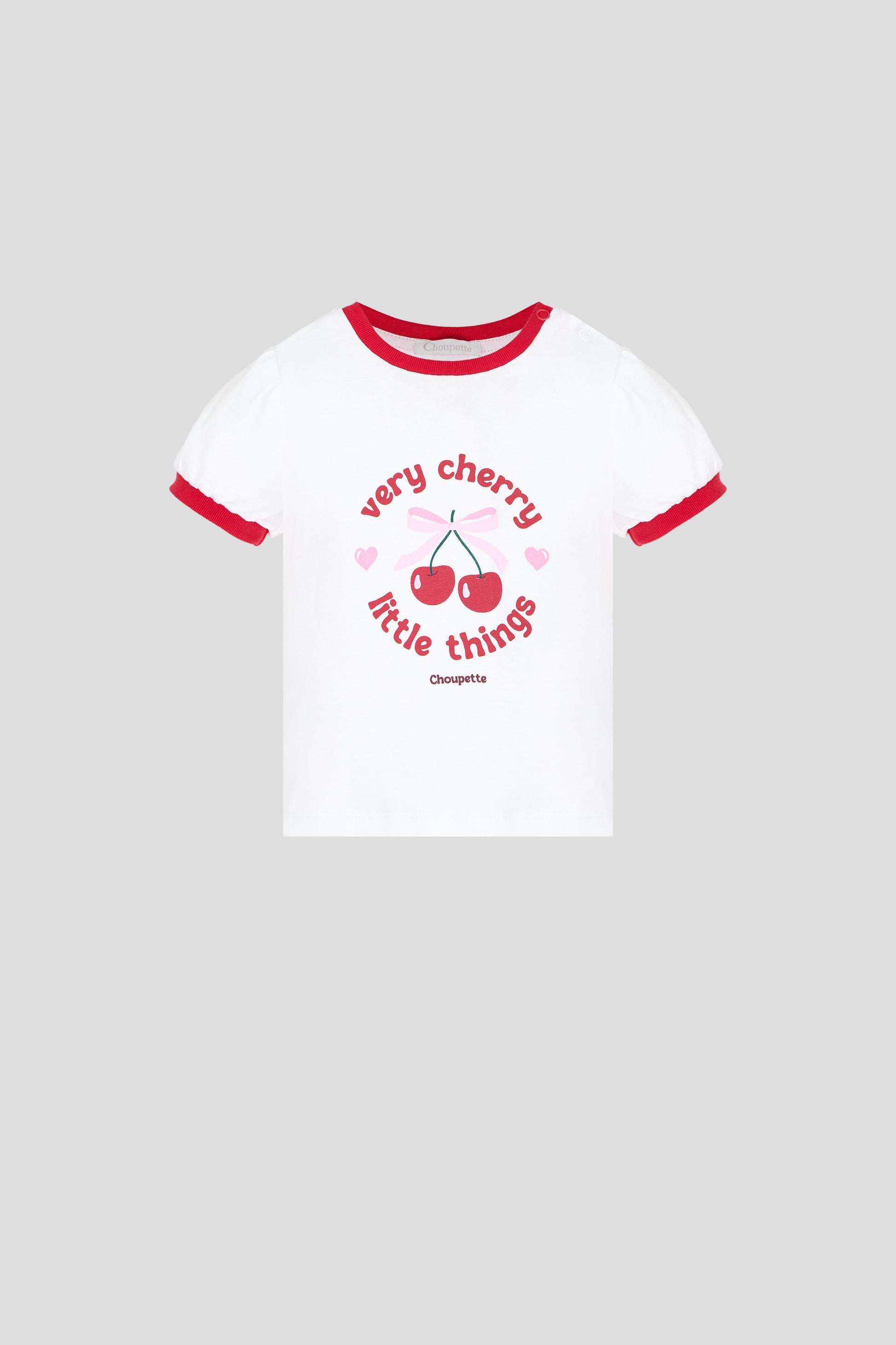Crafted from natural cotton, this Cherry T-shirt combines softness with breathability, ensuring gentle comfort for baby girls. The delicate cherry print adds a subtle, stylish touch while maintaining a refined simplicity. Ideal for everyday wear, this tee supports sensitive skin and offers easy movement, making it both practical and elegant.