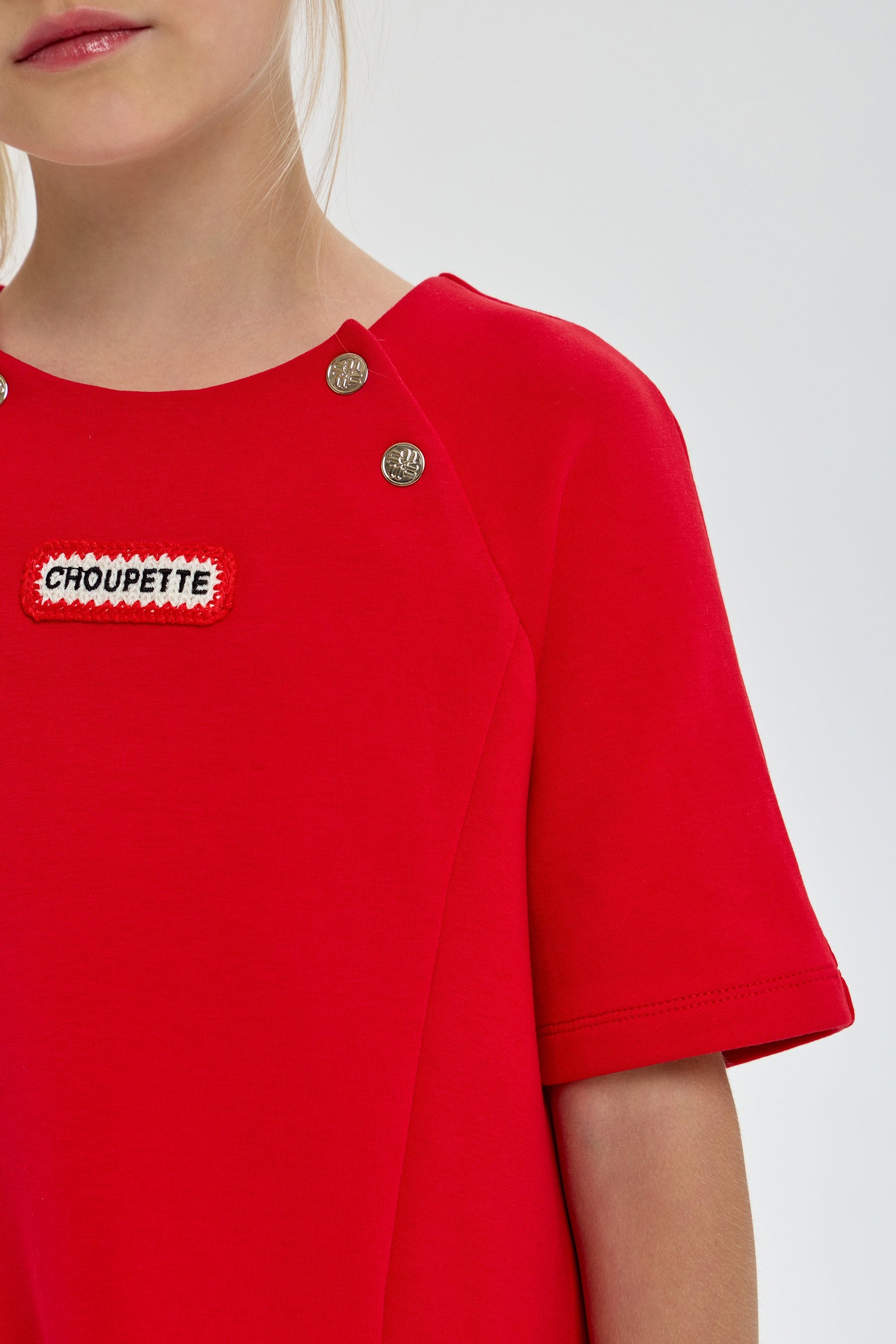 Crafted from soft jersey fabric, this elegant dress offers a refined silhouette with its stylish cut, perfectly suited for girls who appreciate subtle sophistication. Its comfortable fit ensures ease of movement, making it ideal for both casual and special occasions. A timeless addition to any wardrobe, blending modern design with effortless grace.