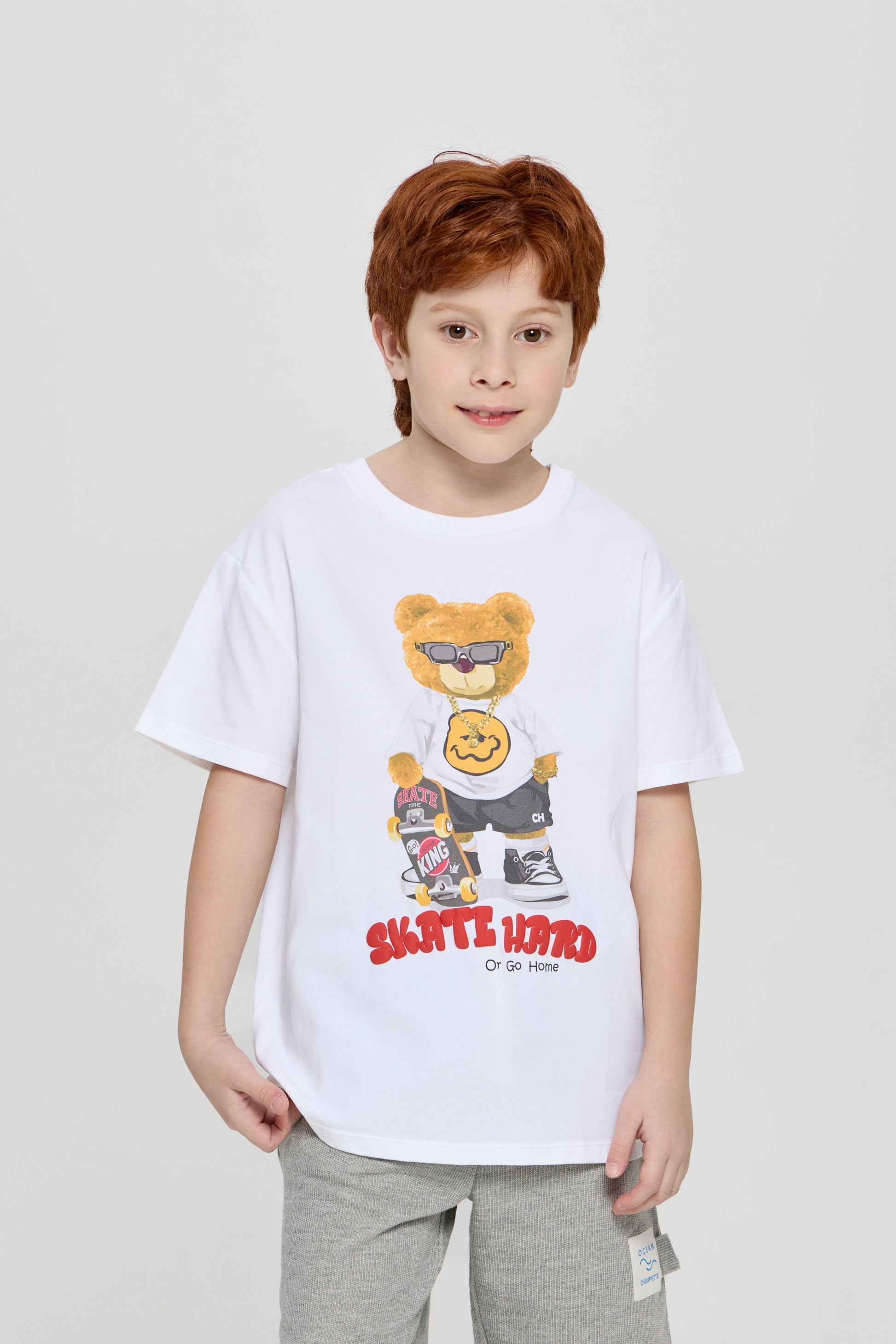 This ecru T-Shirt is perfect for the playful boy with its teddy bear print. Made from comfortable material, it's ideal for everyday wear. Get ready to bear hug this quirky tee!
