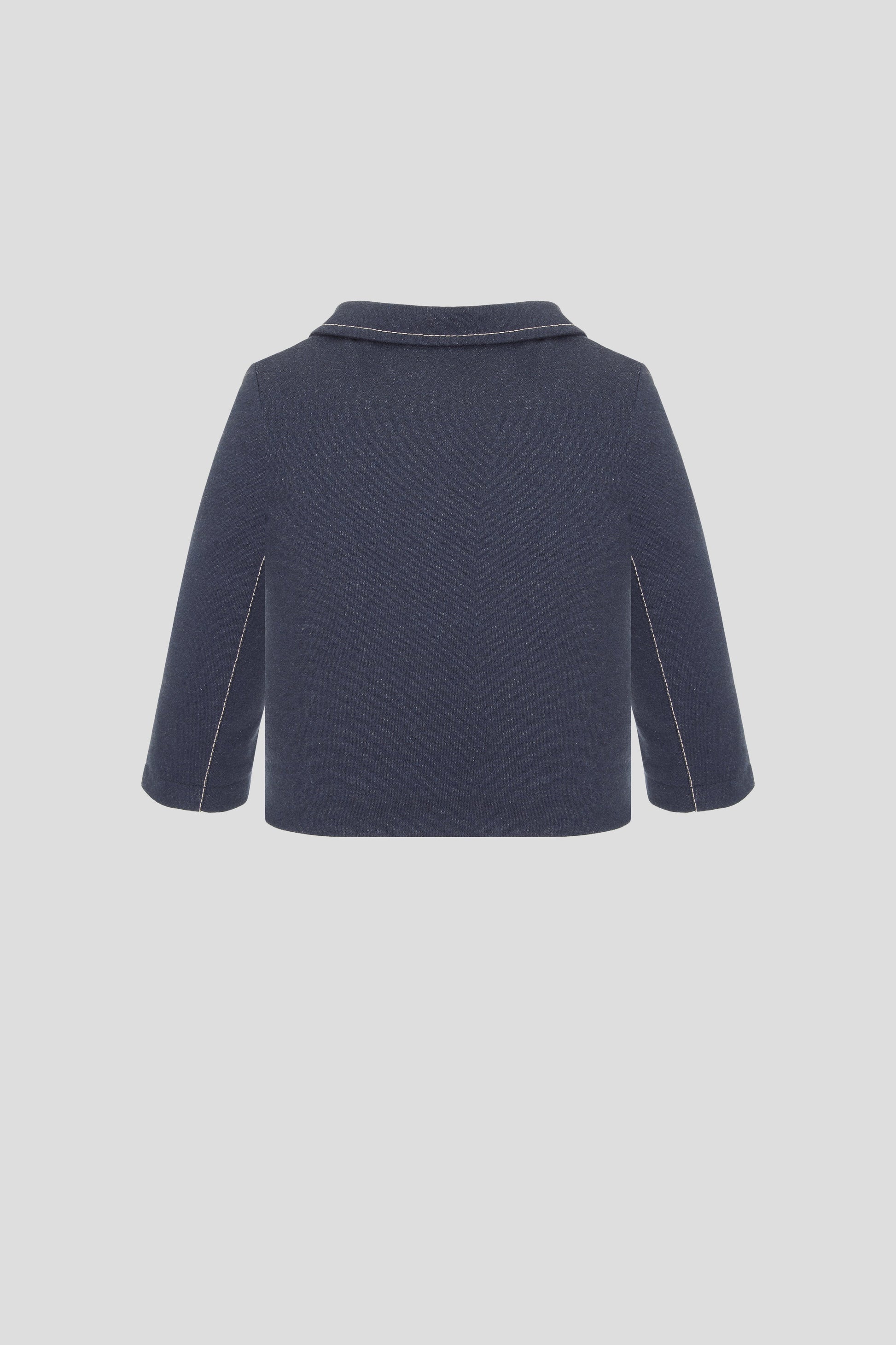 A stylish jacket is an ideal outfit for a little gentleman. The model has a classic cut and a basic denim color. The English collar and fake pockets emphasize the severity of the child's image and evoke
