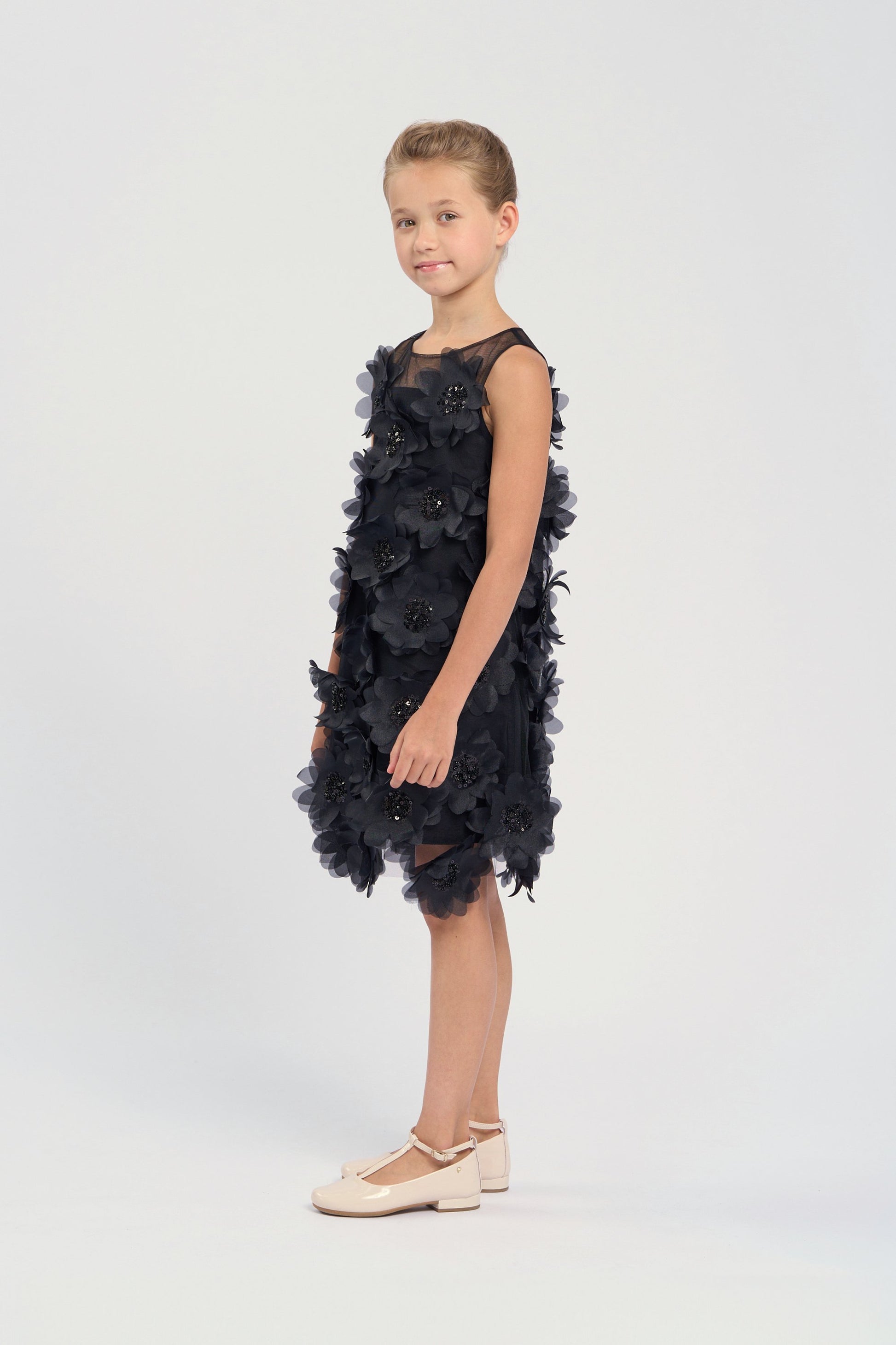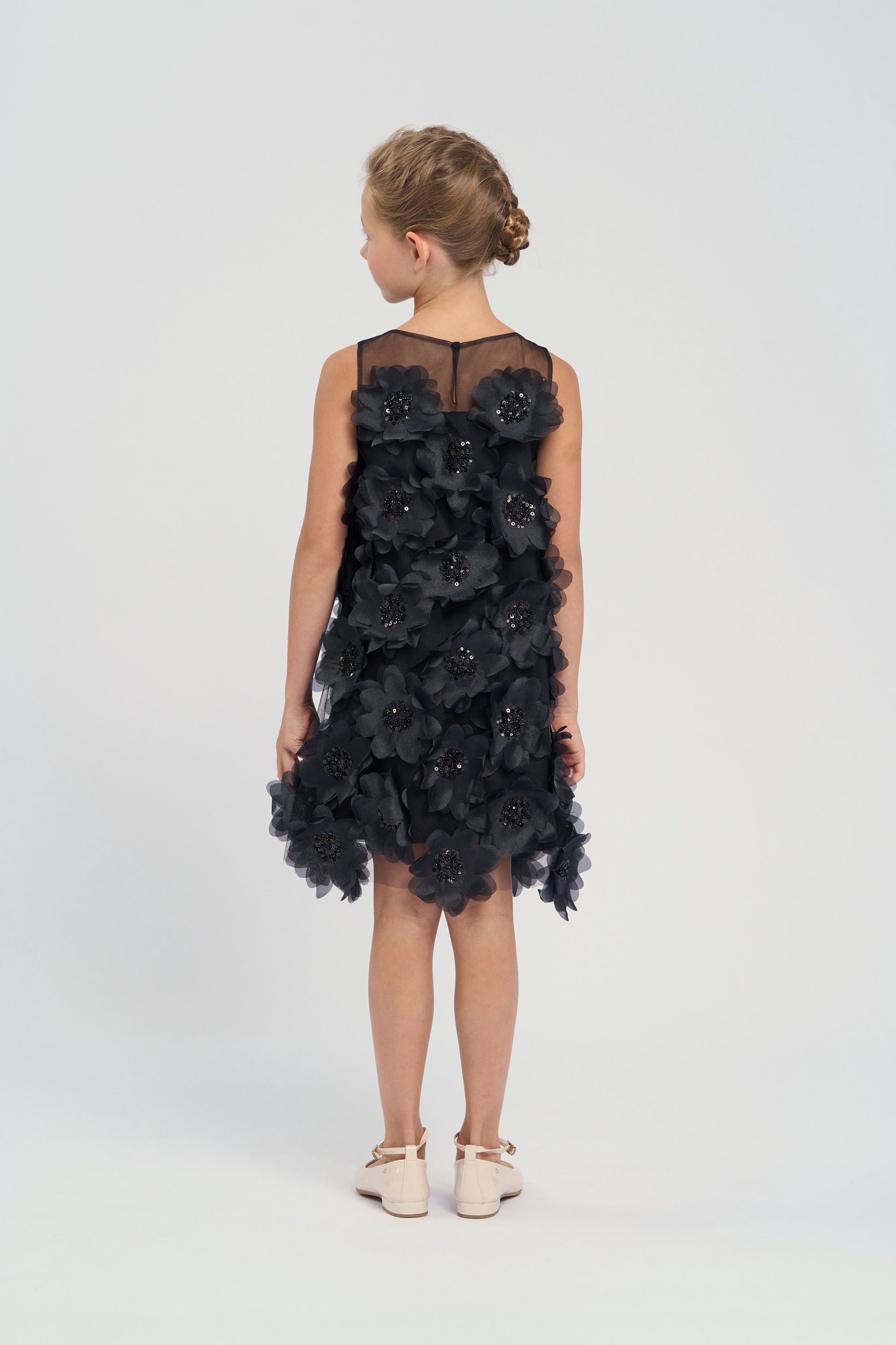 Introducing the elegant Flowers Dress in classic black. Made with a delicate flower pattern, this dress exudes timeless beauty. Crafted with high-quality materials and an eye-catching color, it's perfect for any occasion. Add this dress to your wardrobe for a touch of sophistication.