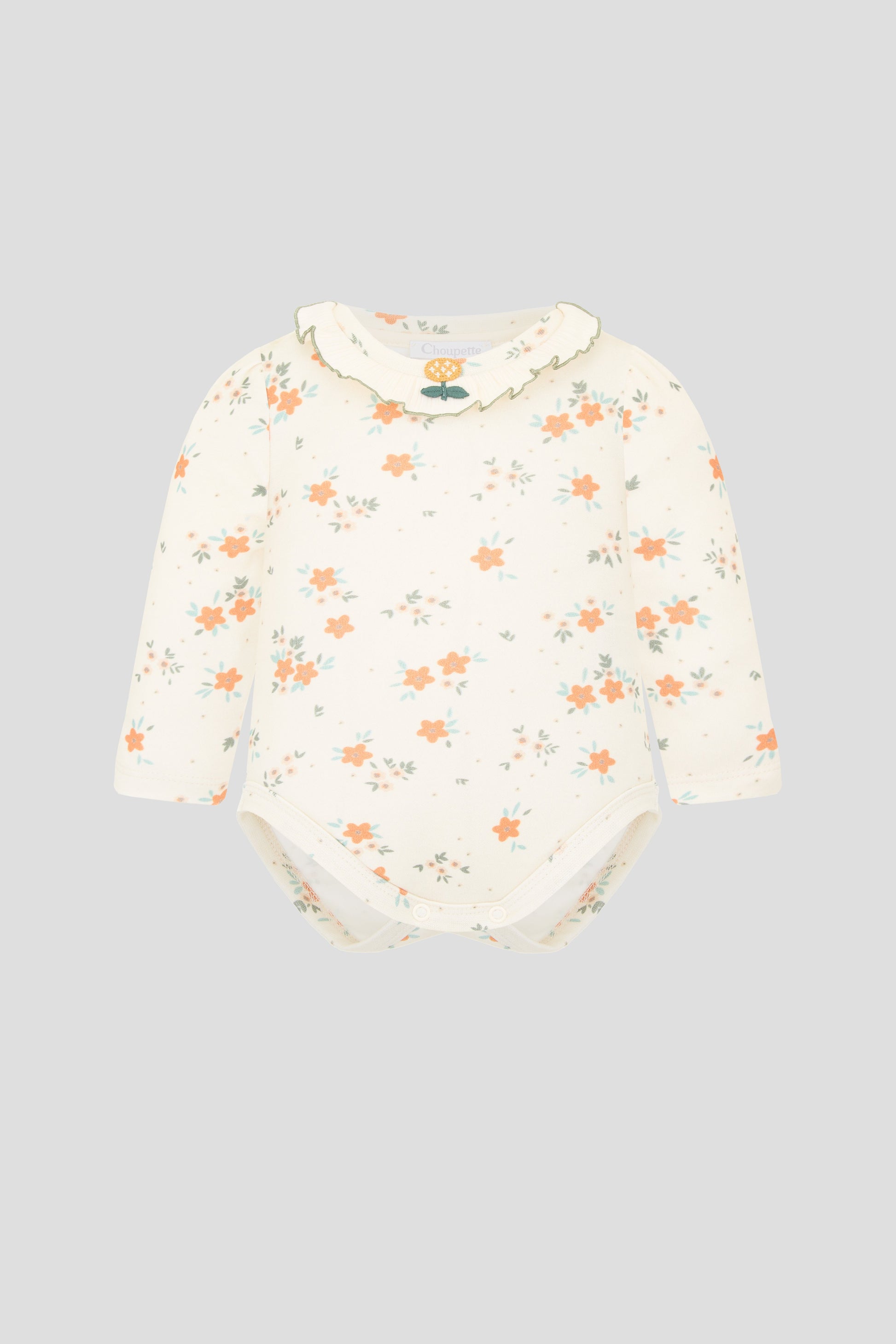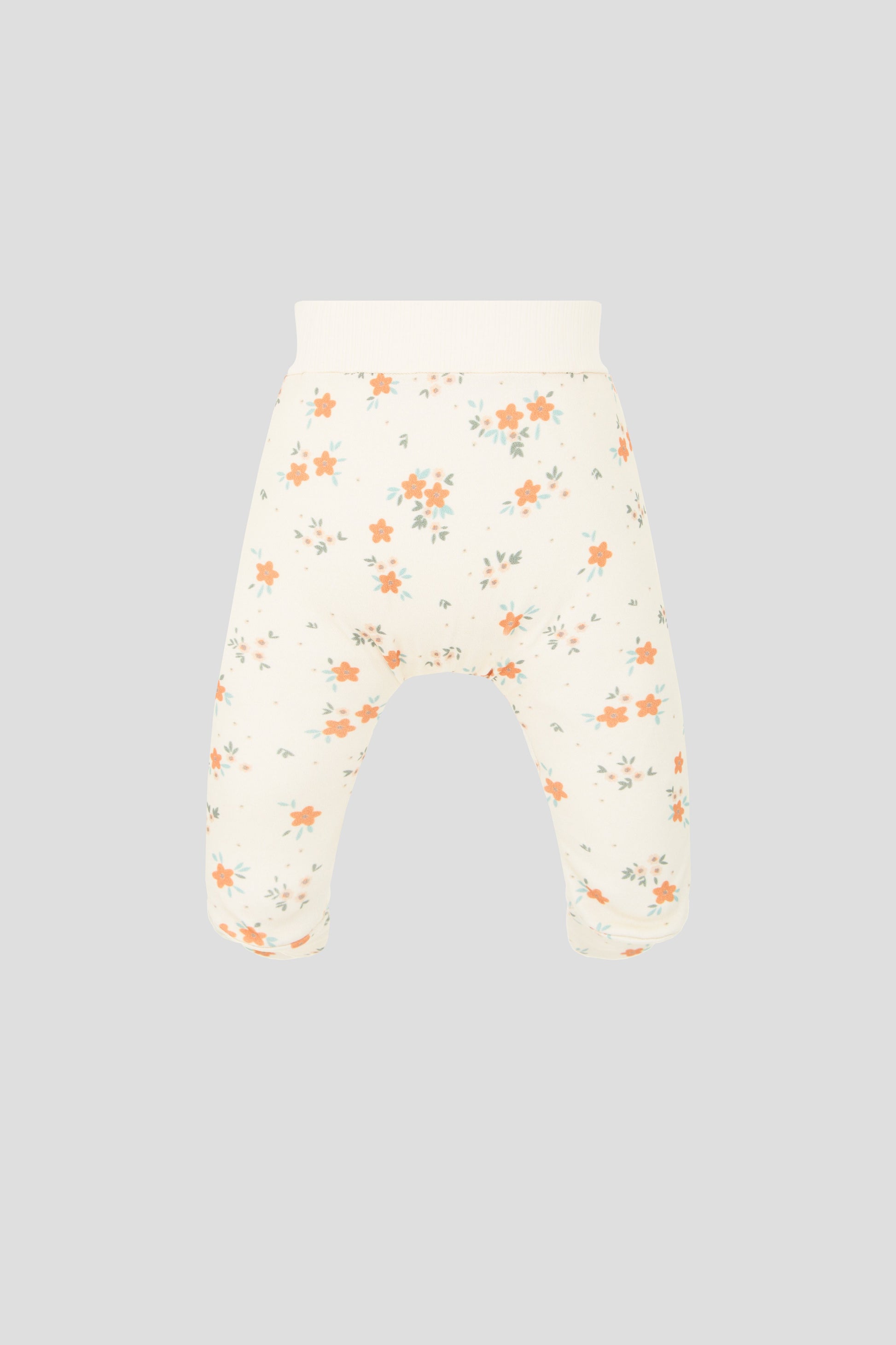 This newborn floral set includes an AOP bodysuit, footed pants, and bonnet in a beautiful ecru color. The all over printed design adds a touch of elegance and charm, making it perfect for a special occasion or everyday wear. The set provides comfort and style for your little one.