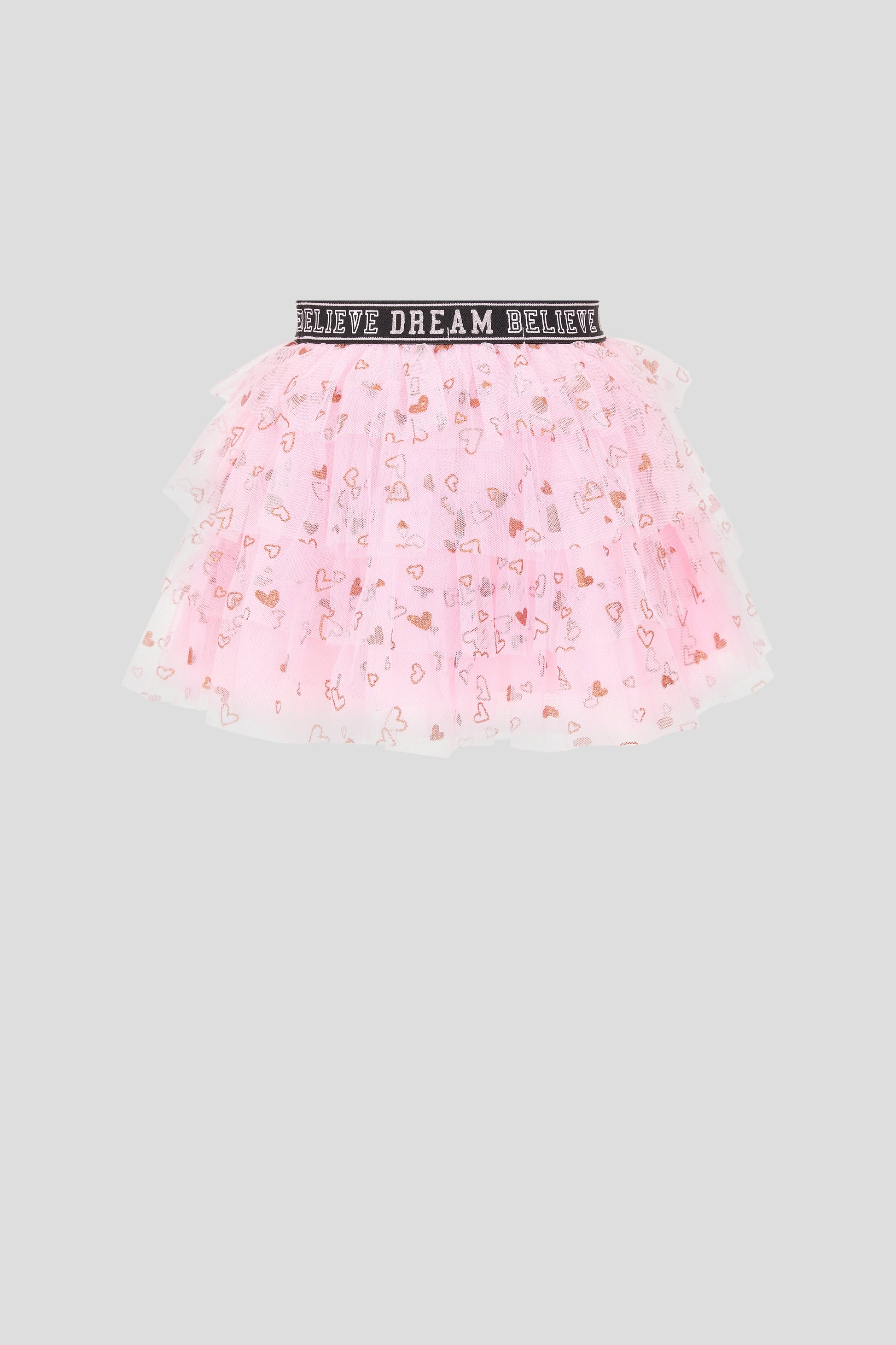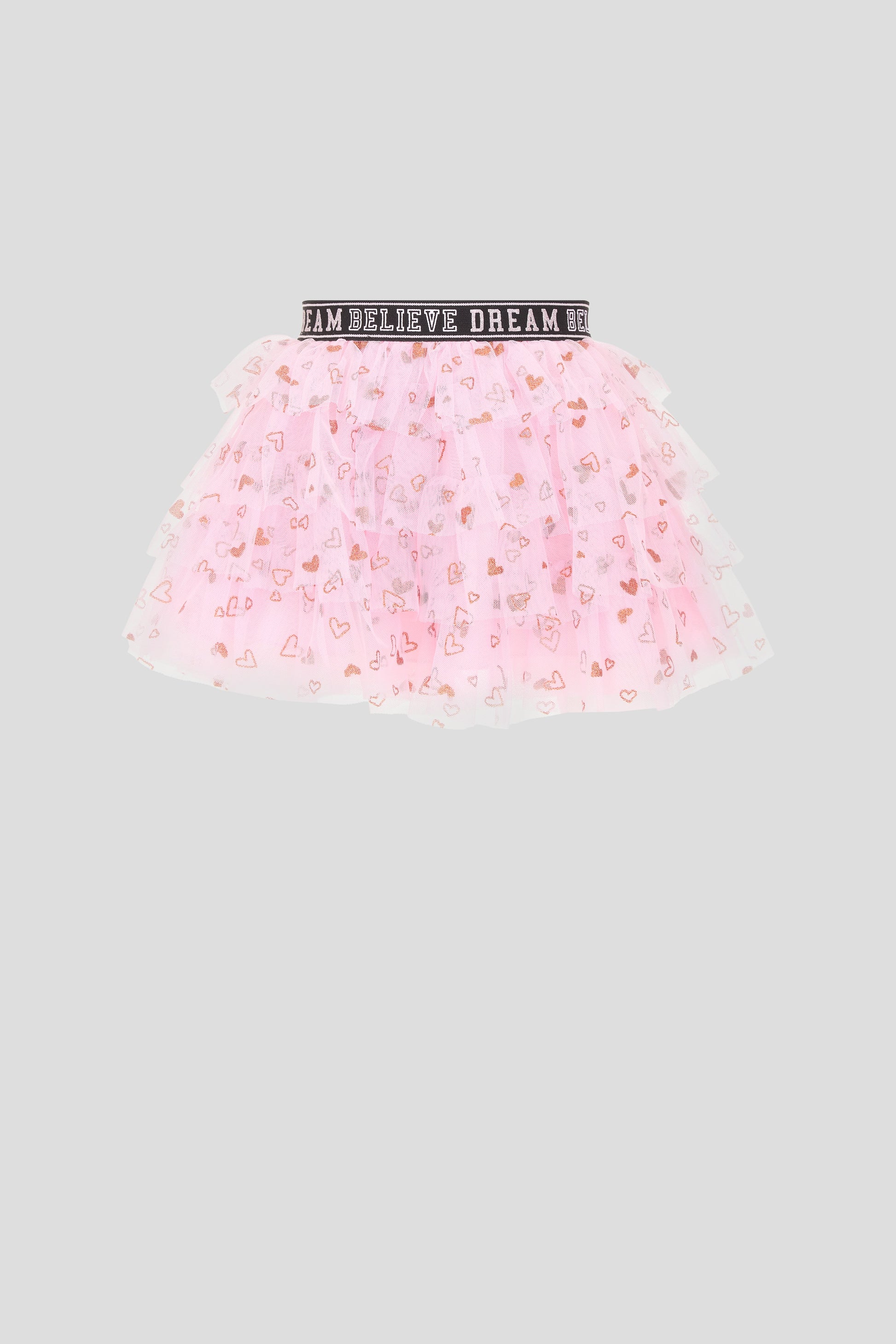A smart skirt for a girl made of translucent fabric. Airy flounces give it splendor. The elastic waistband is decorated with a text print. The lining is made of natural cotton, which provides the child with comfort, eliminates irritation. The skirt will be a great choice for little fashionistas. It goes well with any top.