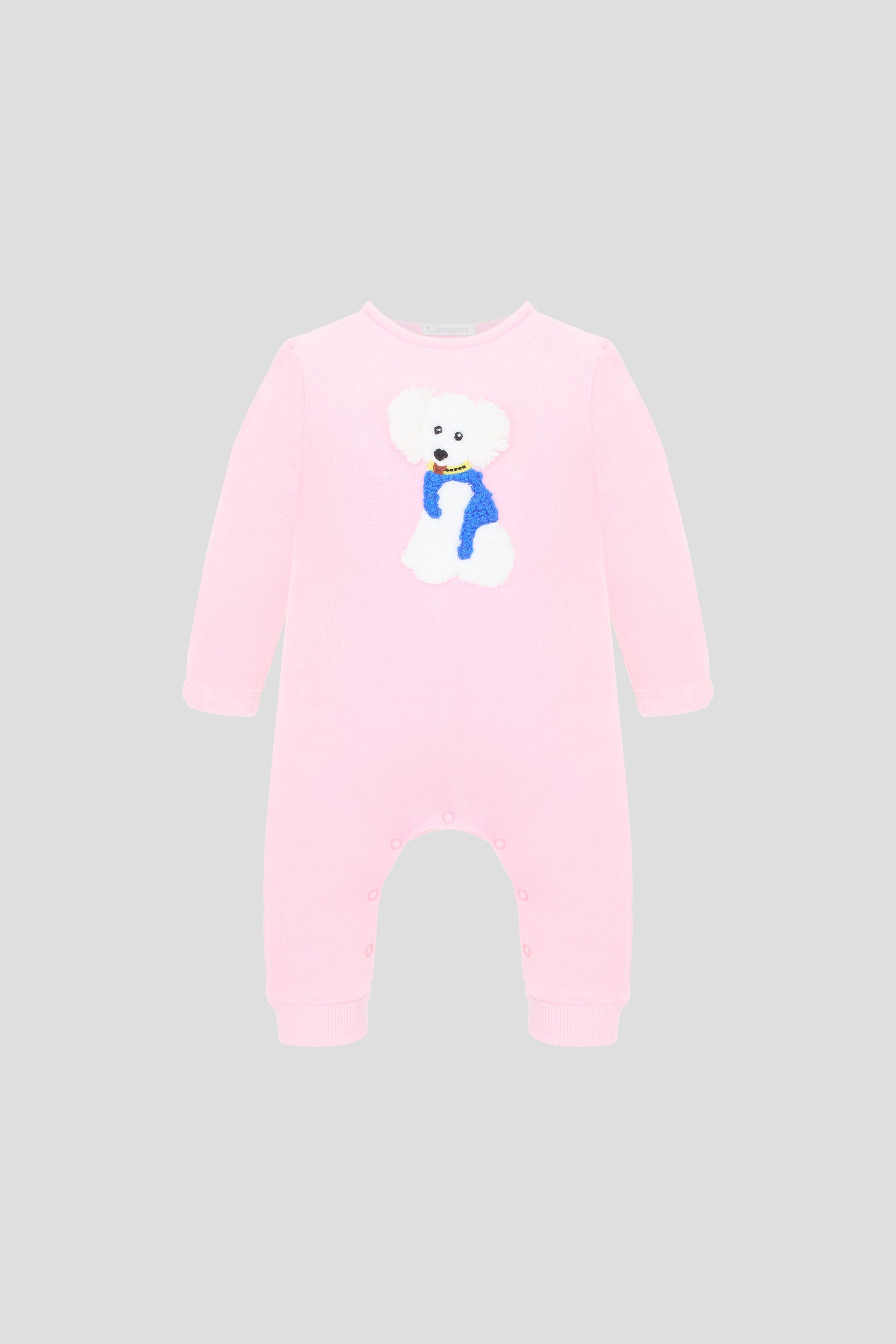 A pink velour jumpsuit with a voluminous decor in the form of a cute puppy will become a favorite item of clothing in a child's wardrobe. The model with a snap fastener is made of natural cotton. The overalls are ideal for walks in dry weather or for home use. Soft velour and a funny patch make this overalls comfortable and interesting for the child.