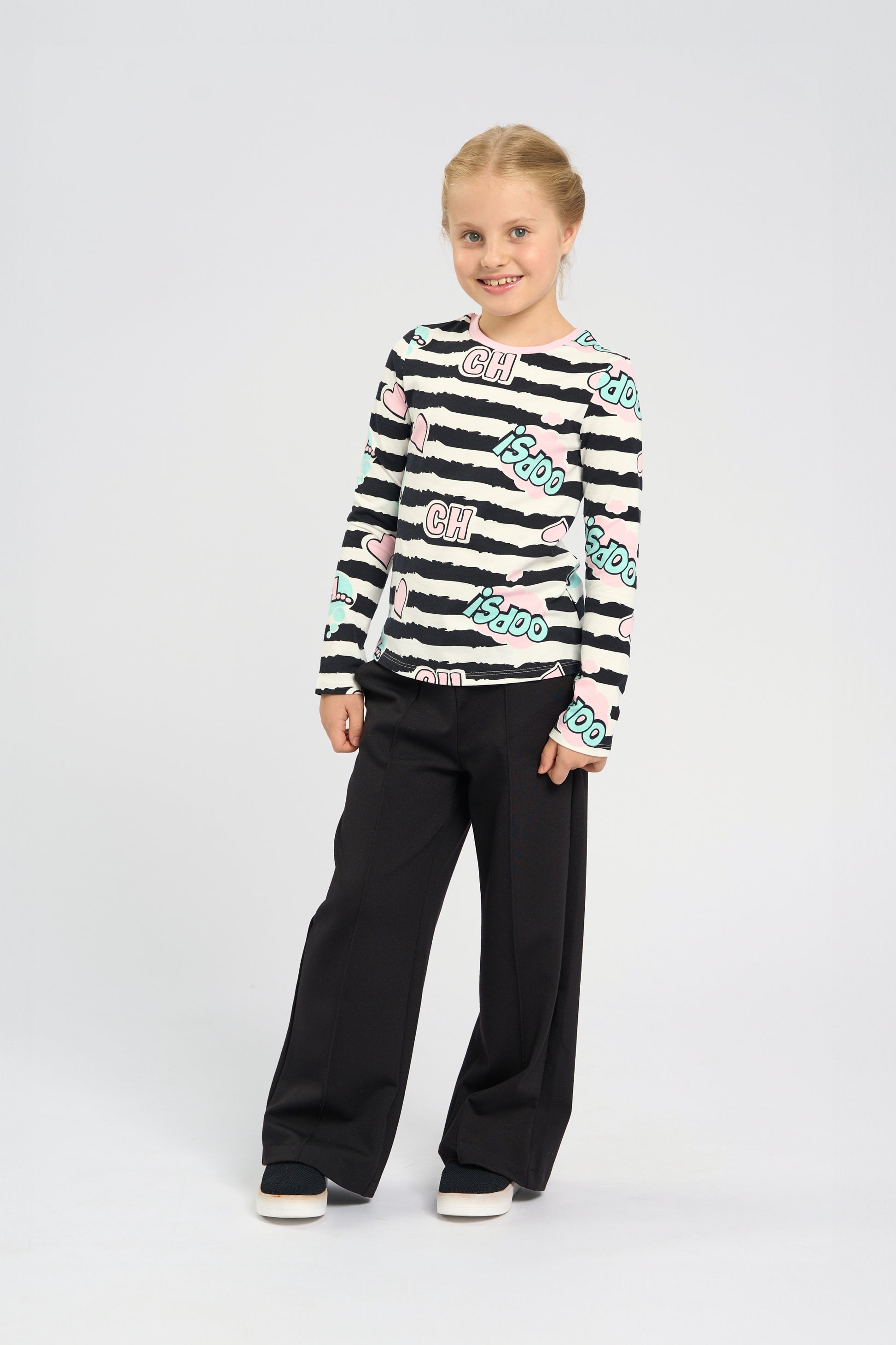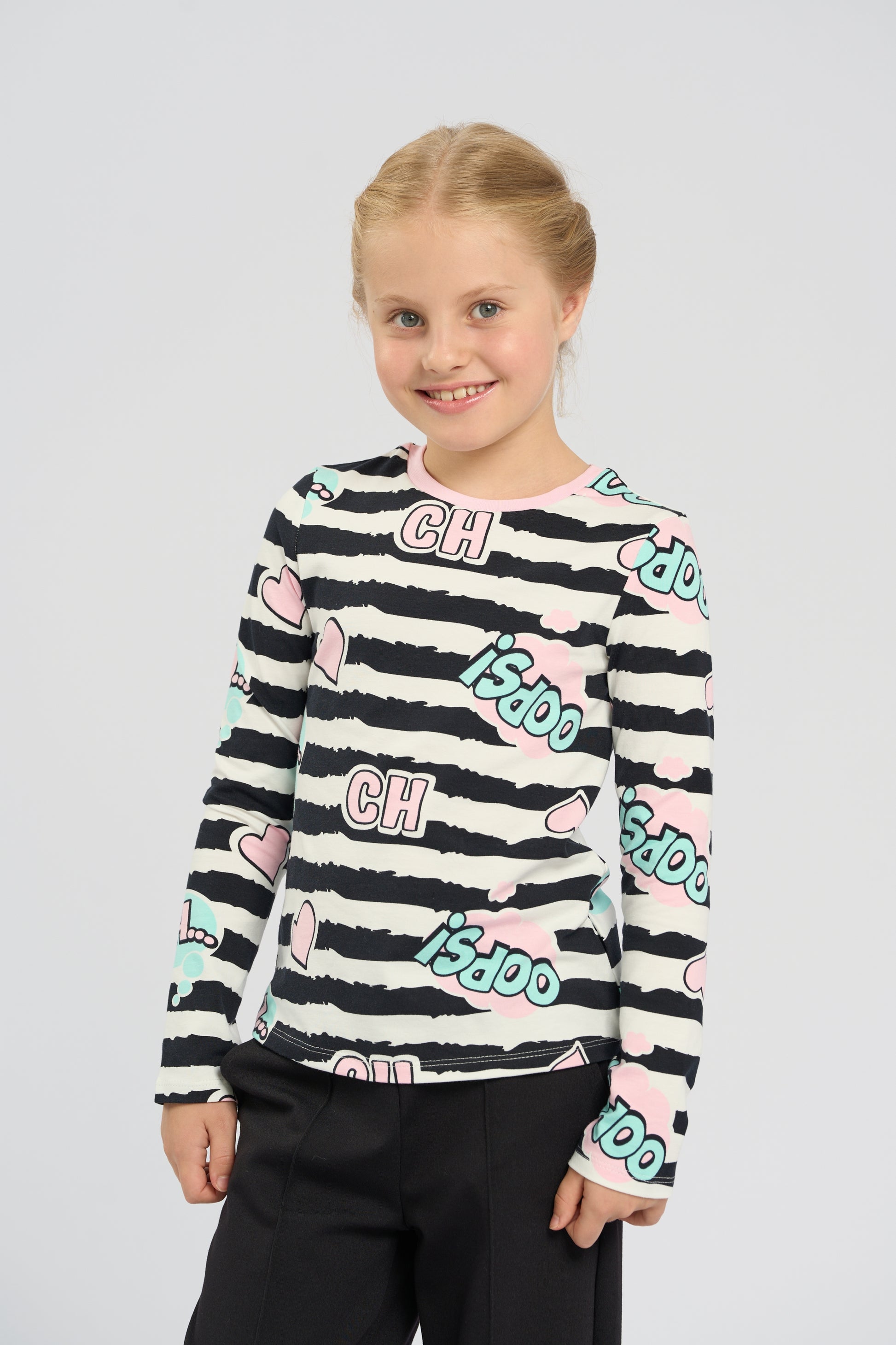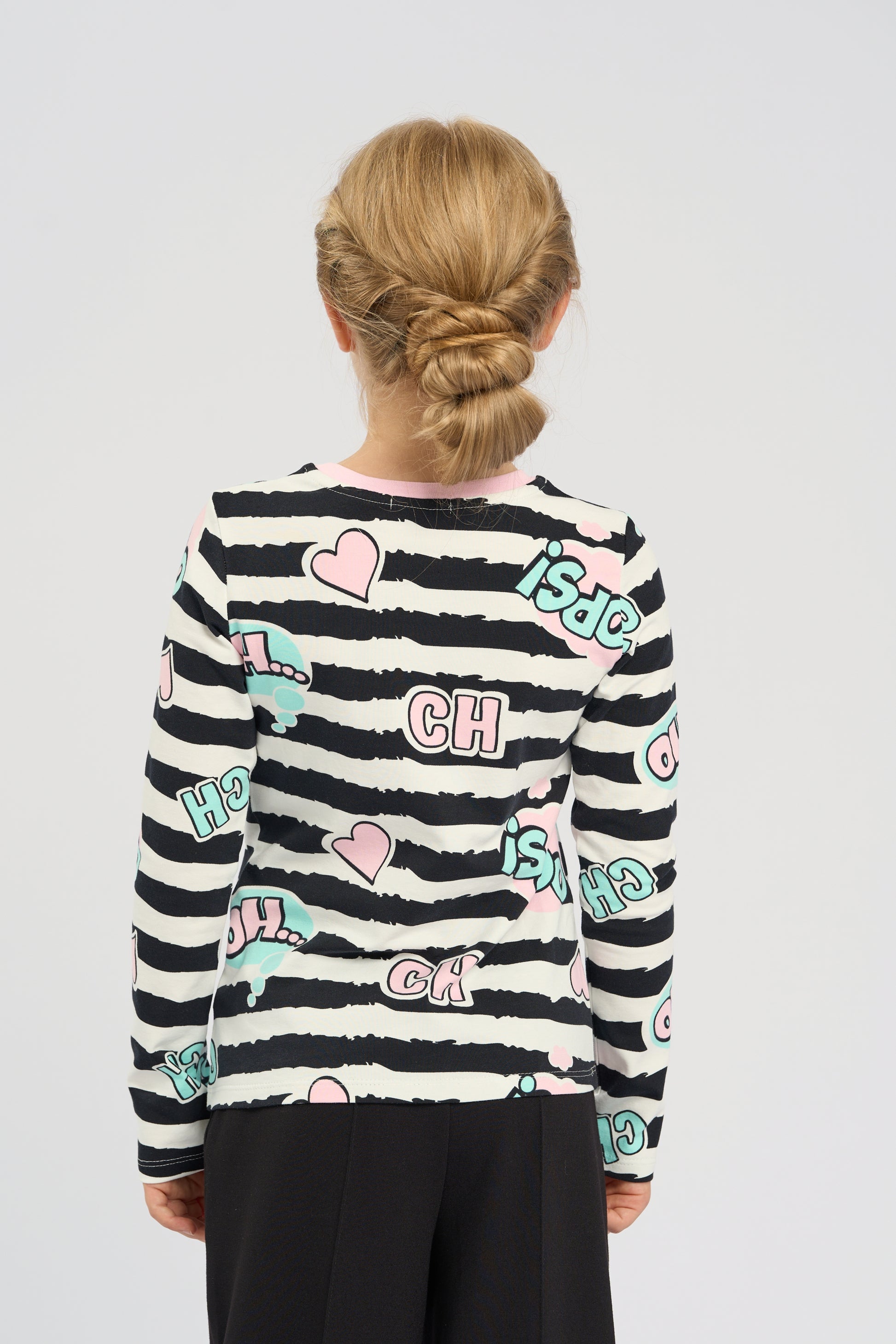 Expertly designed for the stylish girl, the LS stripe tee features a bold, branded print all over in timeless black and white. Made with quality materials, this tee ensures comfort and versatility for all-day wear. Perfect for adding a touch of sophistication to any outfit.