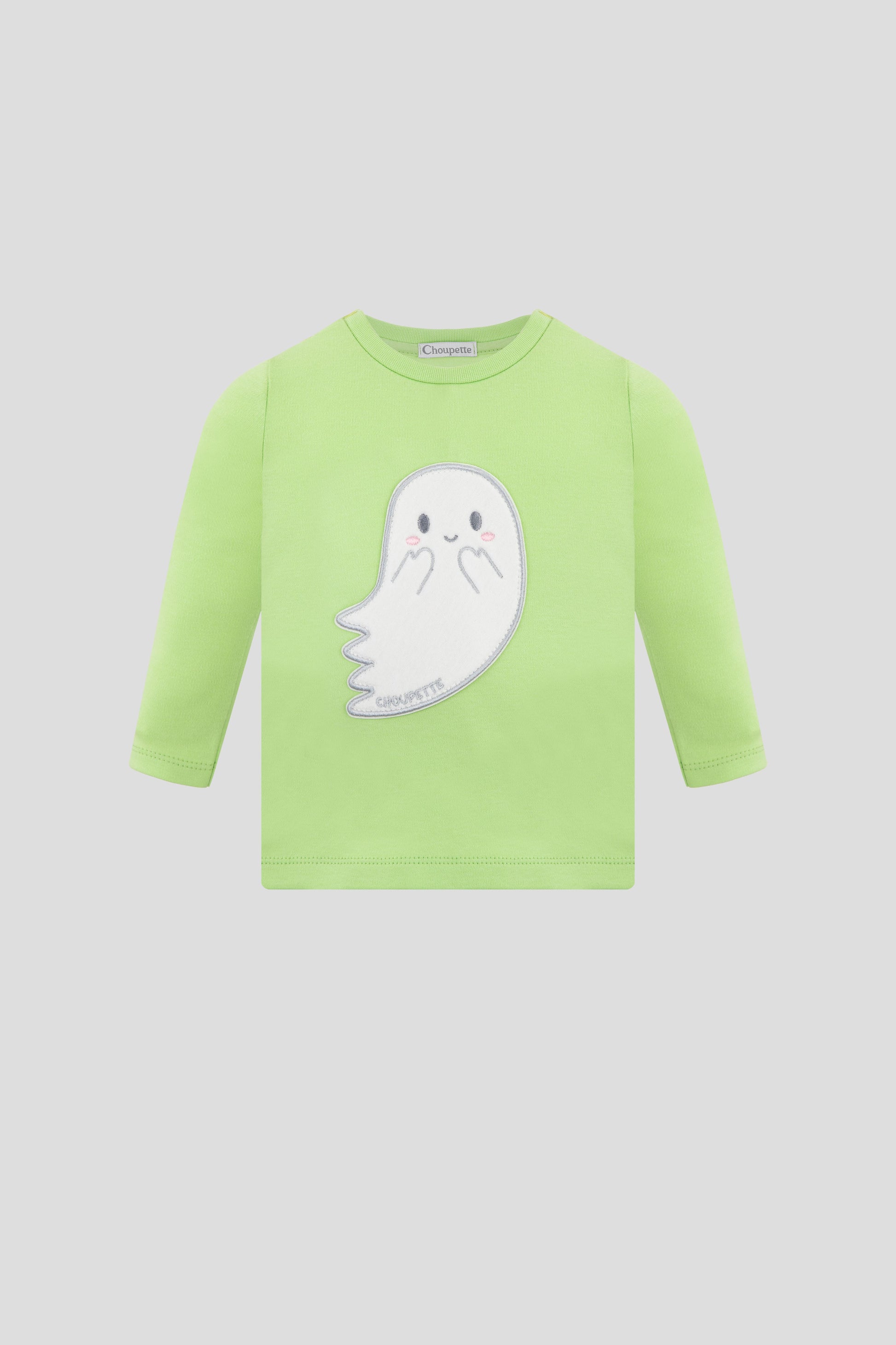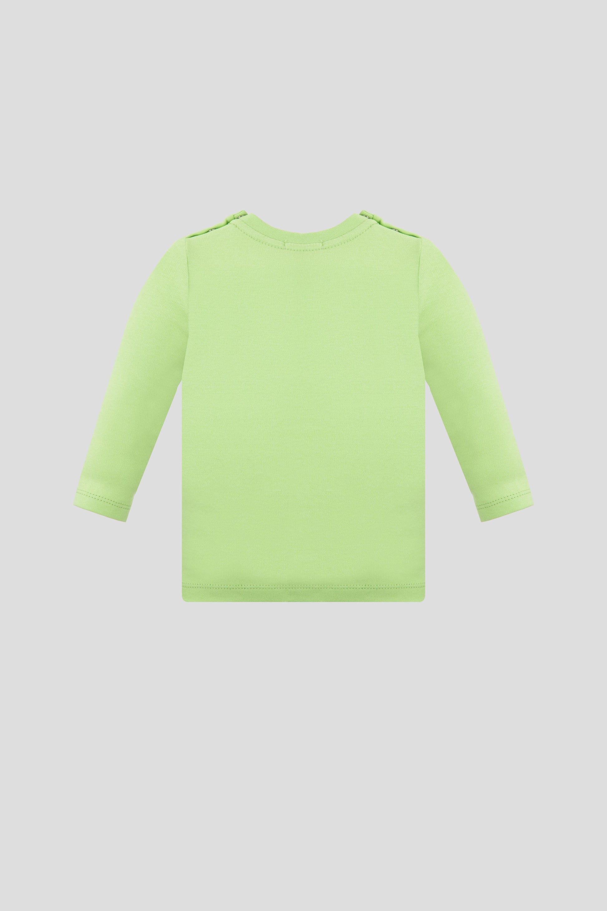 -Our designers often use the trends of the last century in their works - for that time, bold colors and creative inscriptions in foreign languages were relevant. A stylish short sleeves is made of natural cotton knitwear green color. The colorful branded decor on the shelf will attract the attention of a small fashionista!