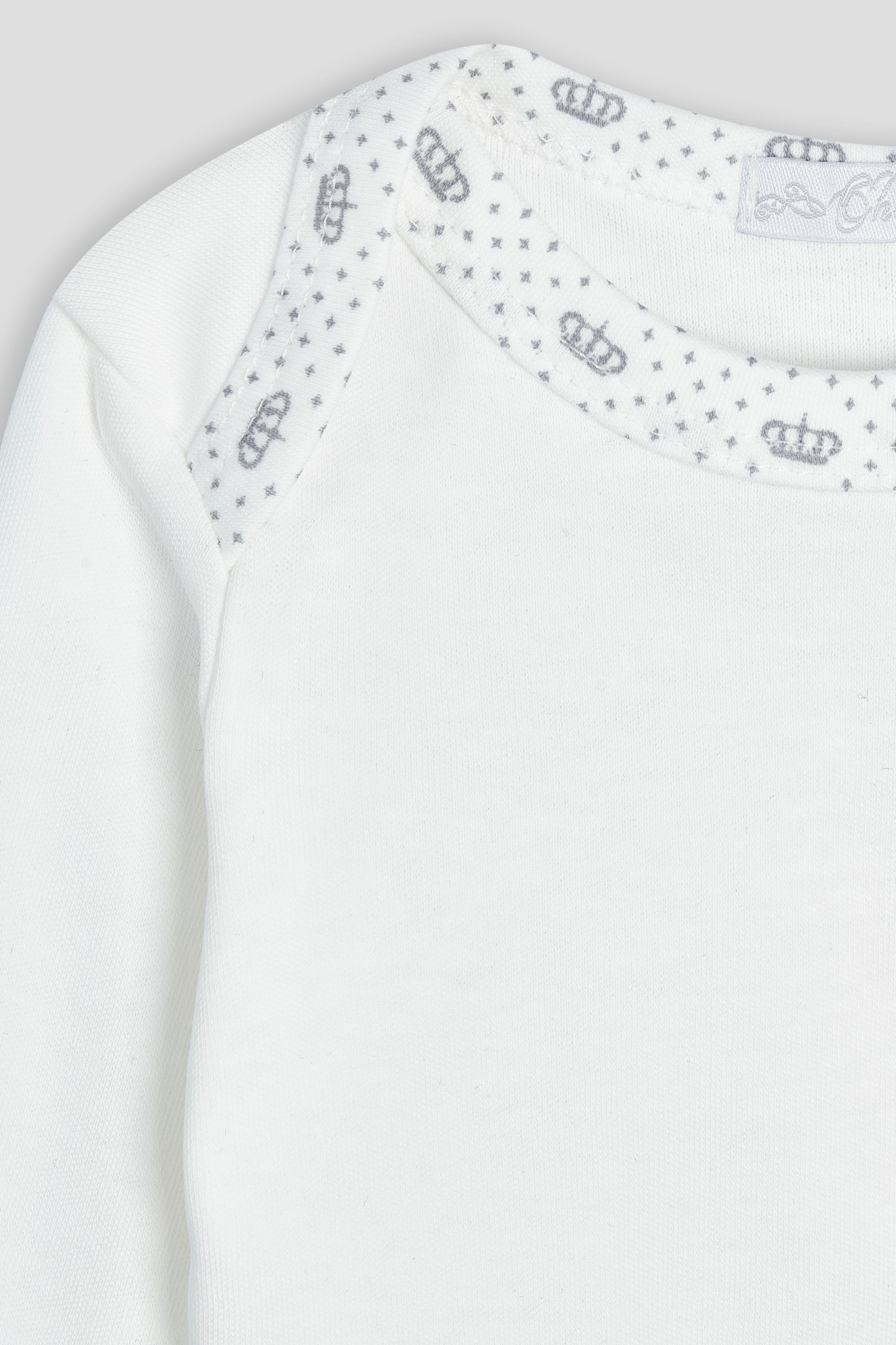 This ecru printed set bodysuit and pants for baby is adorned with small grey crowns, creating a cozy and stylish look for any day. Made with soft fabric, this set provides comfort for your little one. Perfect for any occasion, this set is a must-have for your baby's wardrobe.