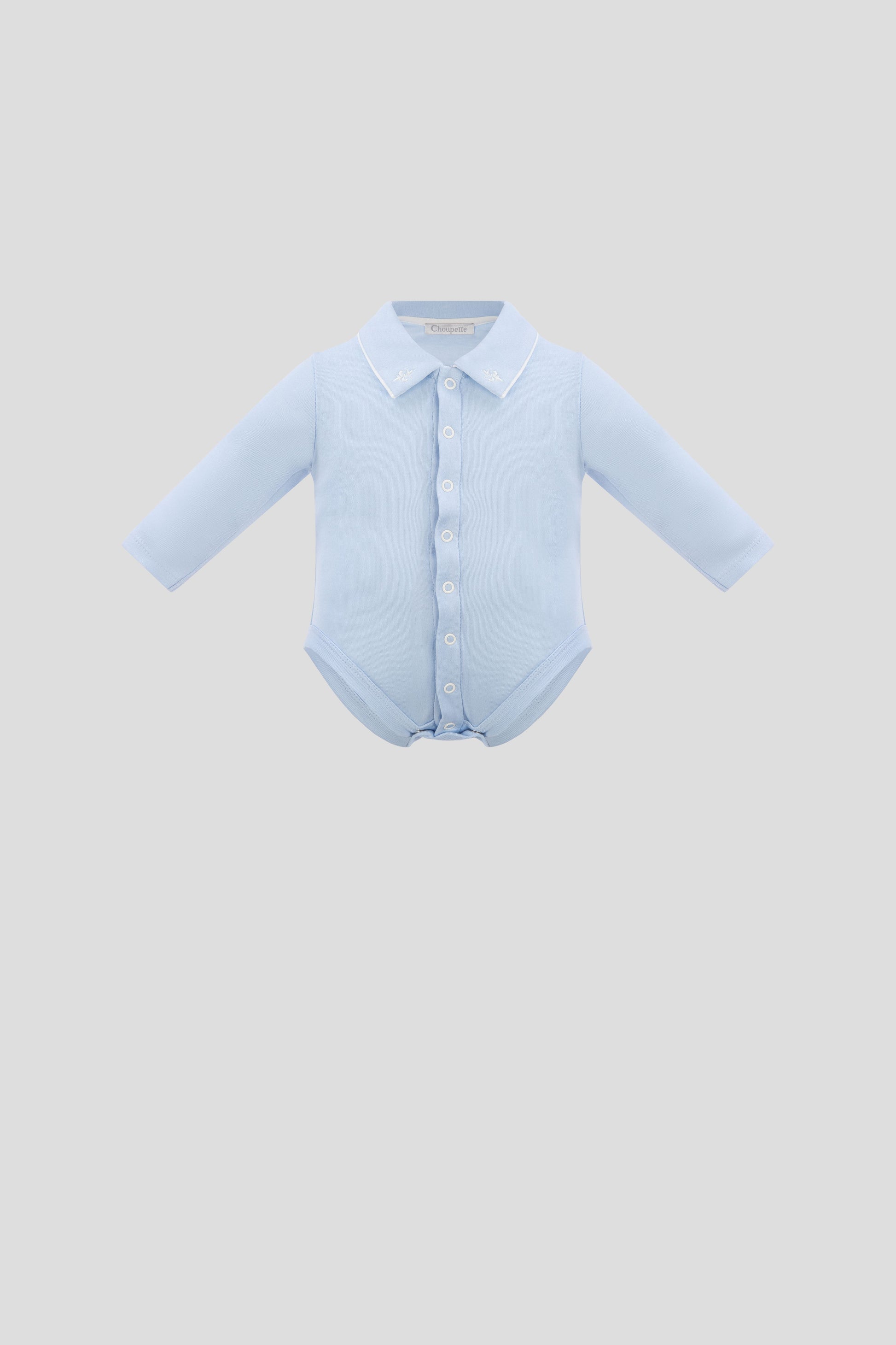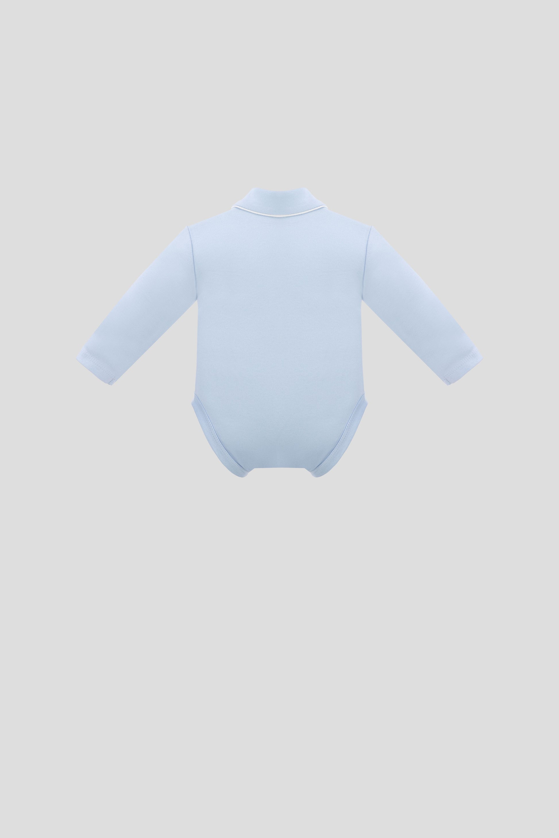 A set of a bodysuit and crawlers, including a cap, for a boy will become one of the child's favorite wardrobe items. The stylish color design in shades of blue is practical, and the long sleeves of the bodysuit prevent the baby from getting cold in a cool room or during a walk. The tie-up cap made of knit fabric is comfortable for the baby. Natural cotton is exceptionally pleasant for sensitive baby skin.