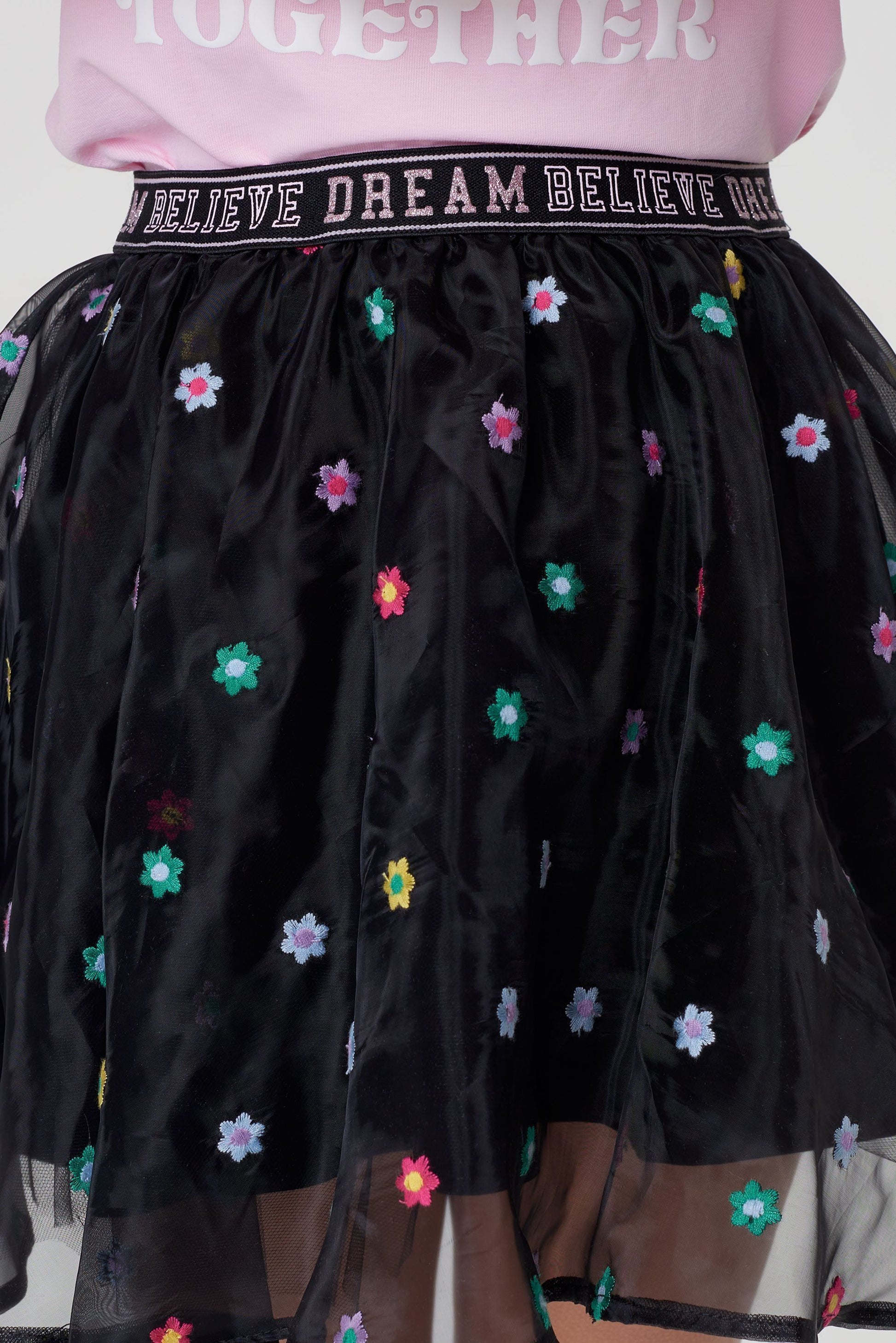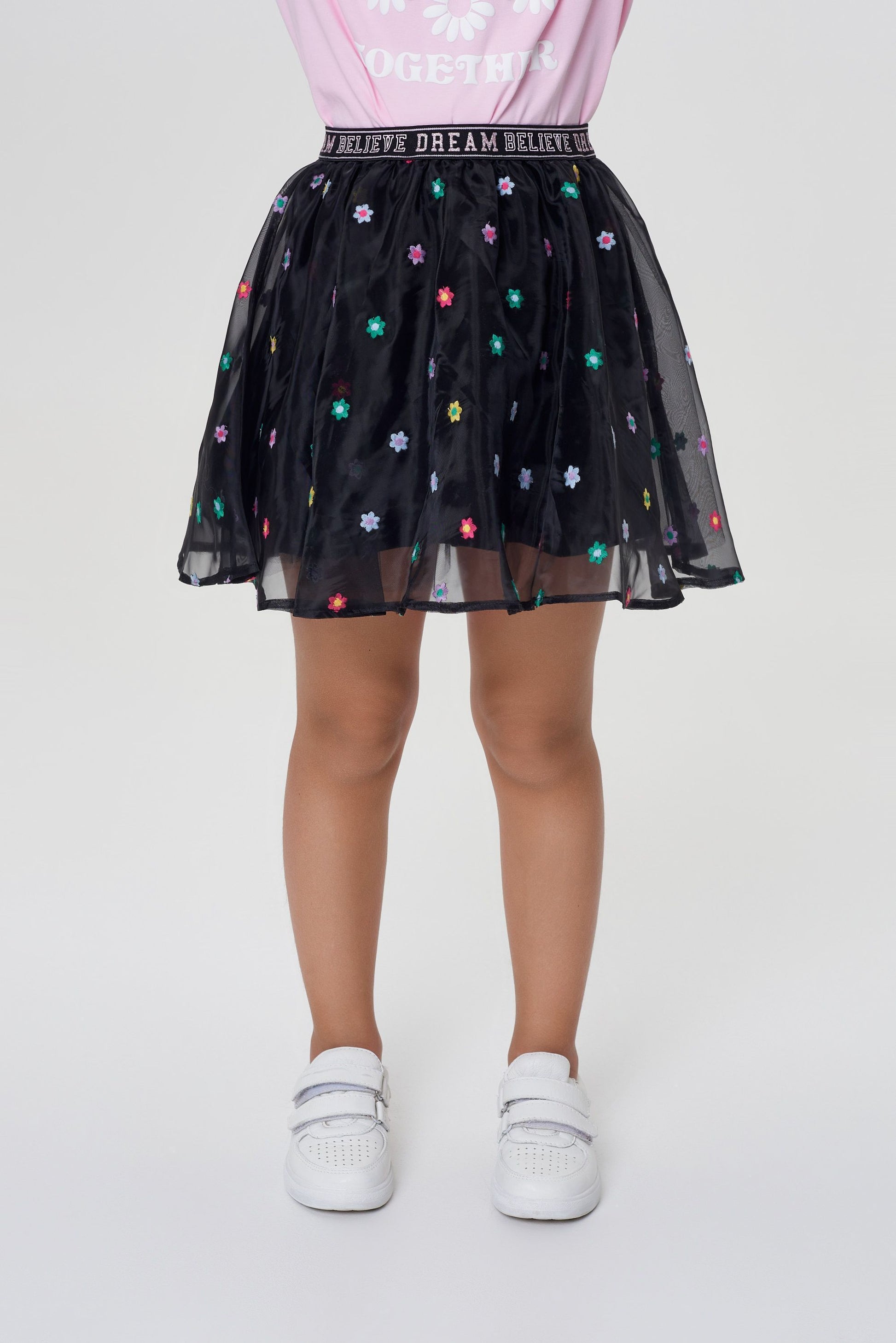 This organza skirt is designed specifically for young girls who want to find a unique style. The loose fit creates comfort and freedom of movement. The elastic waistband provides a secure fit and maximum comfort throughout the day. However, what makes this model special is the unique embroidery in the form of delicate flowers. Regardless of what event the child is going to, this skirt will certainly attract admiring glances and will become an integral part of the ideal image. The universal design of the model can be perfectly combined with a variety of tops and shoes.