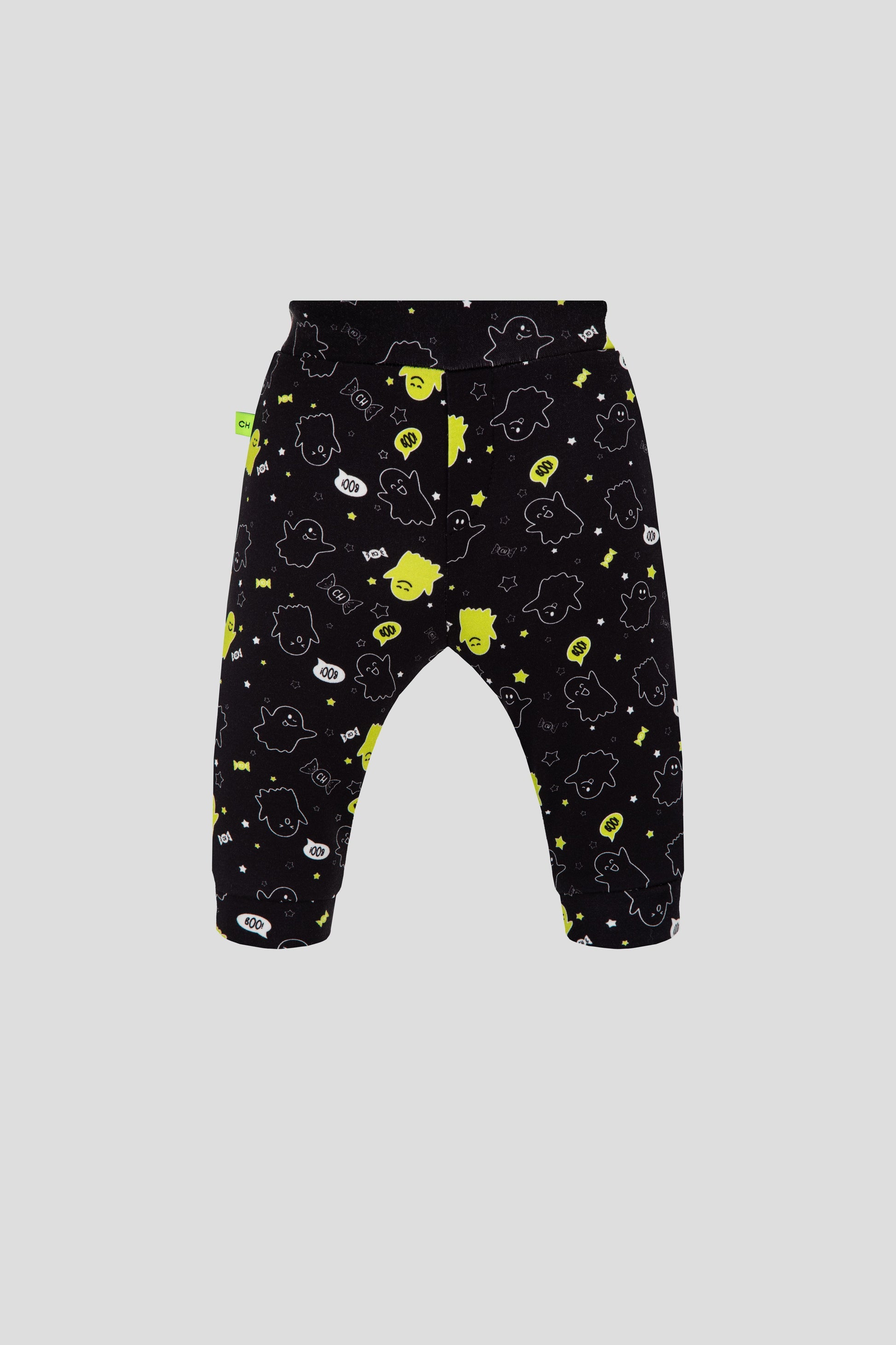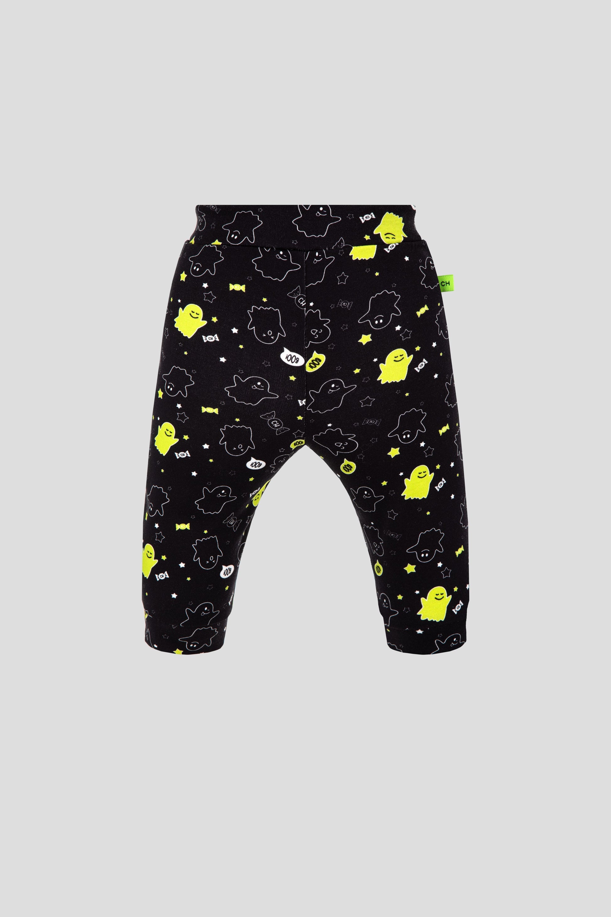 Footer pants with branded print of Phantom collection for babies. Comfortable natural cotton trousers with soft elastic band for a boy from 0 to 12 months will be useful item in any young fashionistas wordrobe.