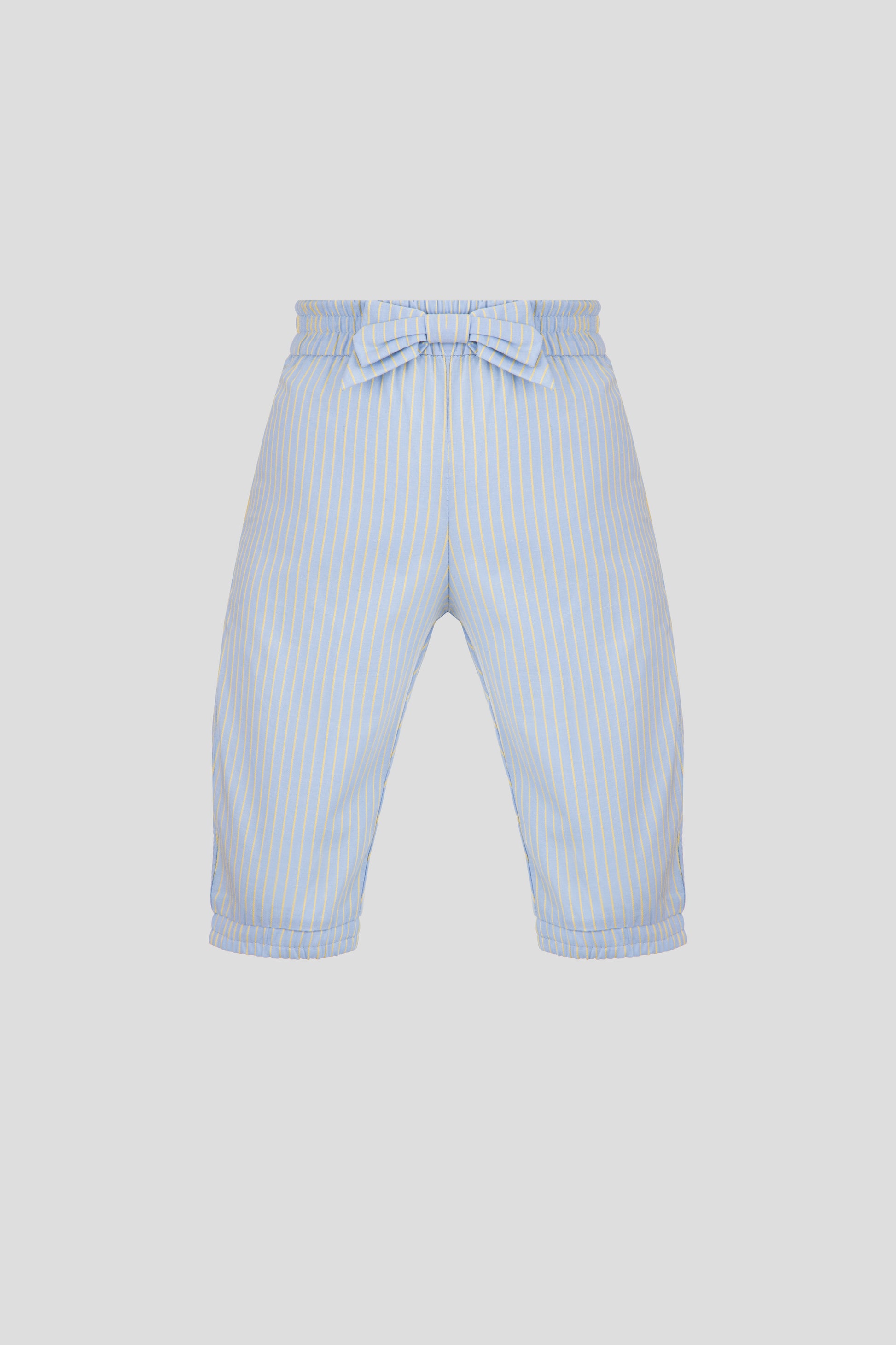Cute jeans for the boy have a traditional cut, an elastic band at the waist, which is very convenient. Stylish trousers of an elegant sand shade are combined with various wardrobe items, such an outfit is appropriate even at a children's holiday. Decorative decoration - bow on center .