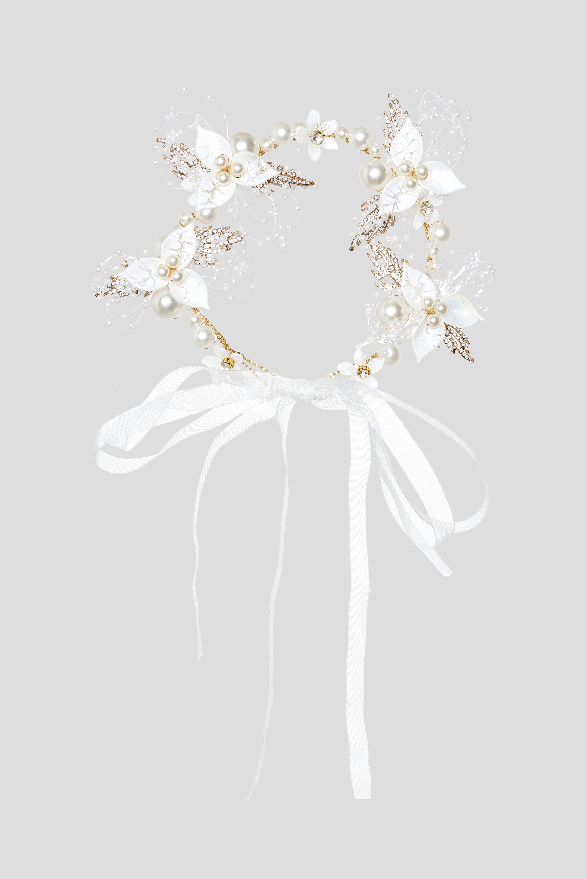 3D flower headband with perls, crystals and adjustable size to fit any age fashionista and add beatiful and stylish detail to any party or summer outfit. White colous will allow to combine this accessory with many different styles for endless occasions.