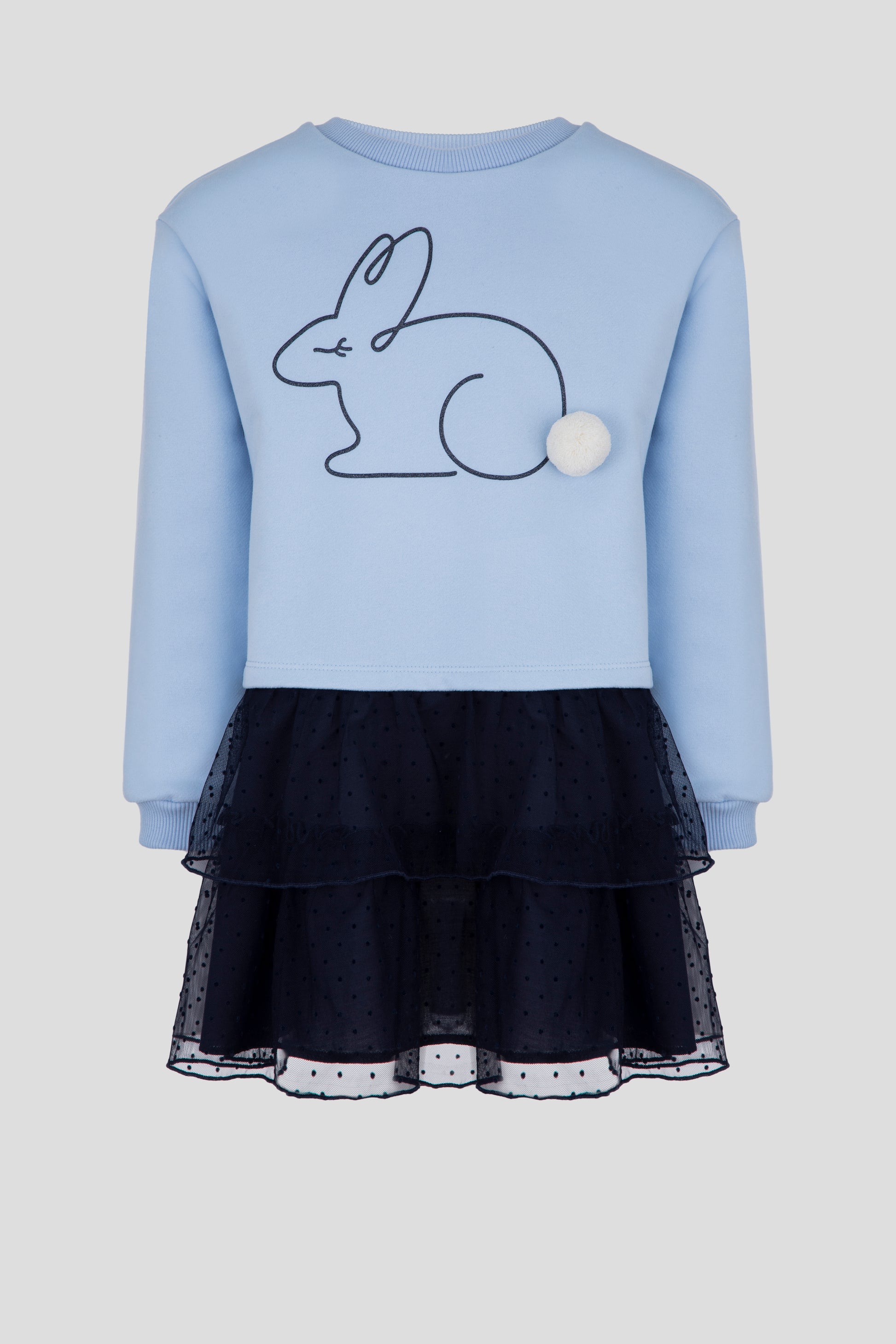 Add a touch of whimsy to your little girl's wardrobe with our Combined Decorated Dress. Featuring a charming bunny print and delicate embellishments, this blue dress is sure to become a favorite. Made with soft, high-quality materials for ultimate comfort and style. Perfect for any occasion.