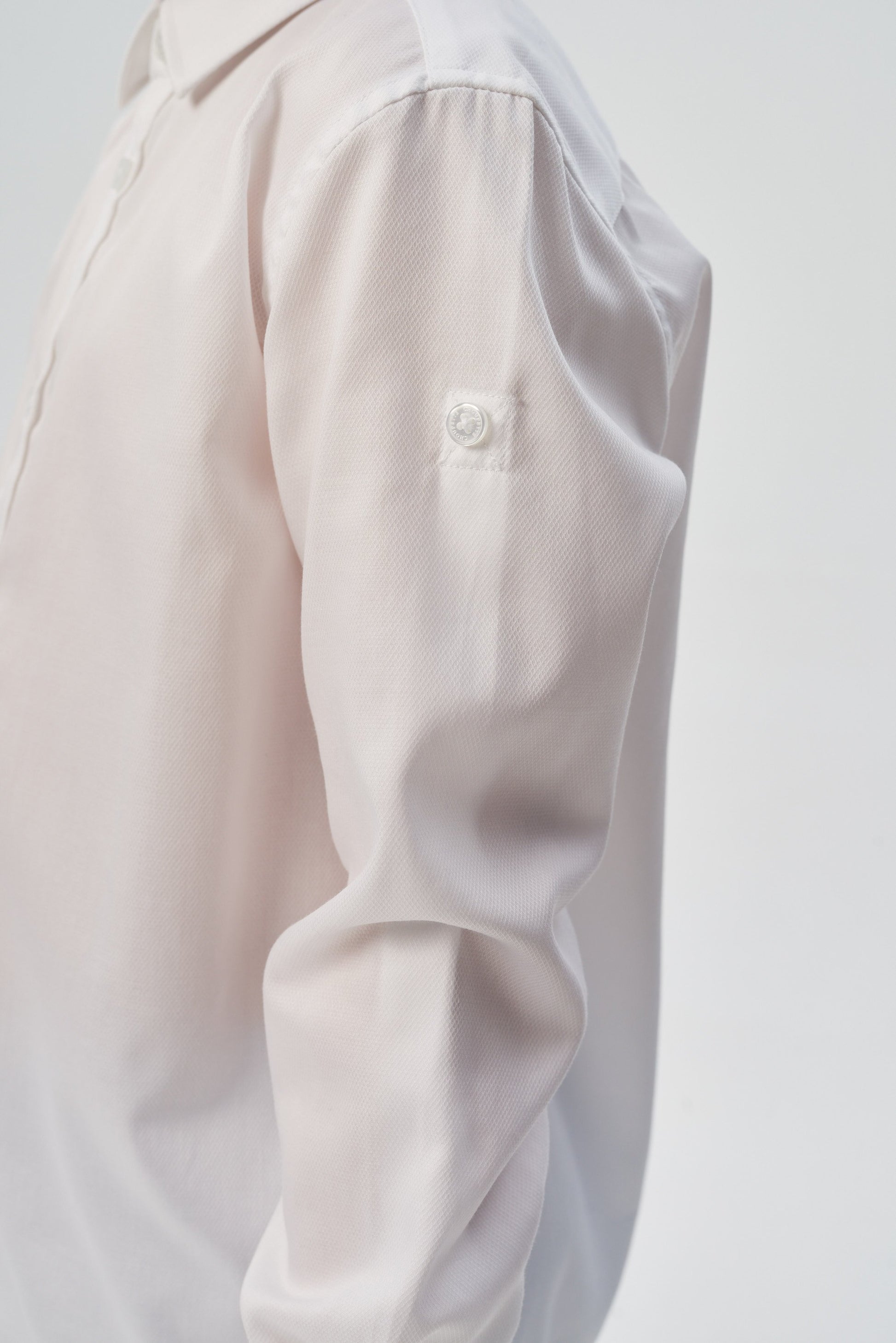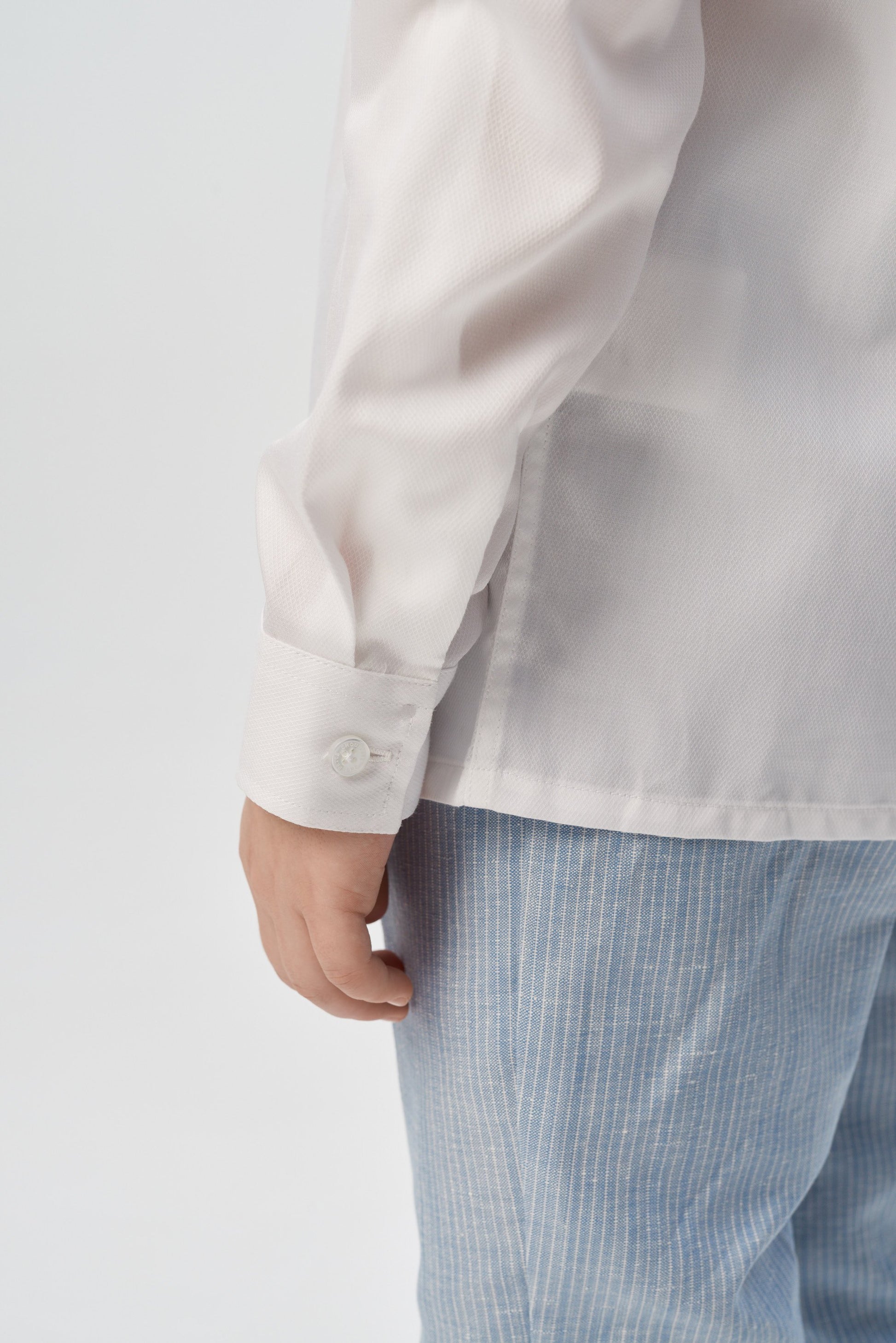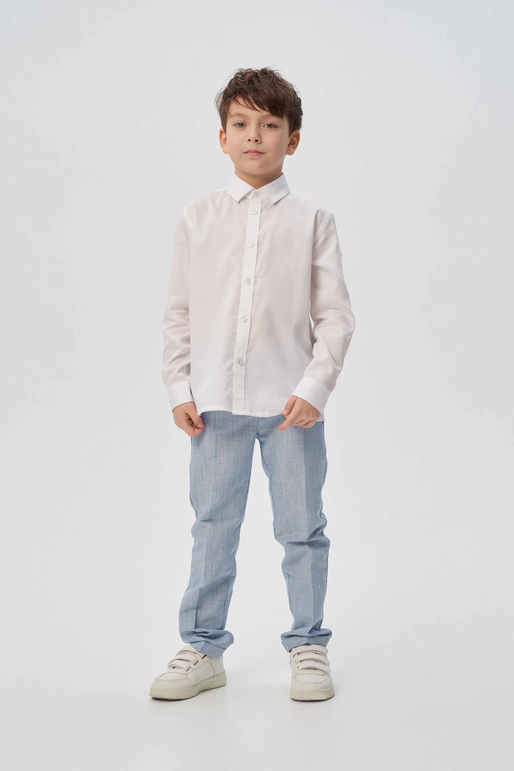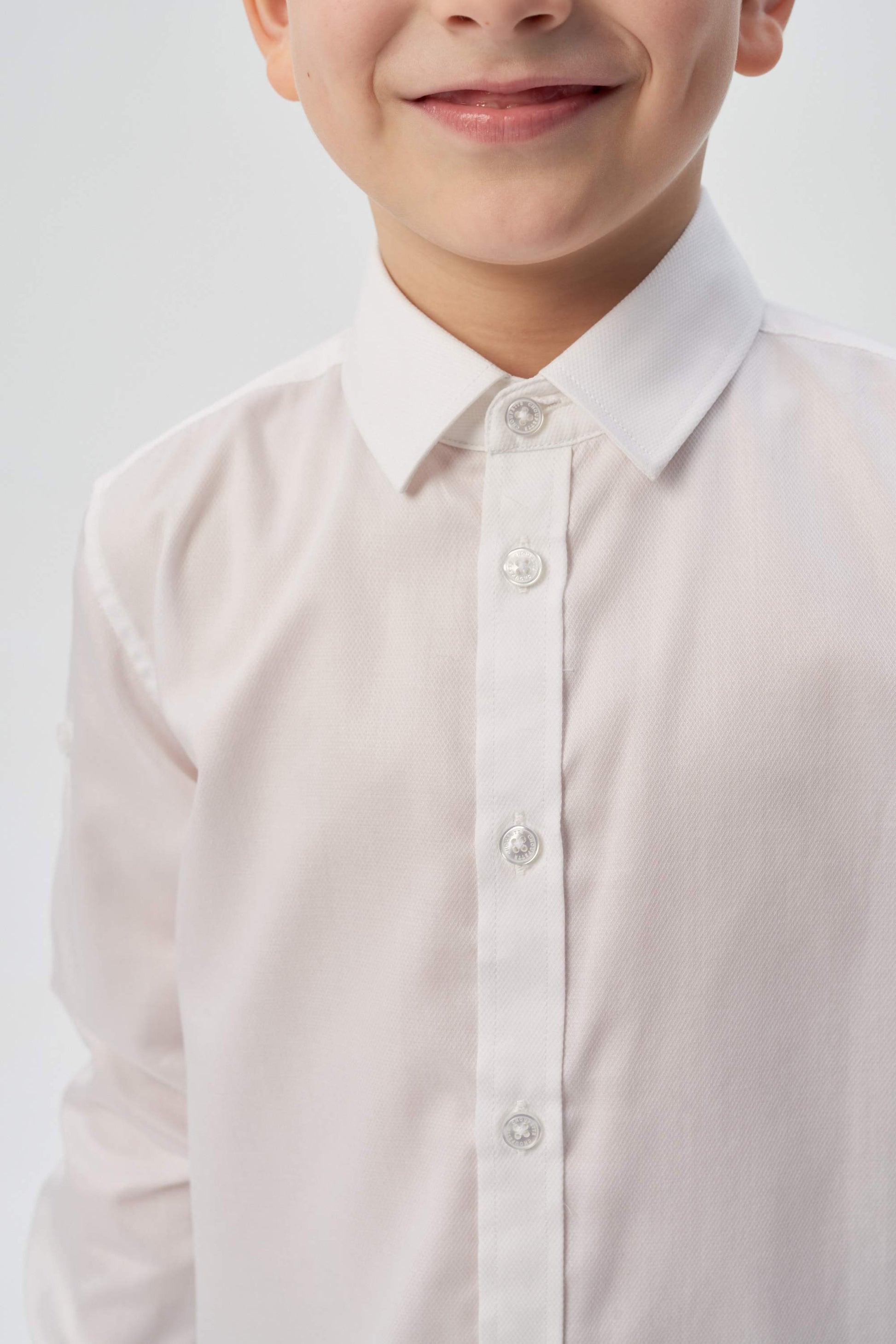 A shirt for a boy made of natural cotton universal color Ecrew will harmoniously complement any children's wardrobe. A model with a button fastener along the entire length, which facilitates the process of changing clothes. A comfortable direct silhouette and thoughtful length give even the most active child freedom of movement. The shirt is decorated with a print with the image of the brand logo.
