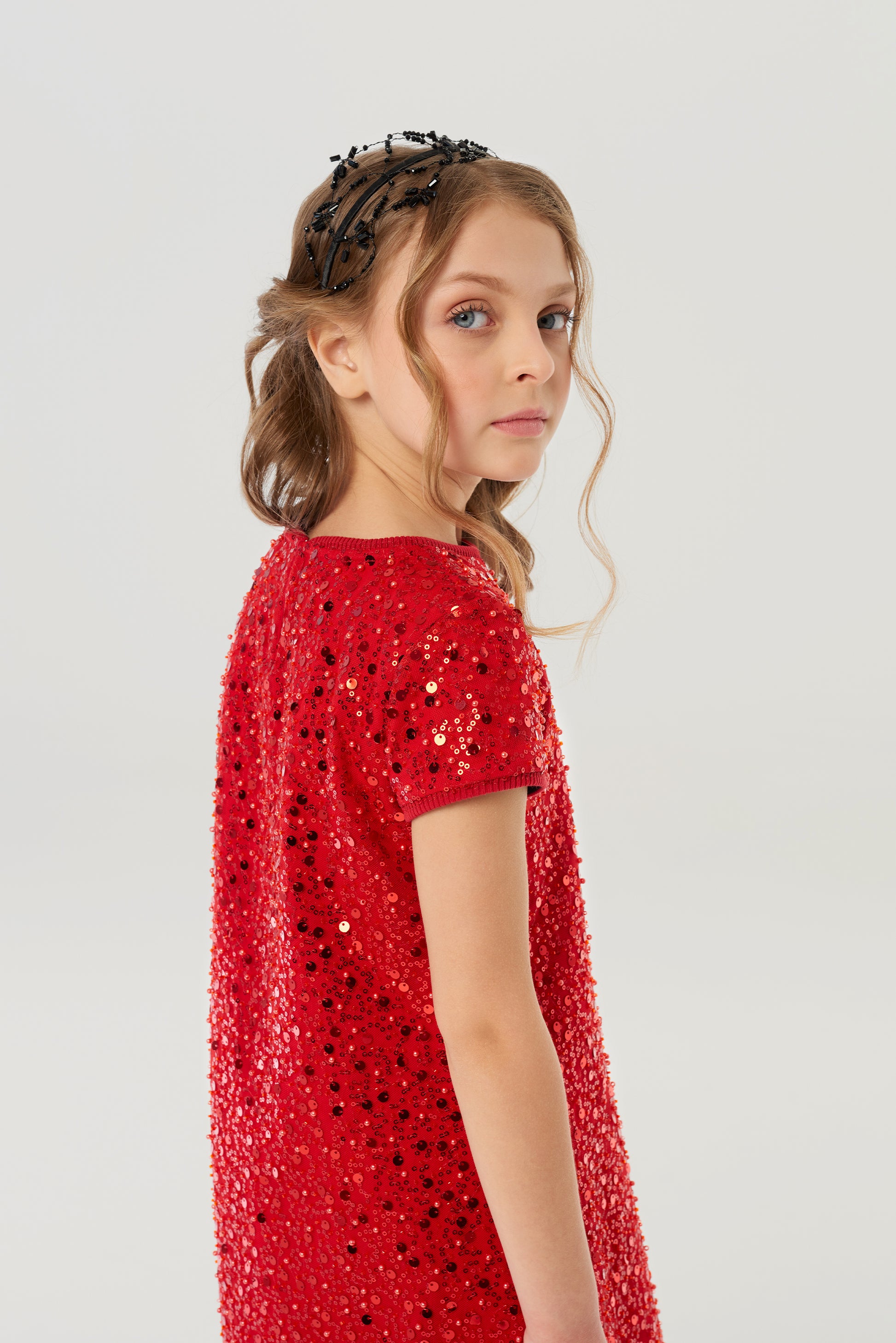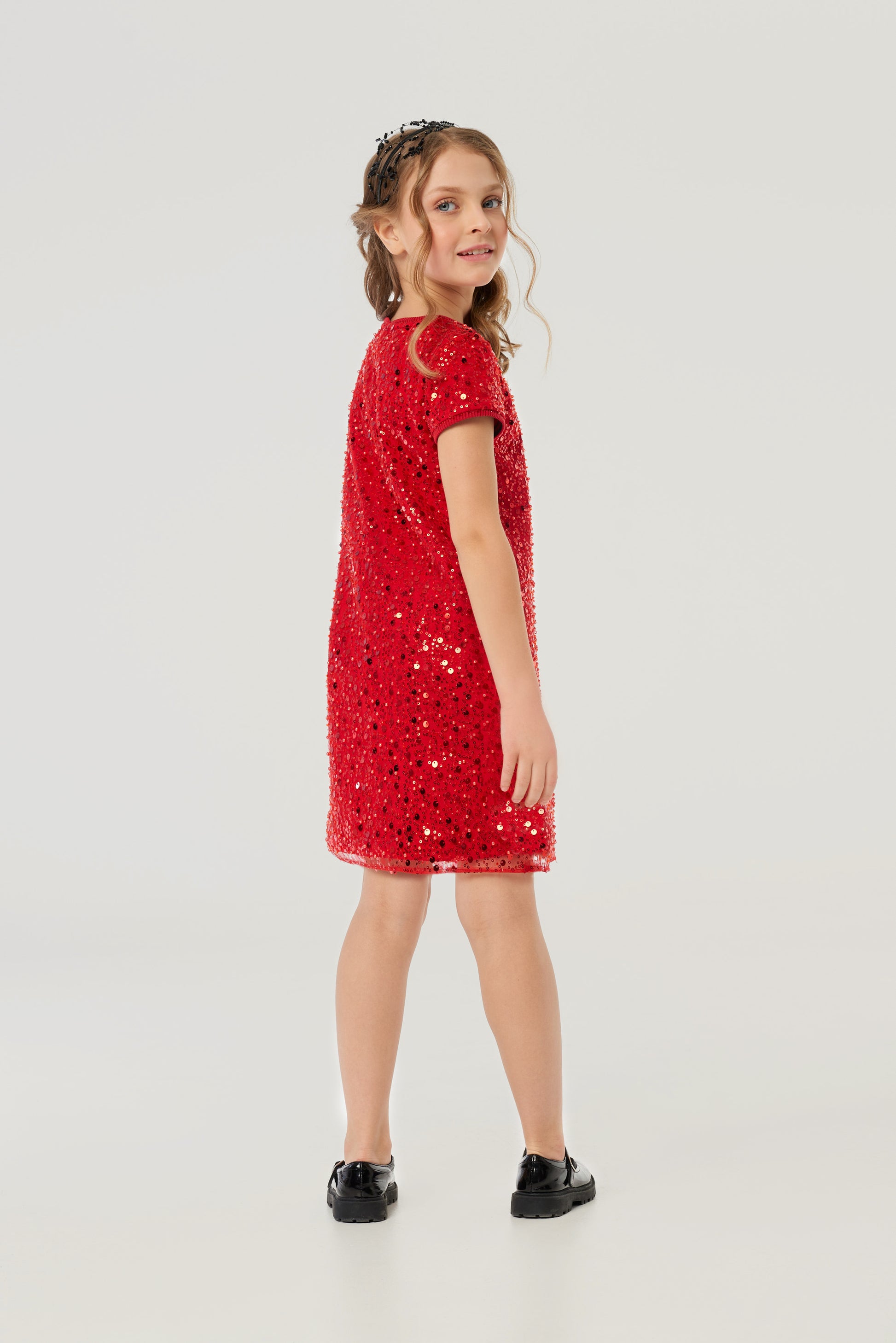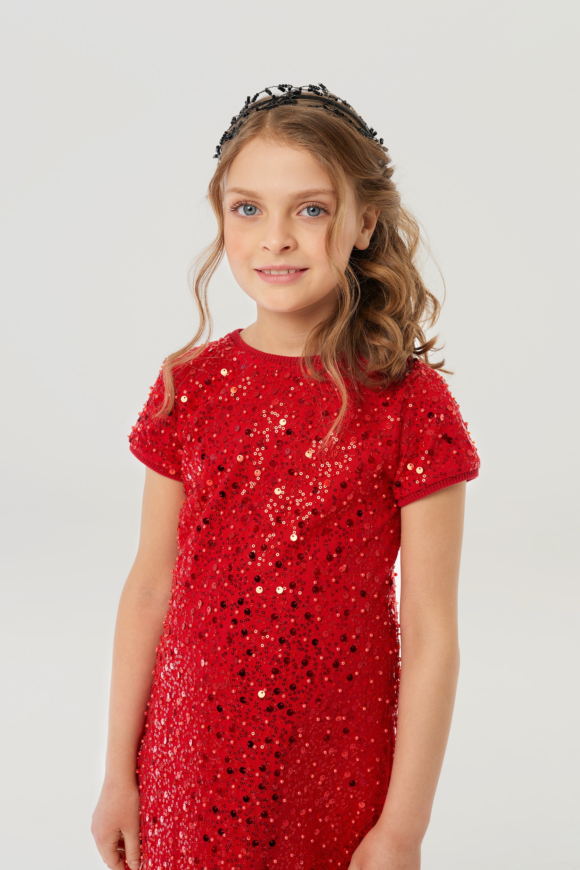 This charming A-Silhouette Sequins Cocktail Dress is perfect for any special occasion. The straight cut trapezoid silhouette and short sleeves add an elegant touch. Crafted with masterful execution and high quality materials, this dress will surely impress with its brilliance and unique style. Let your little girl feel like a real princess in this magical sequin outfit.
