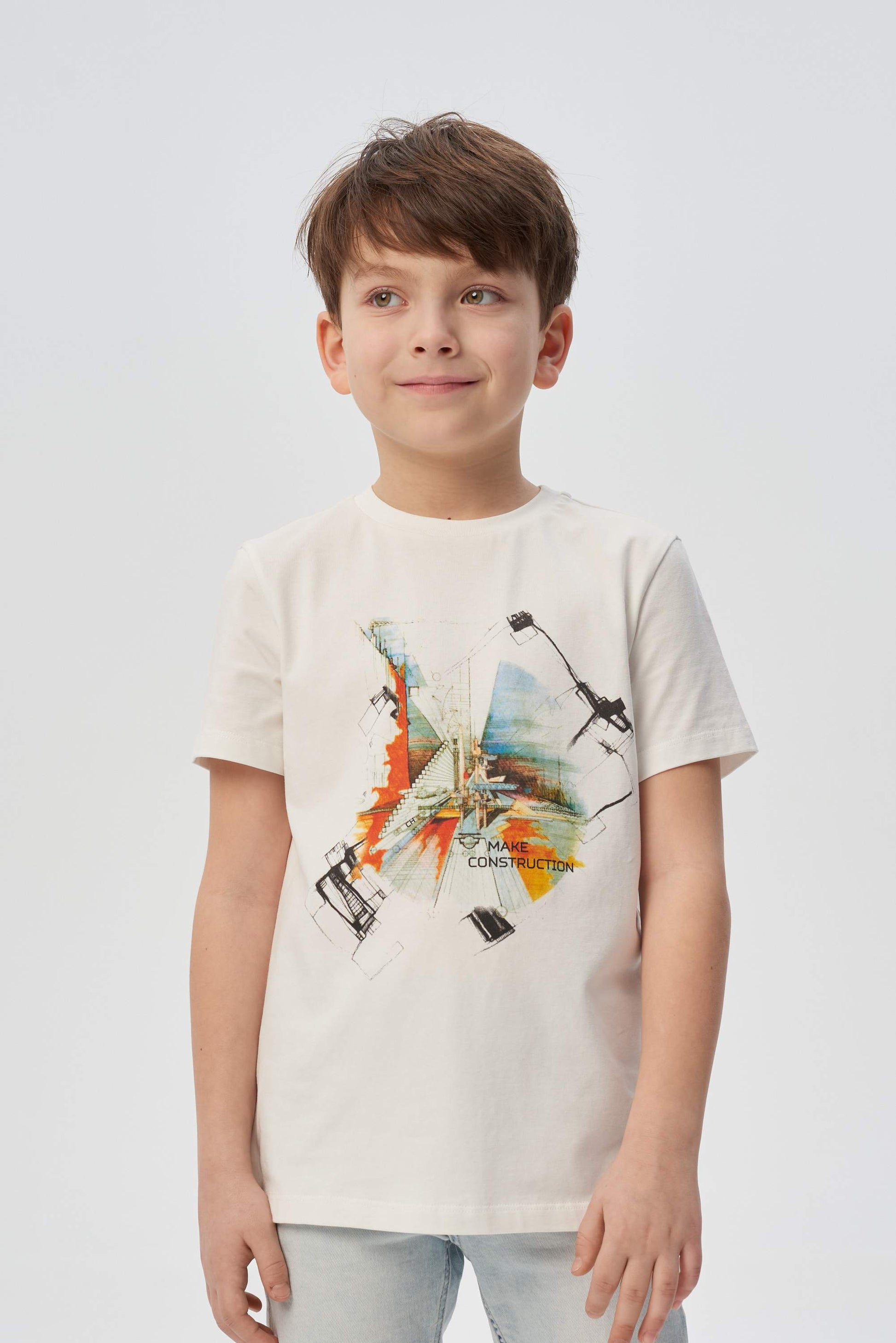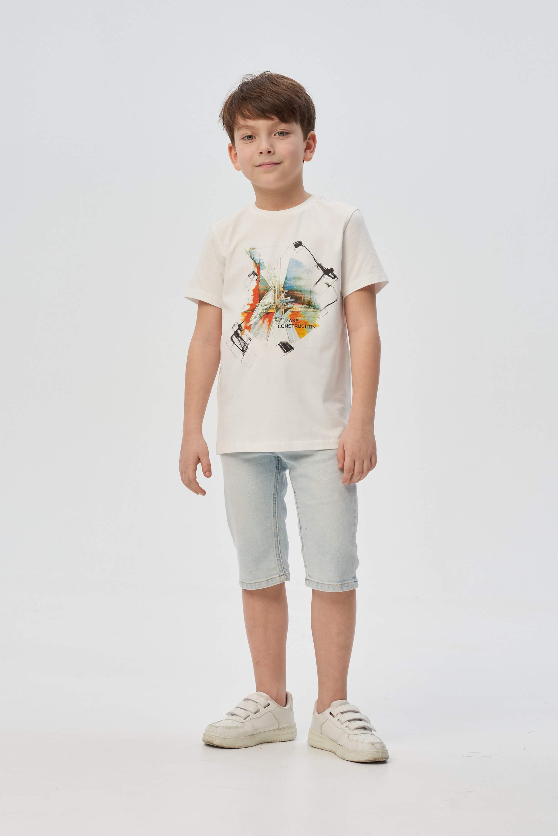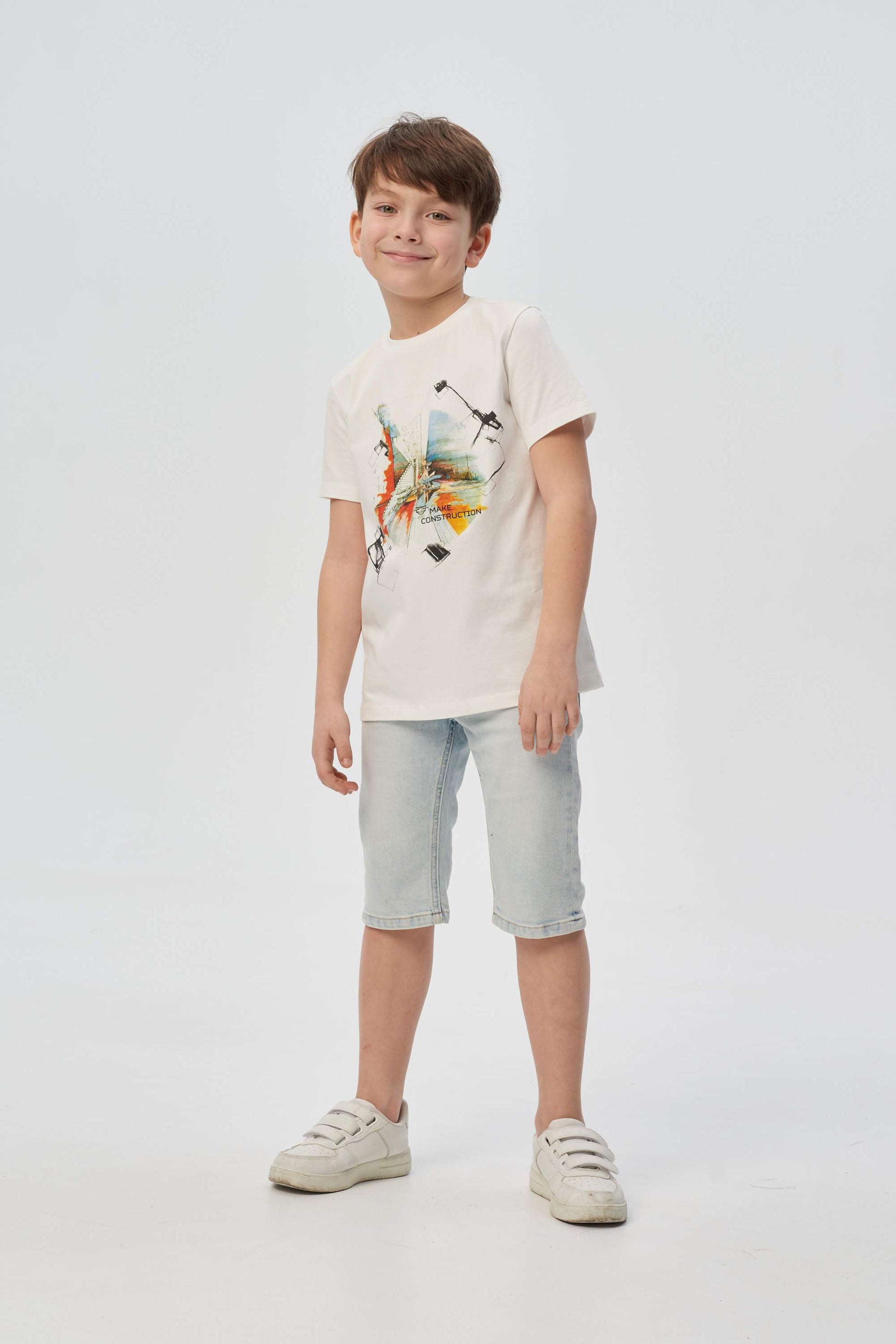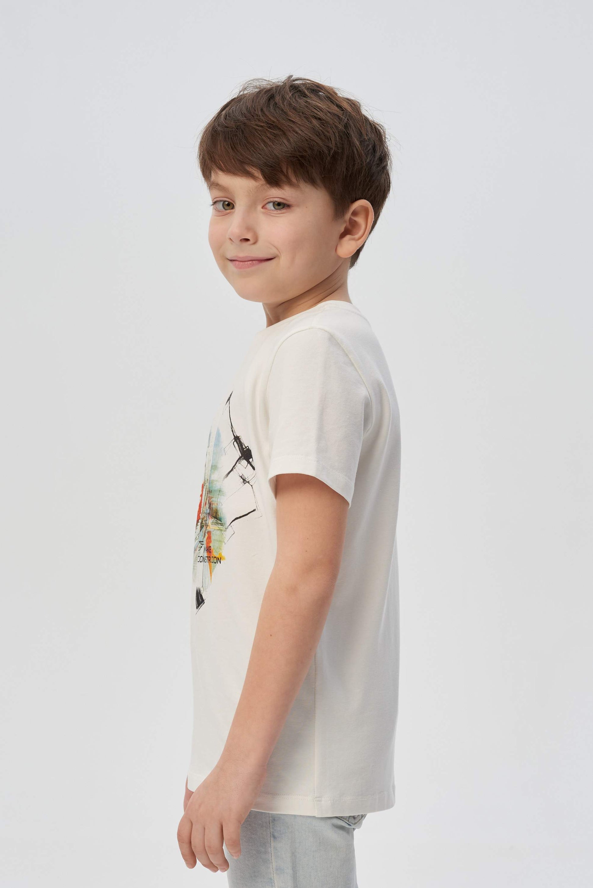 T-shirts with colorful abstract prints are one of the most popular children's clothing models on the catwalks. Original cotton jumper for a boy. A warm white shade model with a spectacular design decor will sit perfectly on a child, such things are comfortable and practical. Young fashionistas will definitely like this outfit. Small dudes in such clothes feel - "At their ease ..."