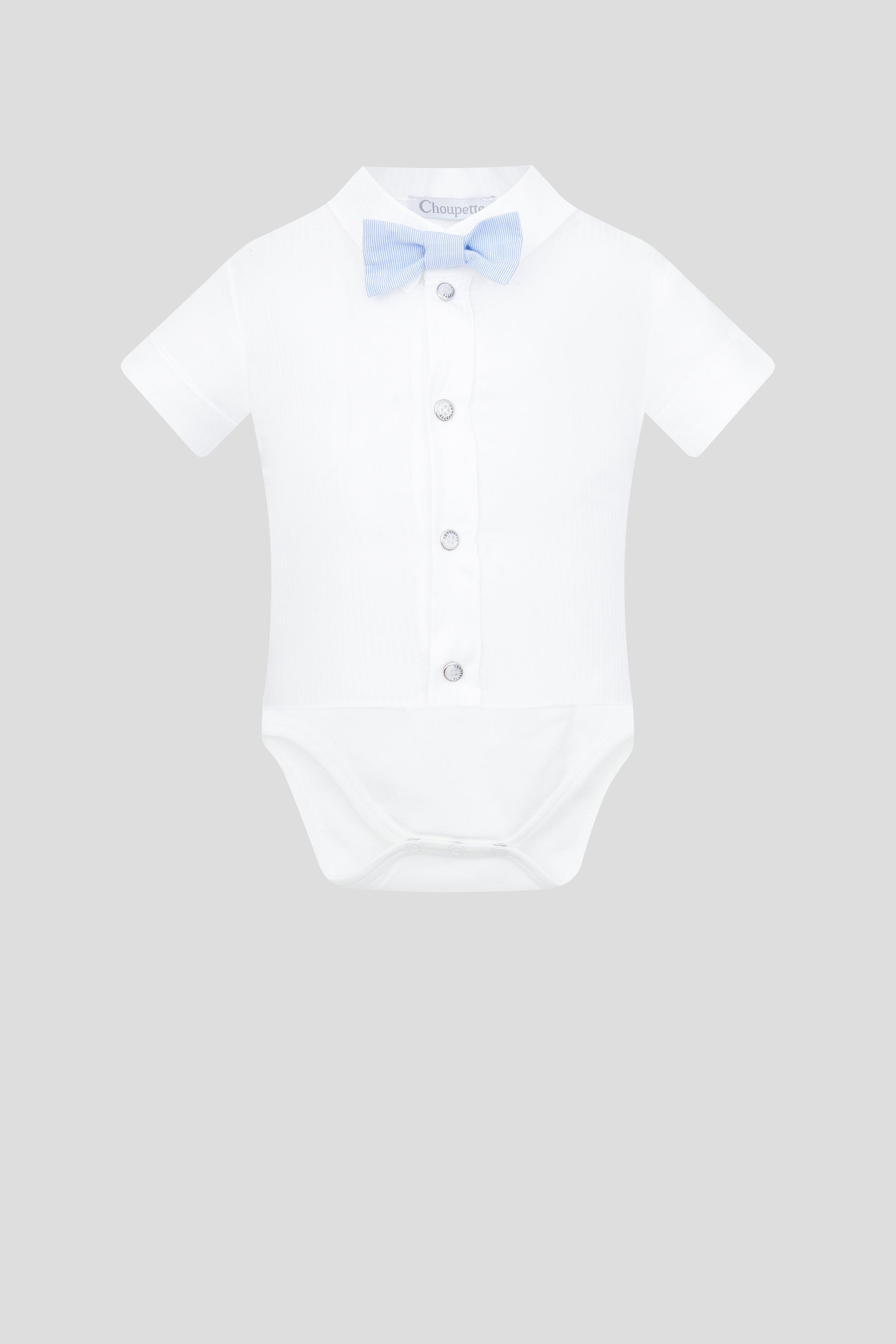 An elegant model for a boy has a festive look, such a thing is combined with any jackets and trousers. The fastener at the bottom of the product will change the diaper, and the upper part with a classic collar and a pretty butterfly will create an elegant image. The model is made of 100% cotton shade of Ecru.