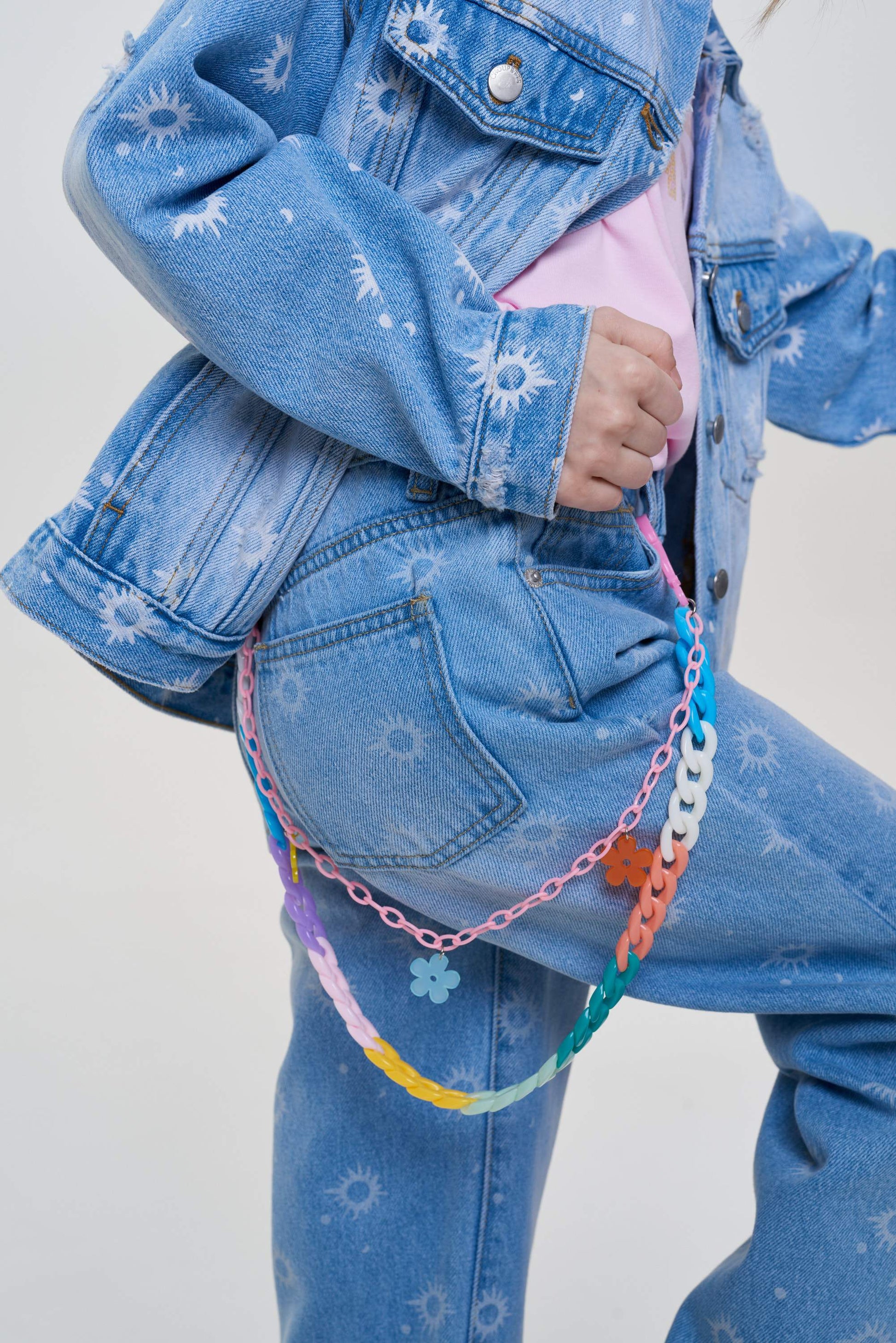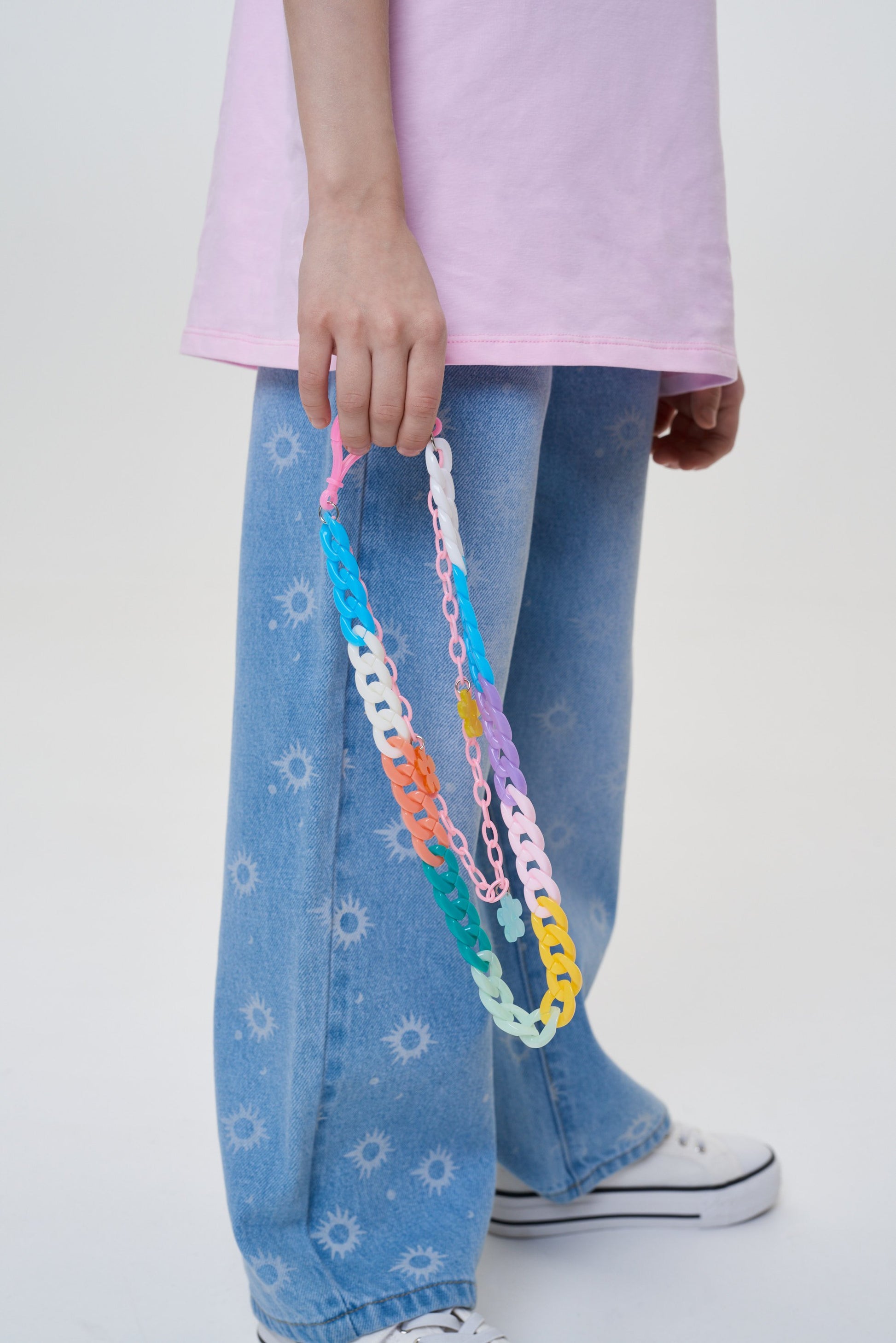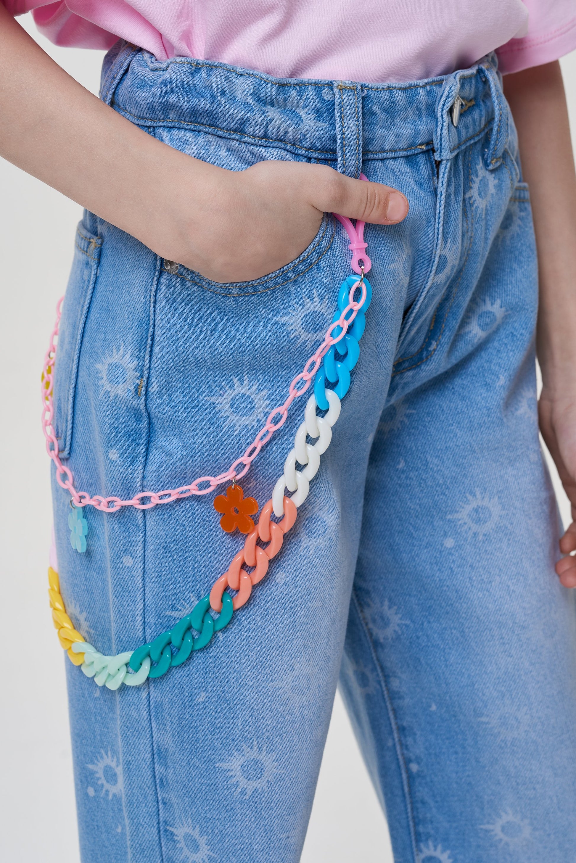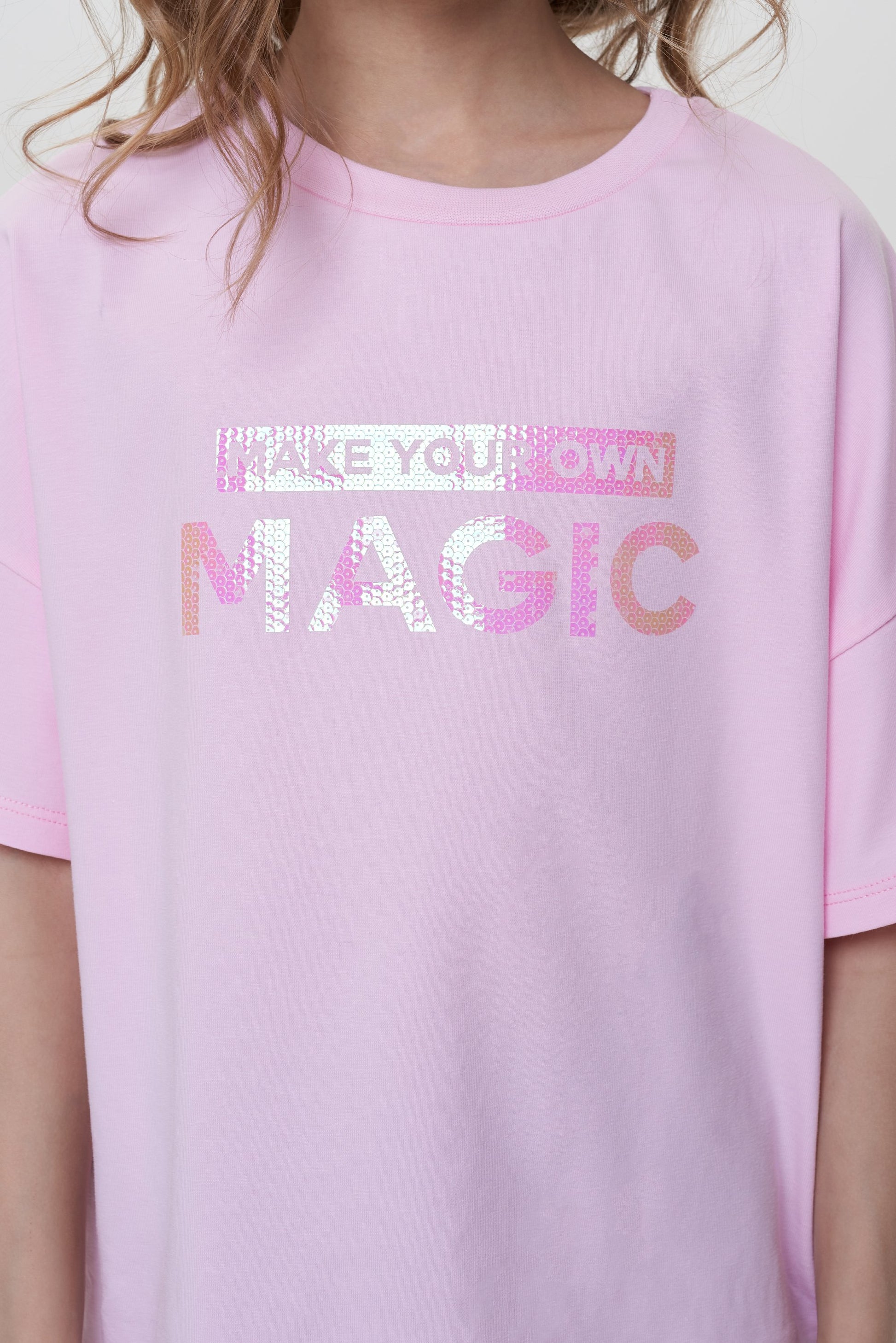 A magnificent jumper-football for a girl. To be in trend, a fashionable skirt (or shorts), stylish golfs with a beautiful pattern, spectacular shoes and such a T -shirt with a print made of thin pink cotton. Imitation of a colored chain and an original pendant in the gate area looks amazing ...