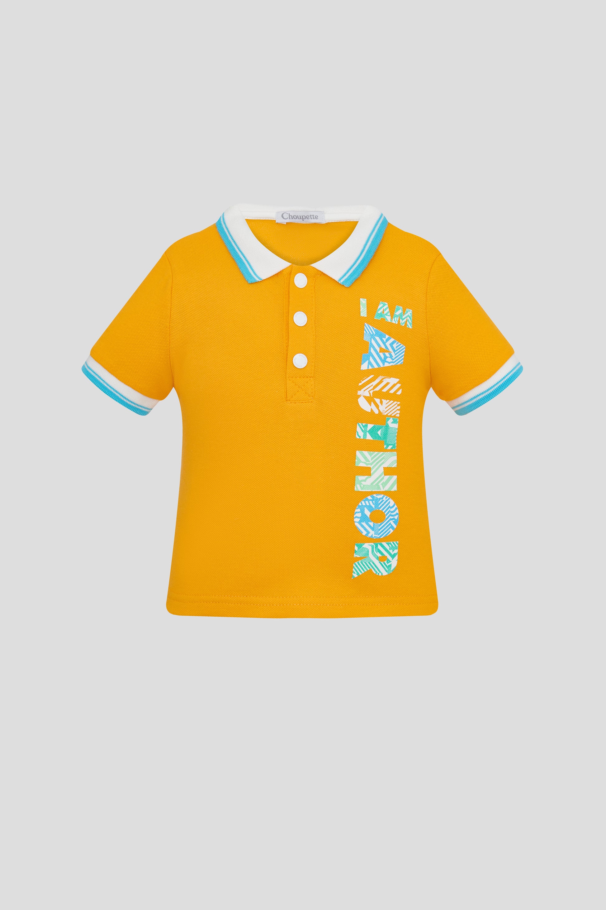 The model of direct cut, with a figure line of the bottom. Along the edge of the collar and short sleeves, contrasting strips. The front shelf is decorated with stripes and prints on the topic of yachting.