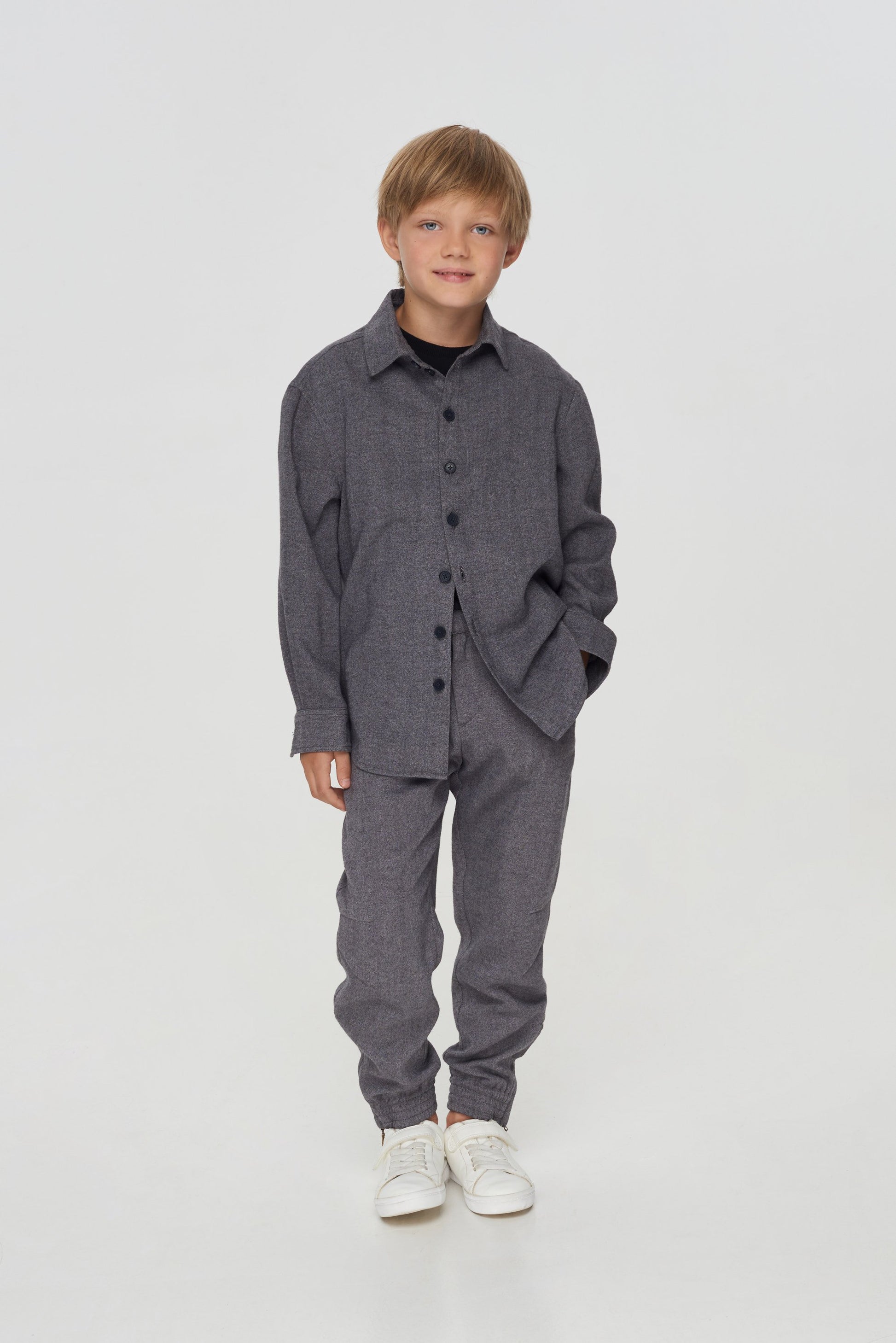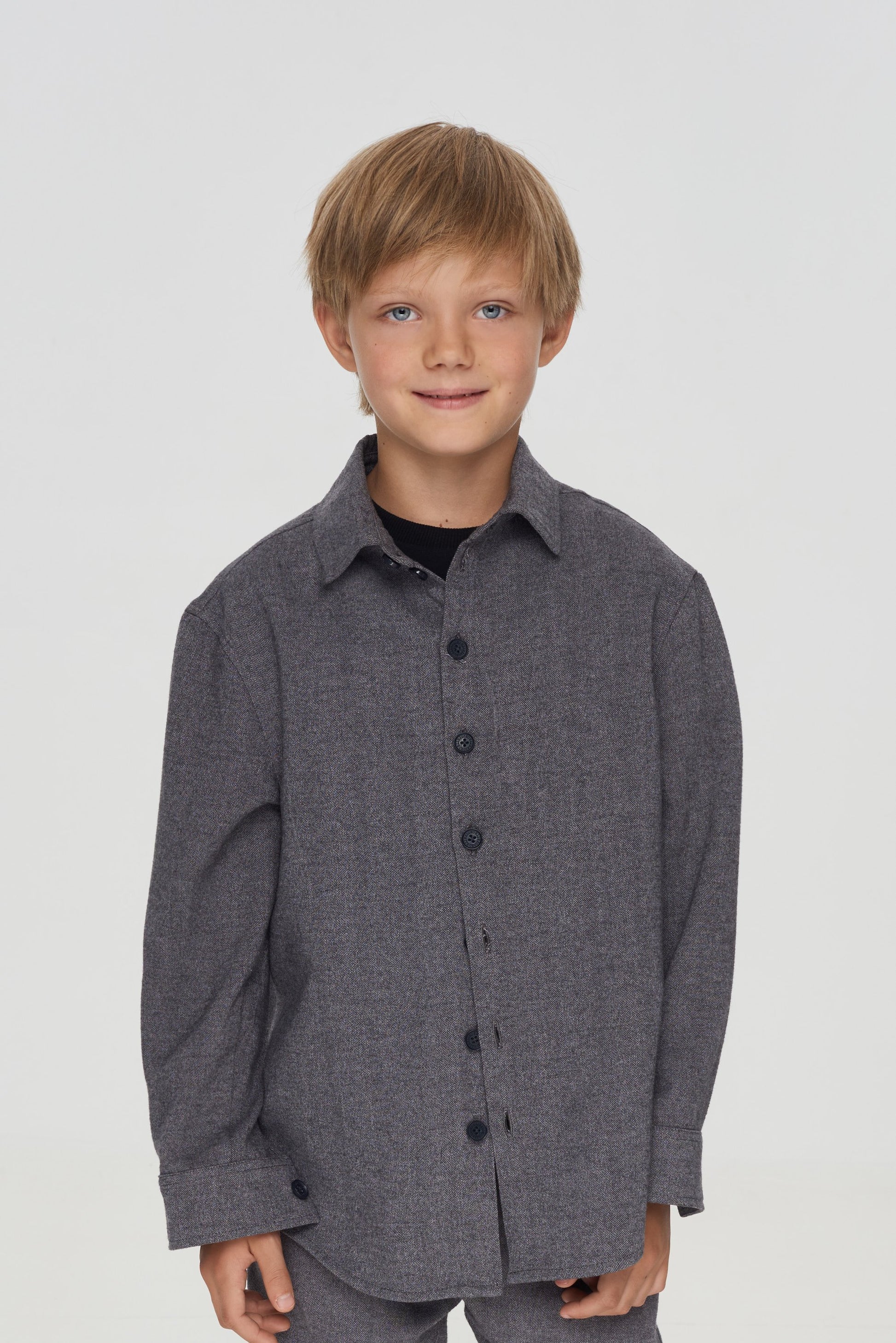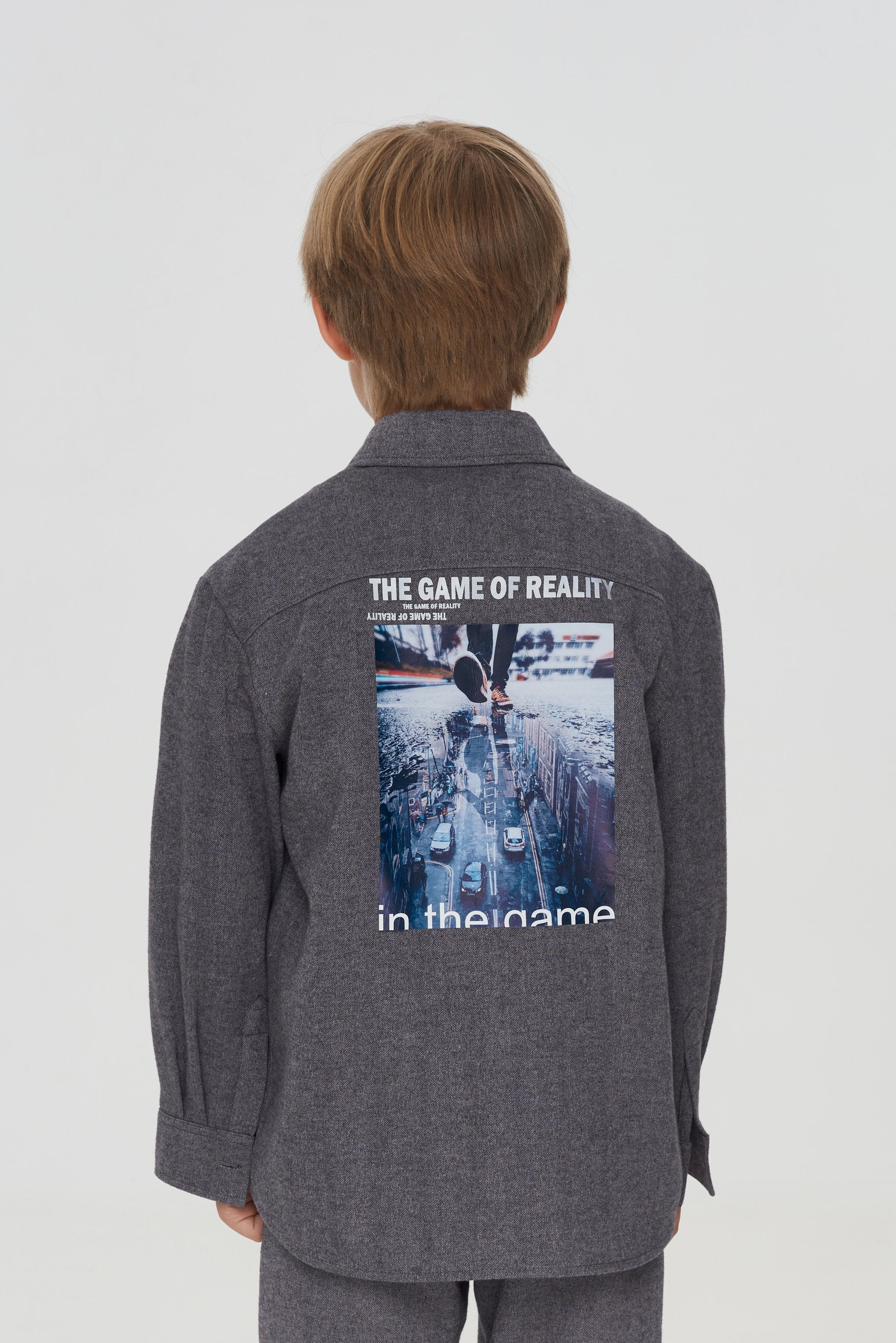 Grey shirt with a print for a boy. Long sleeve, buttons. Game Collection