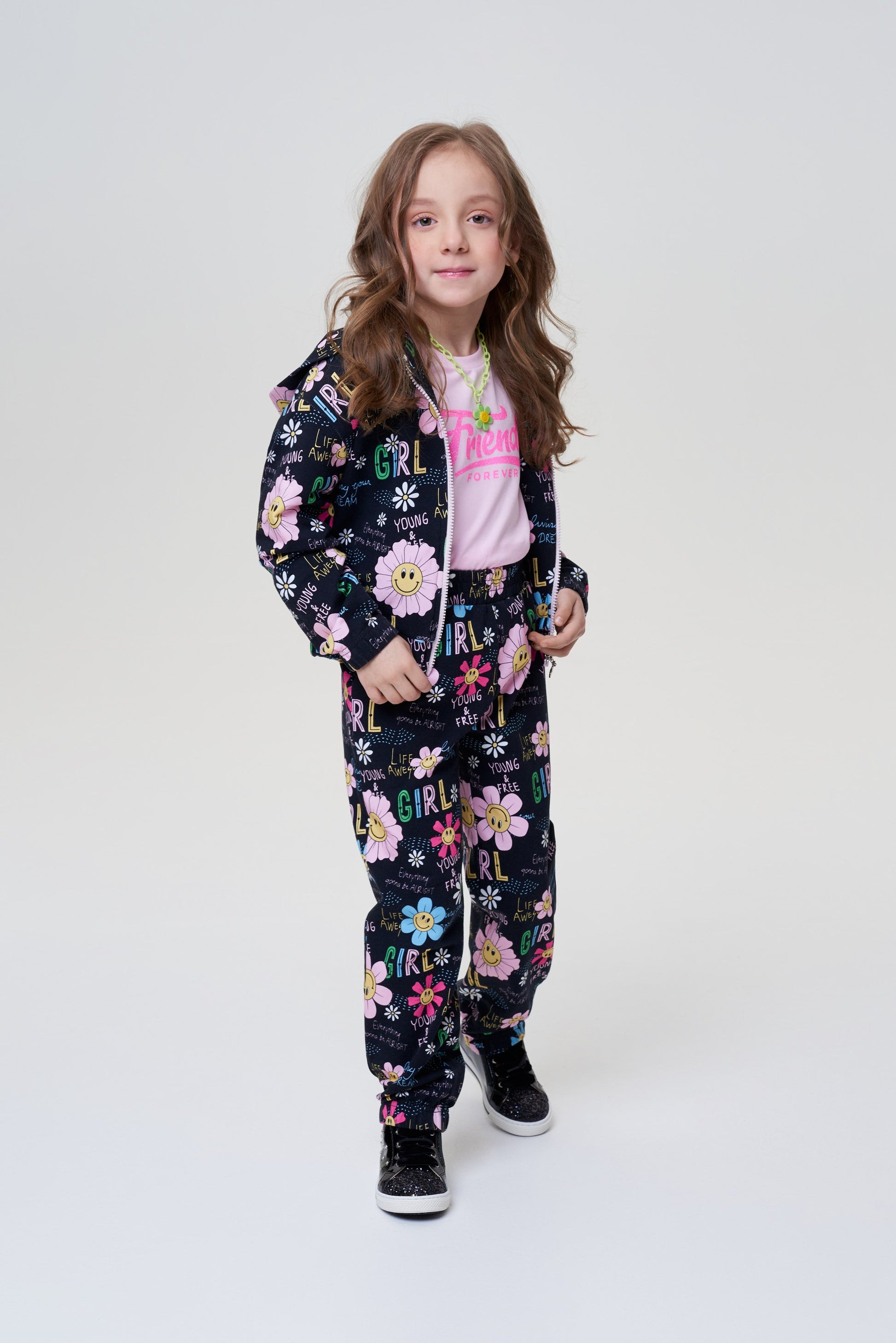 A sports suit with a brand branded print is ideal for active games for a walk or for sports. The costume is made of natural fabric, which has high hygienic properties, allows the child?s skin to breathe. A jacket with a deep hood is fastened with a zipper. Pants with a comfortable elastic belt and cuffs.