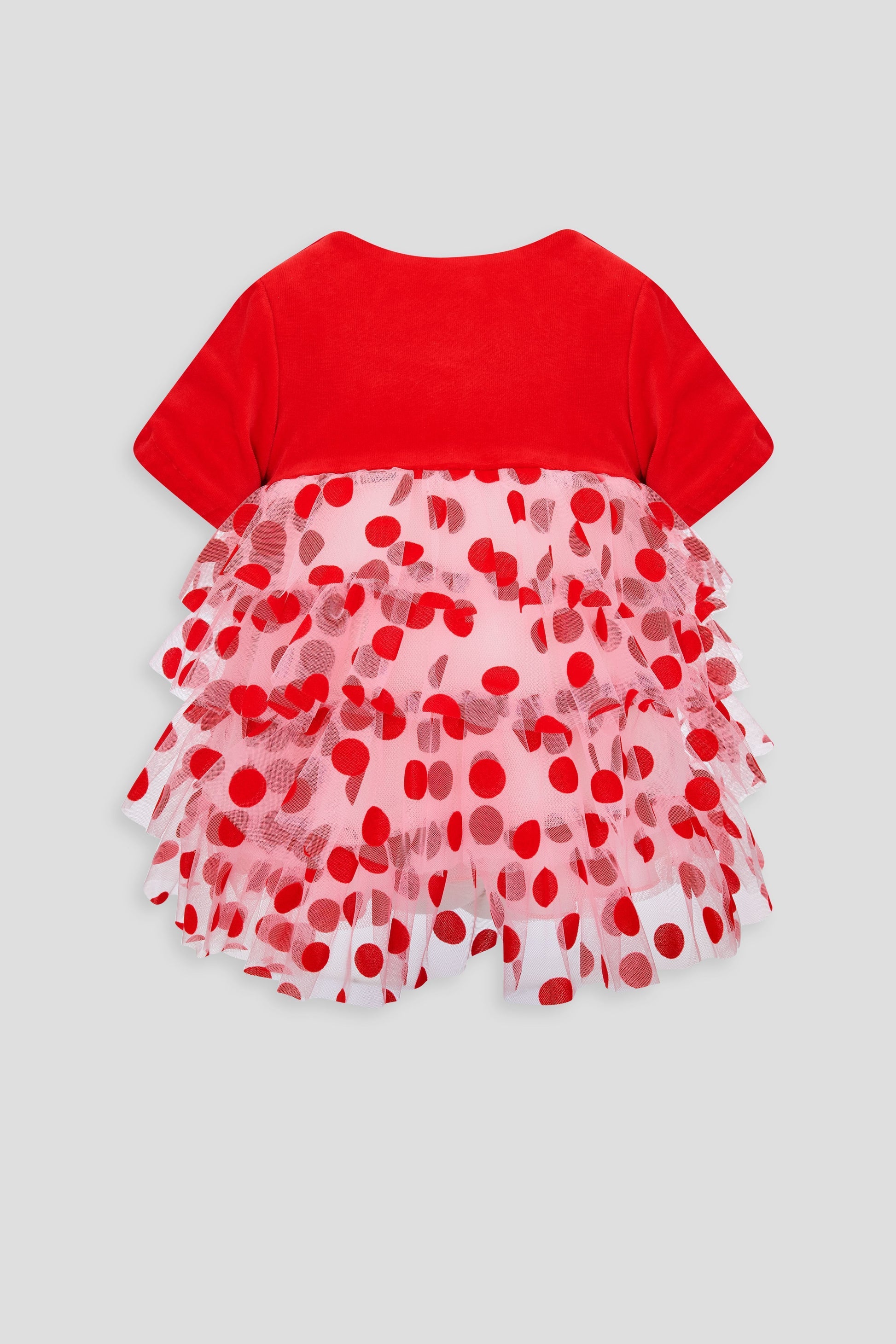 Stunning dress for a little girl, incredibly stylish and beautiful. Elegant model - cut off at the waist line. The wonderful product is made of red lace fabric, the skirt is lush and multi-layered. Lining made of natural cotton, at the waist there is a voluminous decor in the form of a butterfly. The first festive outfit in the life of your baby!